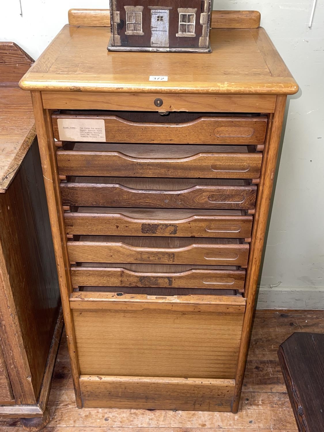 Early 20th Century oak tambour front filing cabinet, 97cm by 48cm by 41cm.
