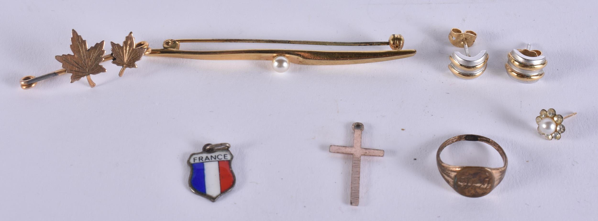 A ROLLED GOLD BROOCH together other jewellery. 9 grams. (qty)