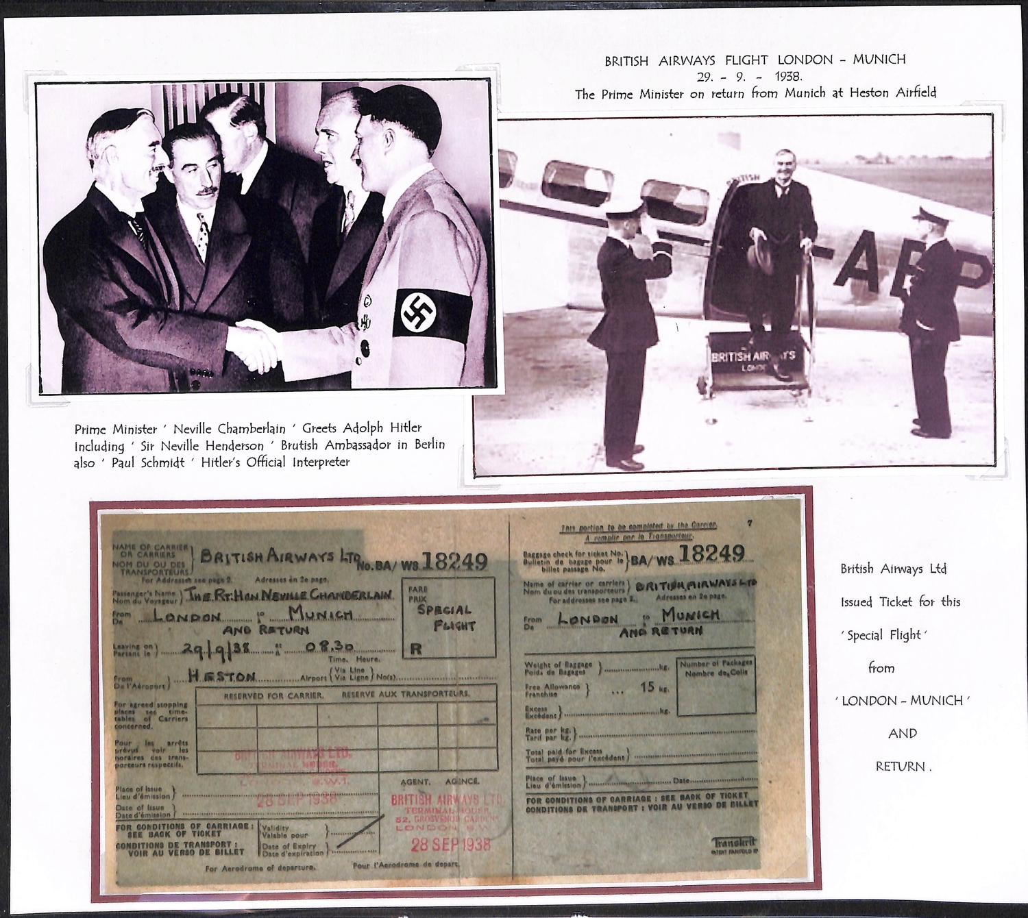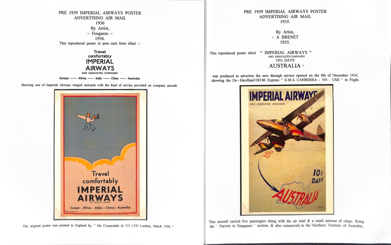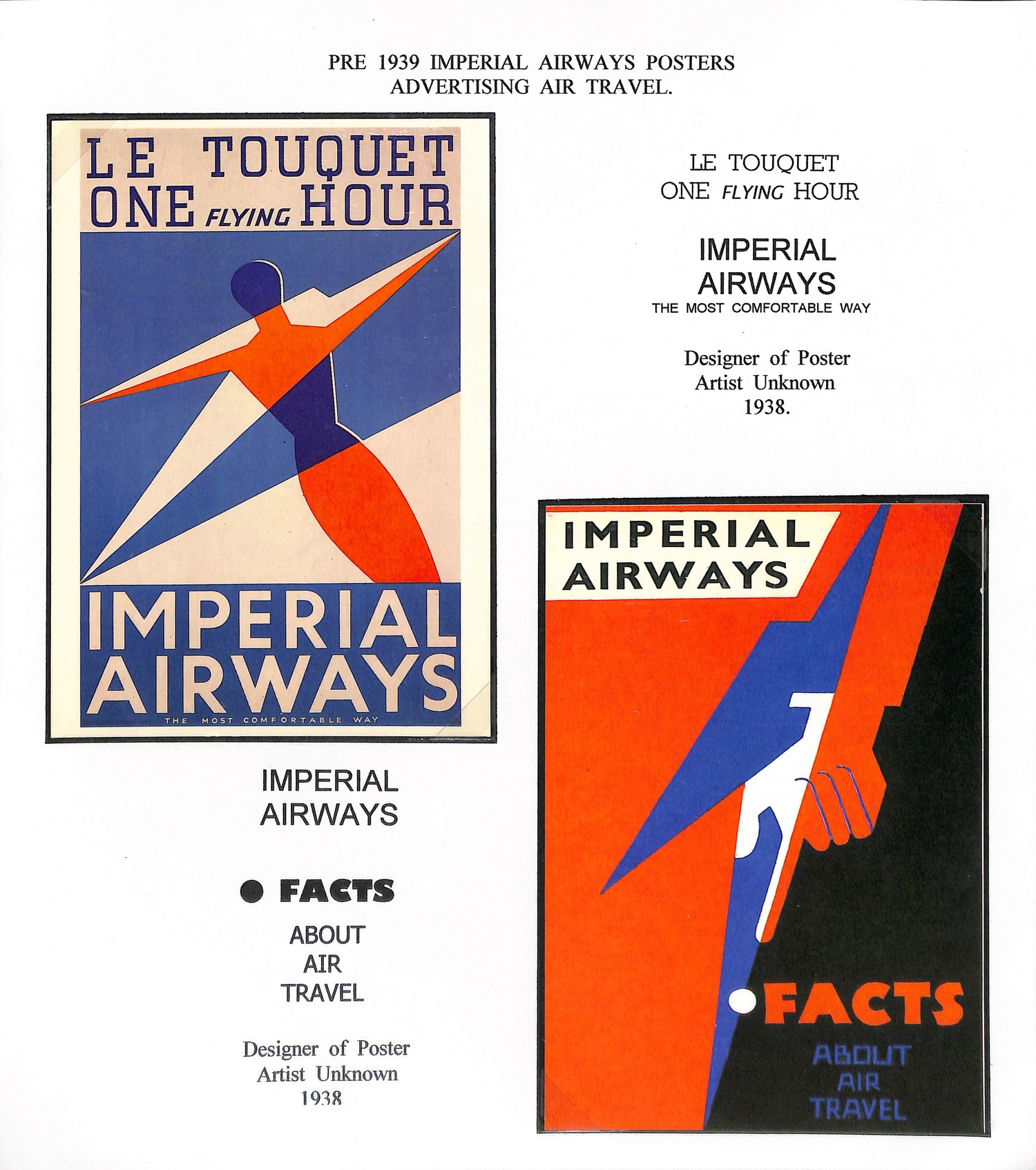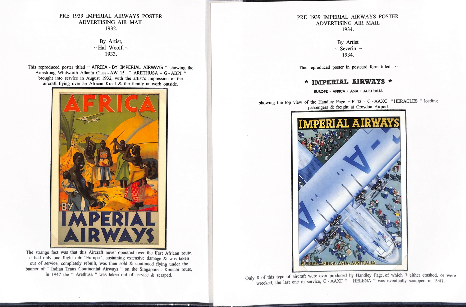 Imperial Airways. 1924-38 Ephemera including c.1924 illustrated Paris to London luggage labels (2, one applied to a tie-on tag with red weight label); leaflets comprising 1931 England to Egypt & Northern Africa, Summer 1931 European Services, July 1933 New London to Calcutta Air Route (2), Summer 1938 European timetable, 1938 Winter timetable England to Egypt, Iraq, India, Hong Kong, Malaya & Australia, also picture postcards (2), etc. (10+).