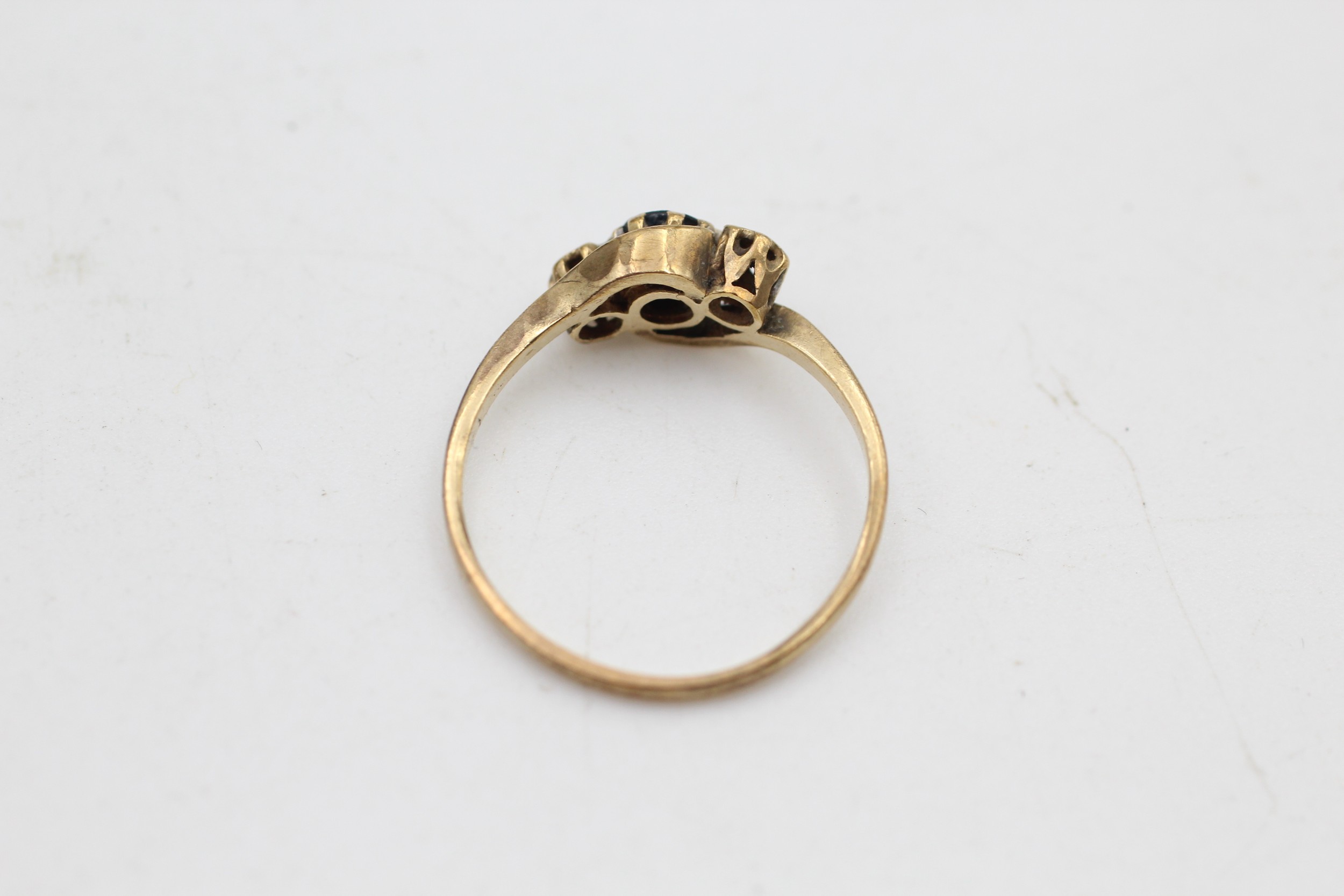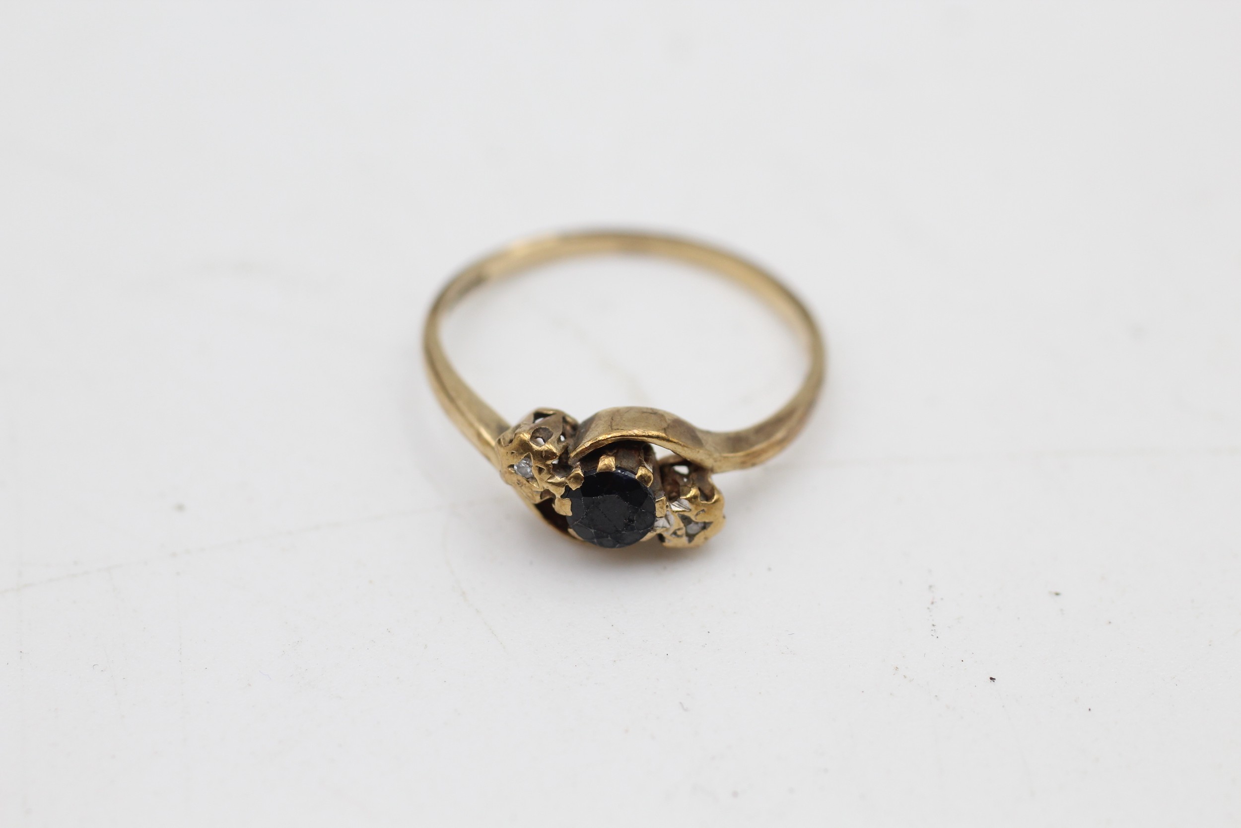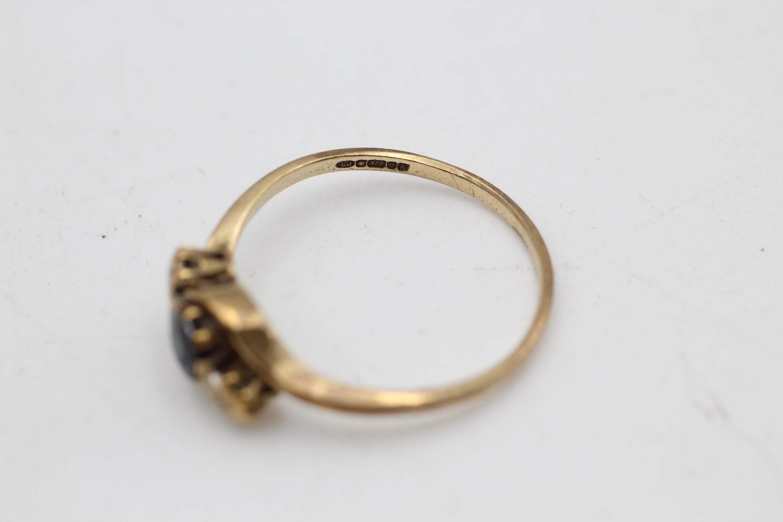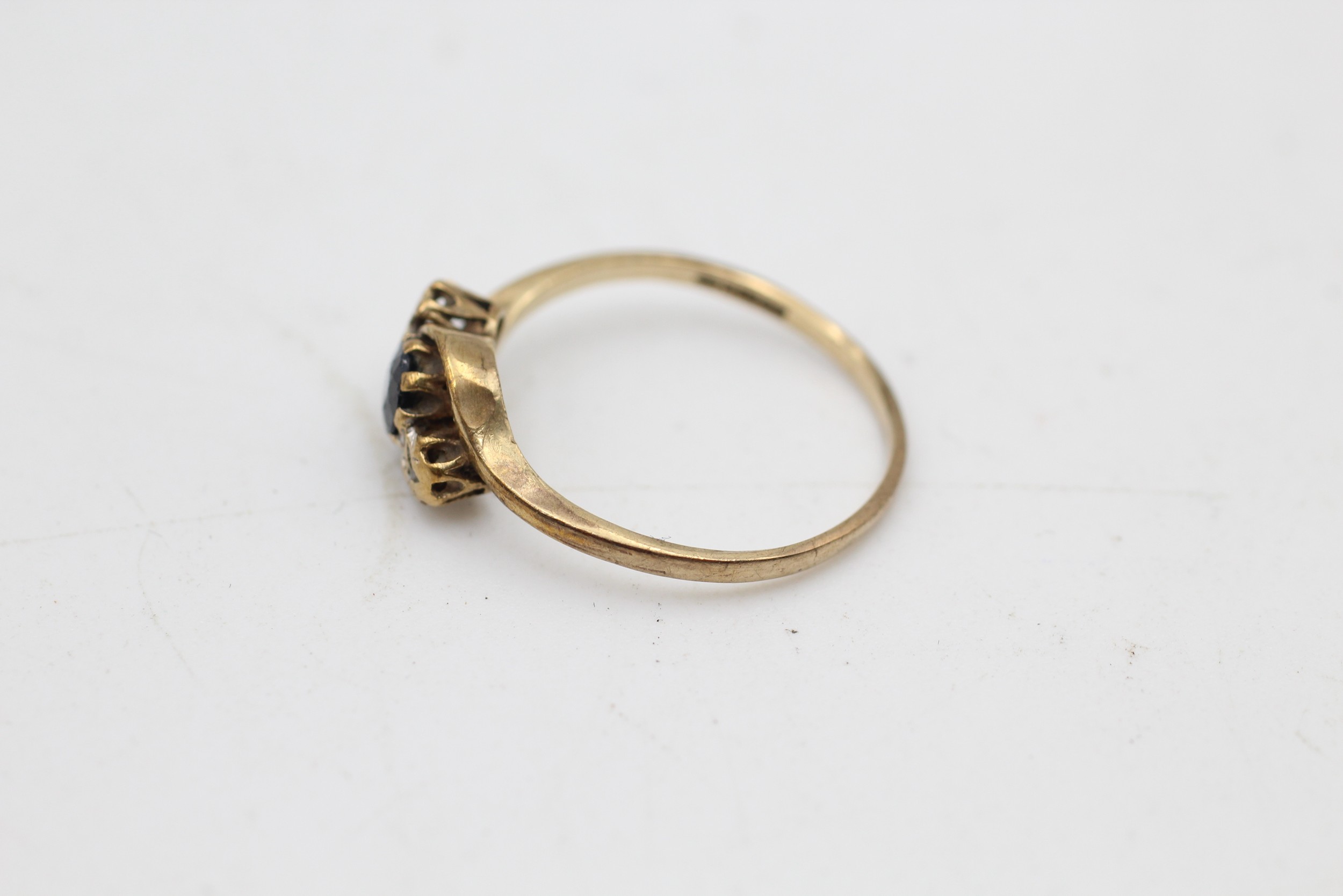 9ct gold diamond & sapphire three stone ring (1.6g) SIZE O