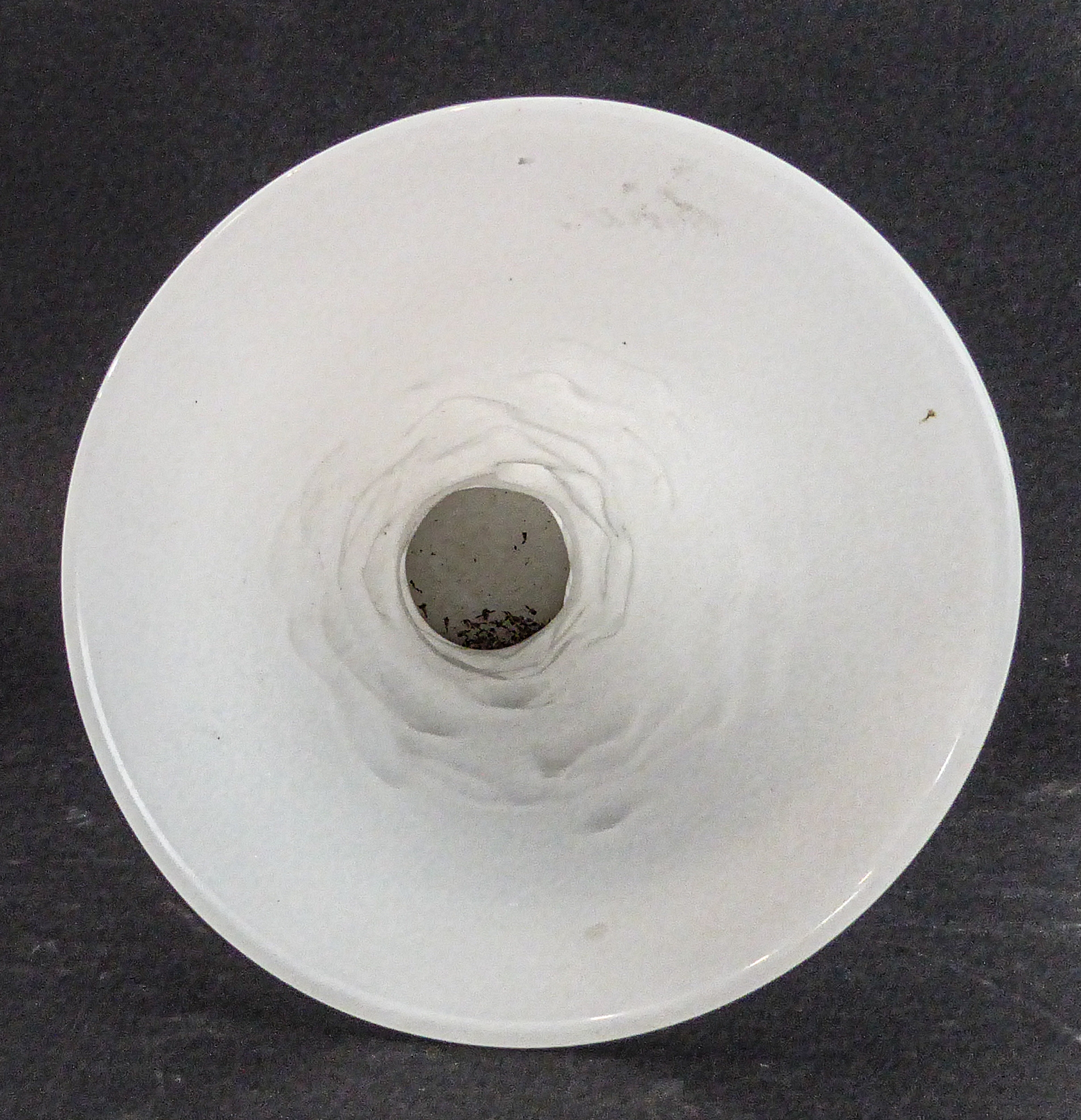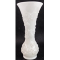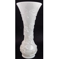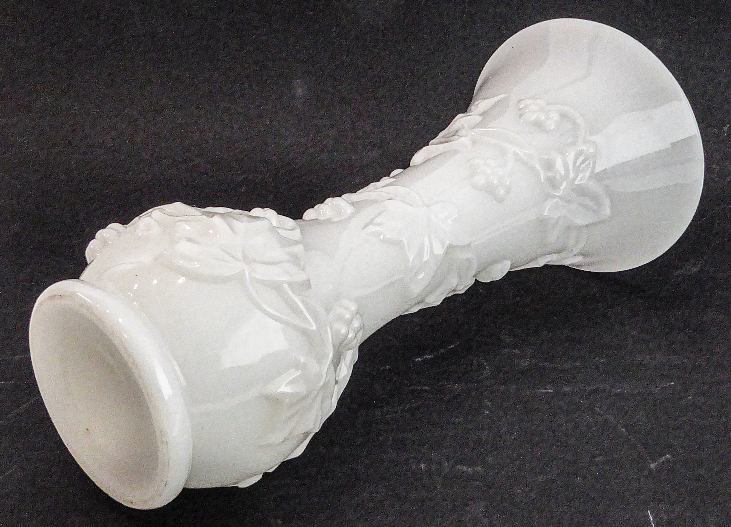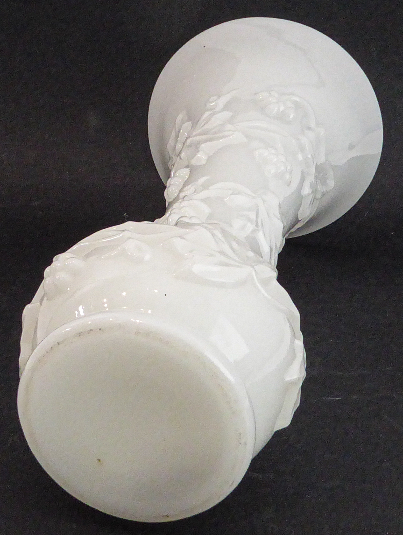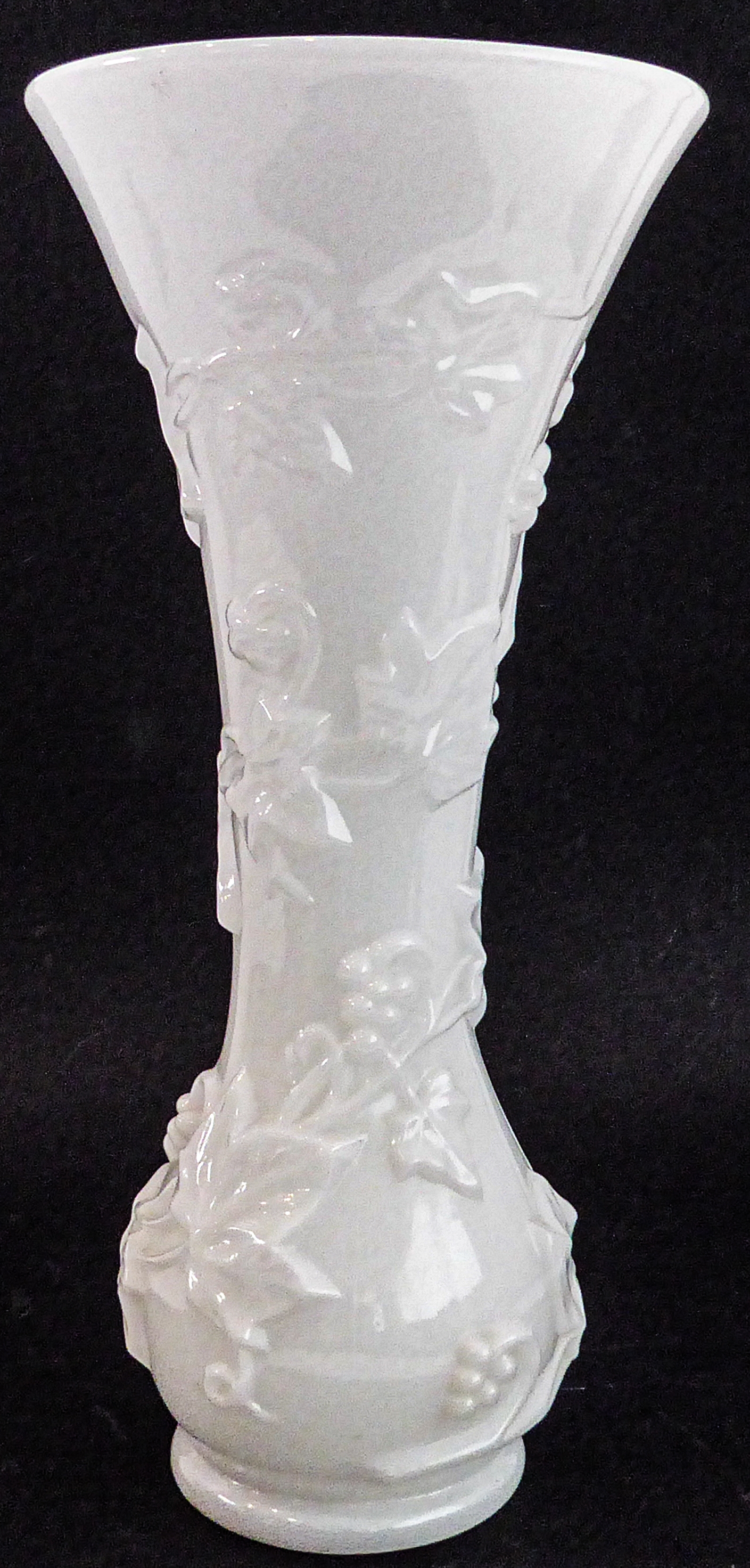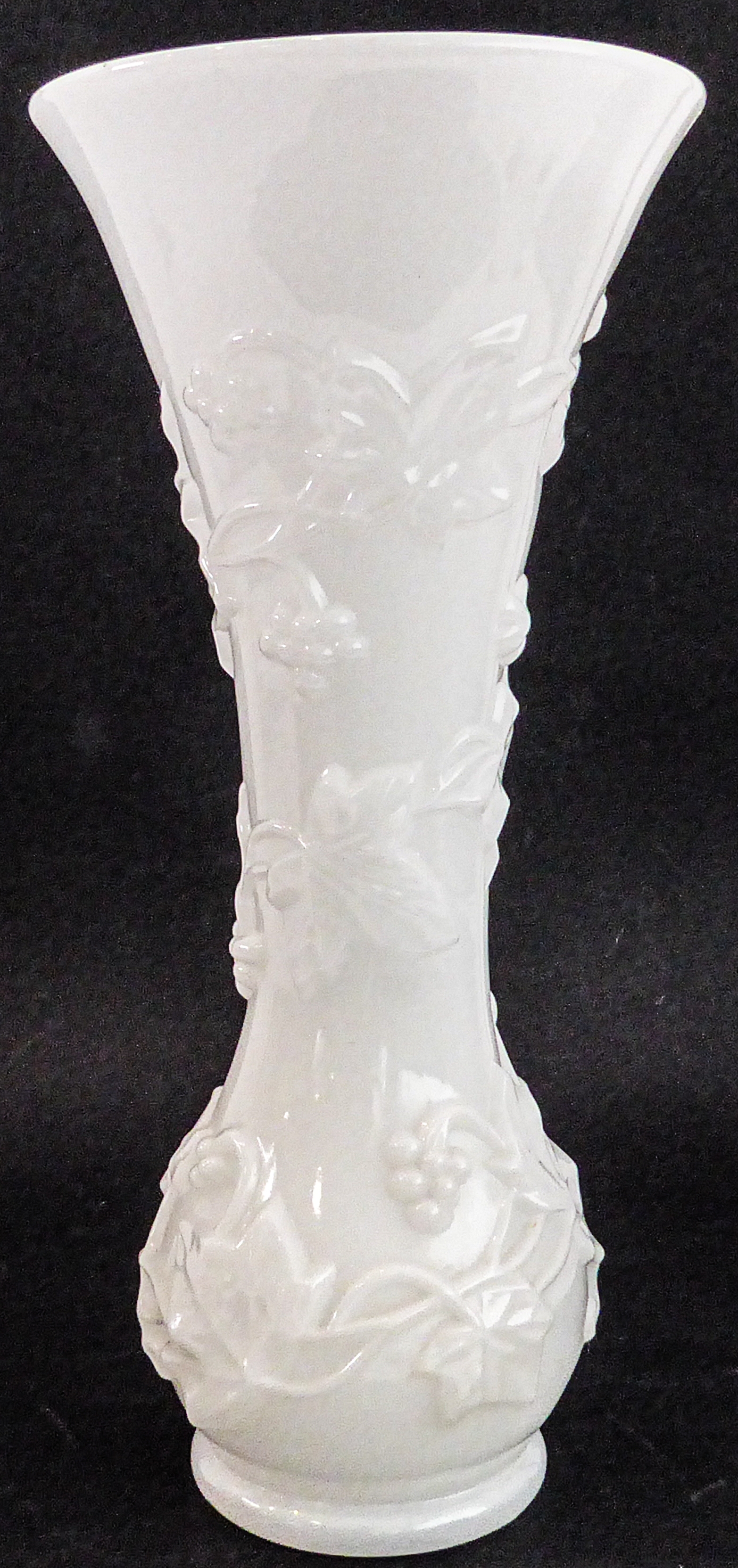 A Napoleon III period (1845-1870) Baccarat opaline vase of trumpet form and decorated in high relief with fruiting vine (35 cm high)