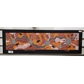 Linda Nabanunga, aboriginal painting on fabric titled ' Waterhole ' depicting Australian wildlife along a river, 60cm x 18cm