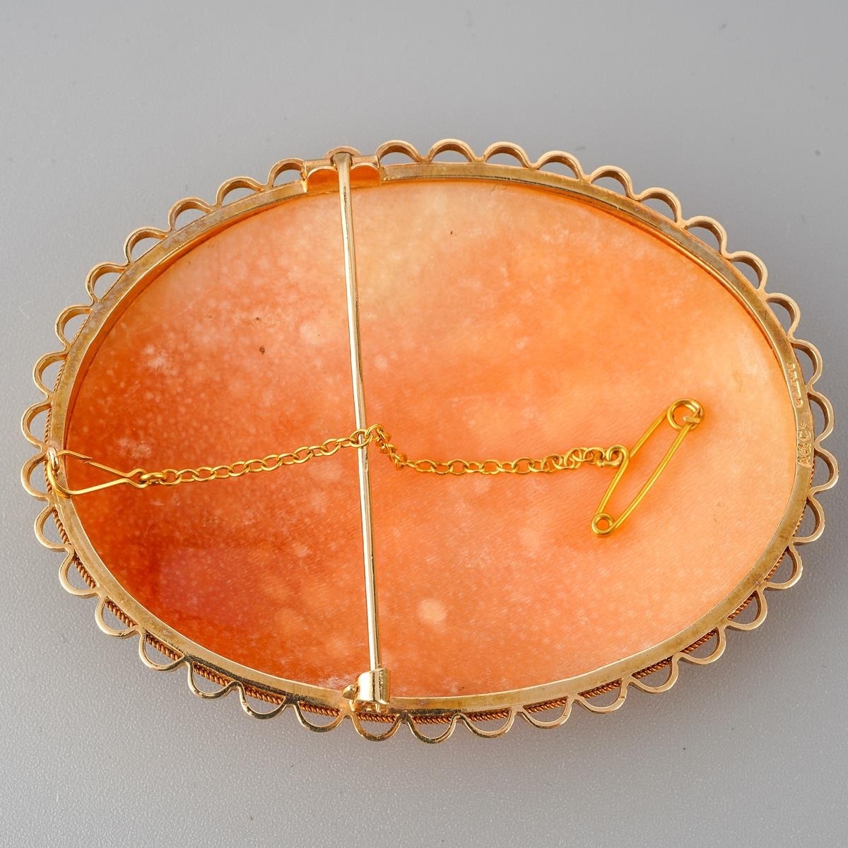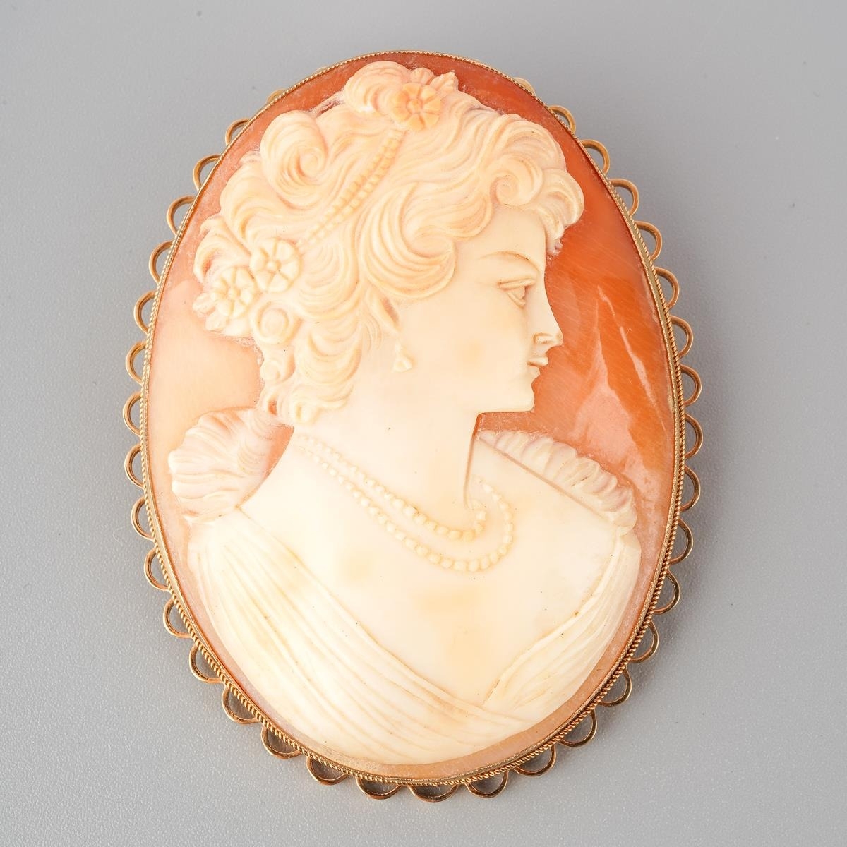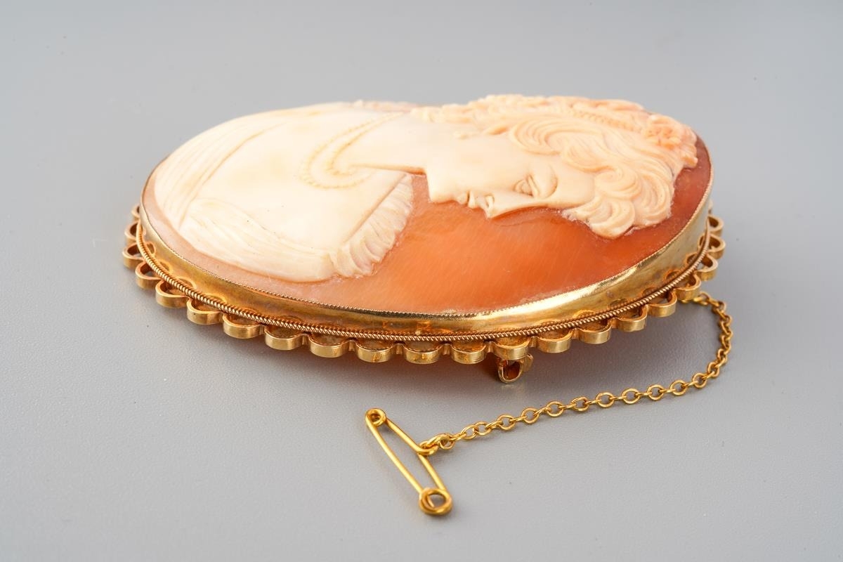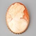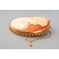 A large 9 ct gold mounted cameo brooch of a portrait of a lady, measuring 6.5cm x5 cm, gross weight approx. 22.7g