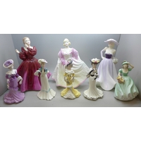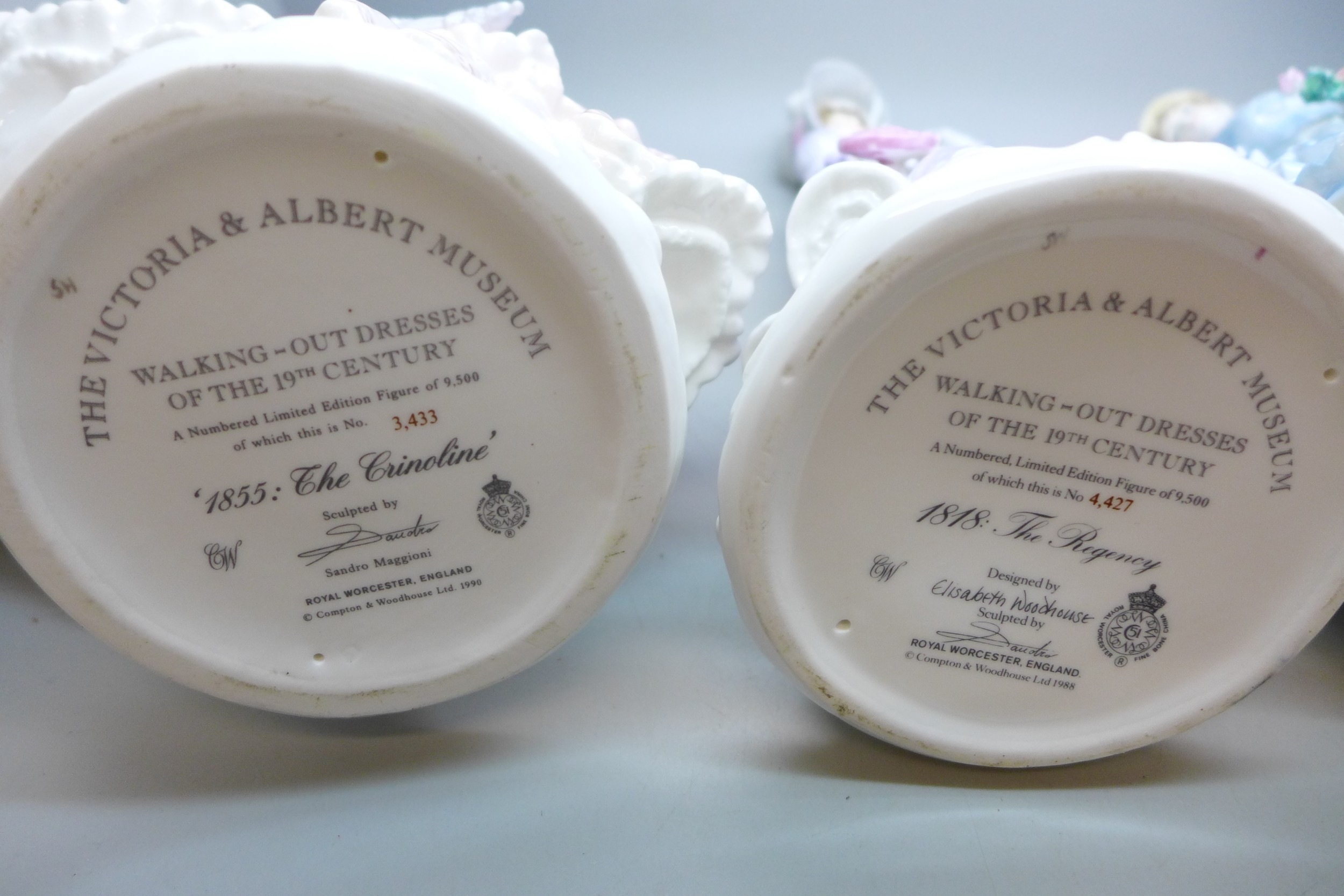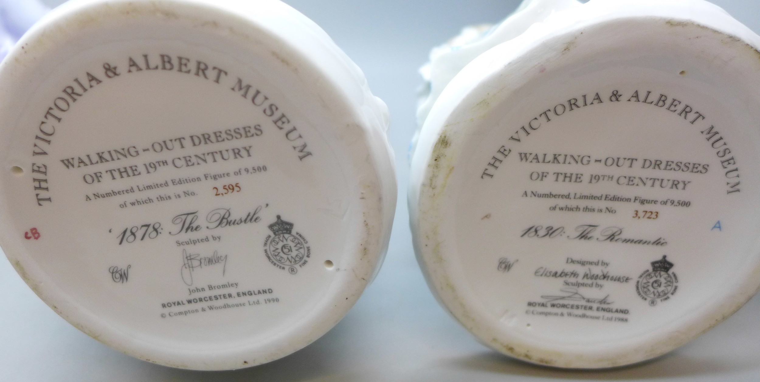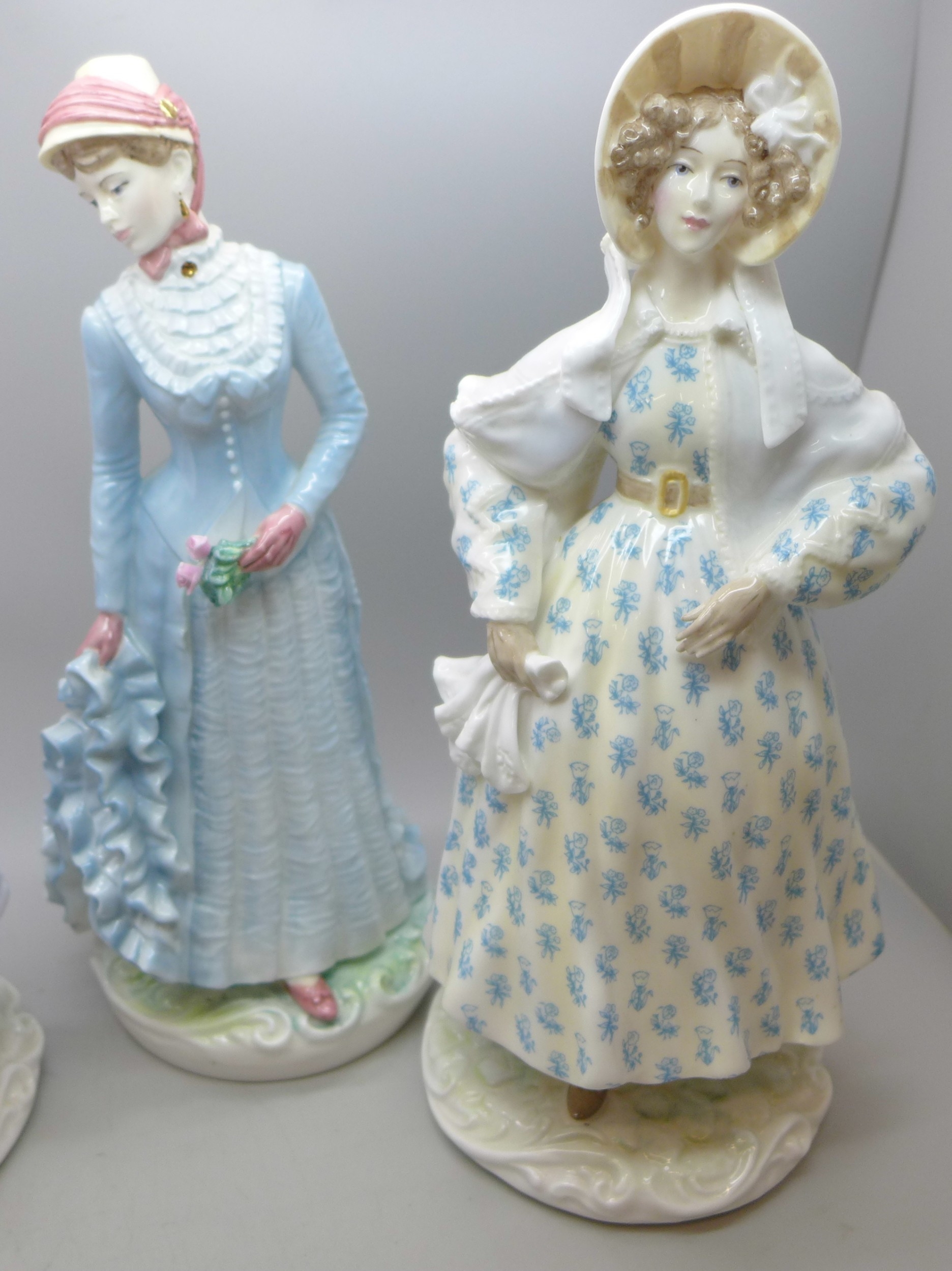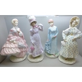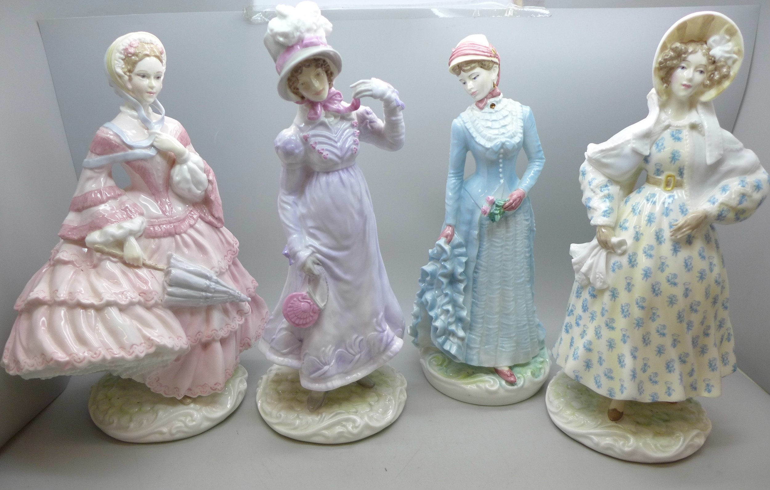 Four Royal Worcester The Victoria and Albert Museum Walking-Out Dresses of the 19th century figures limited editions, 24.5cm