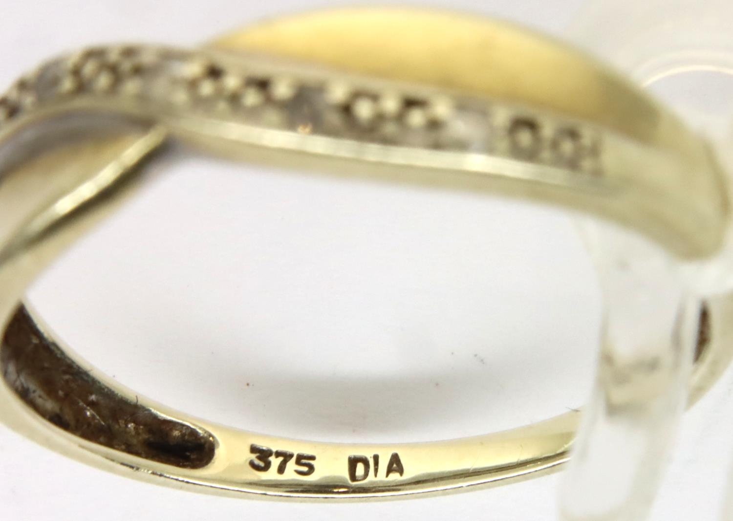 9ct gold crossover diamond set ring, size Q, 1.9g. P&P Group 1 (£14+VAT for the first lot and £1+VAT for subsequent lots)