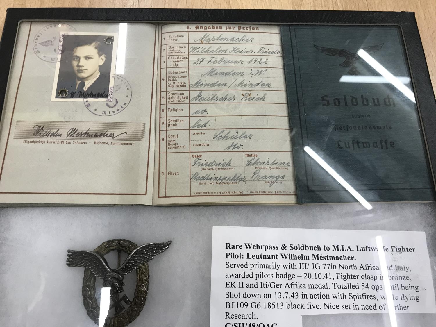 WW11 Luftwaffe ME109 fighter pilot medal group with Soldbuch & Wherpass
