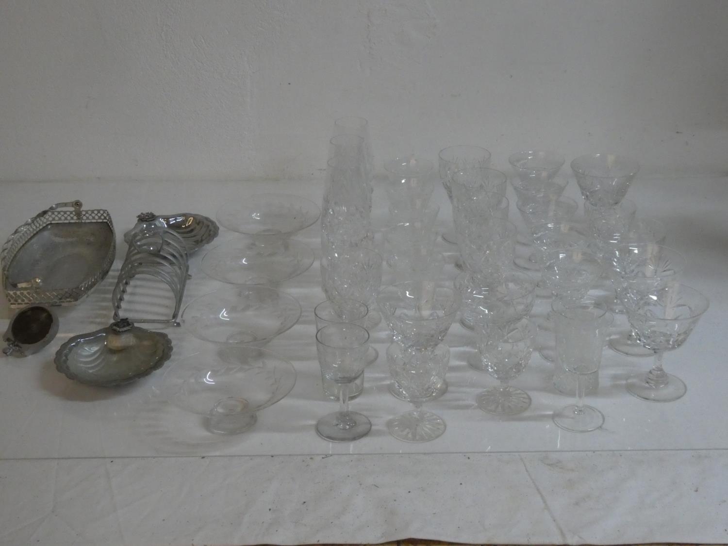 A large lot of various sets of vintage glasses.