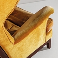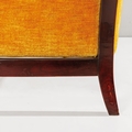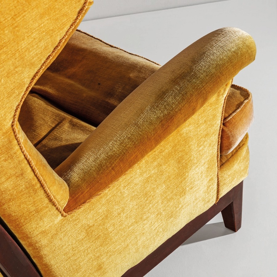 Poltrona. Legno di noce tinto, tessuto imbottito. Produzione Arredamenti Borsani Varedo, anni '40.