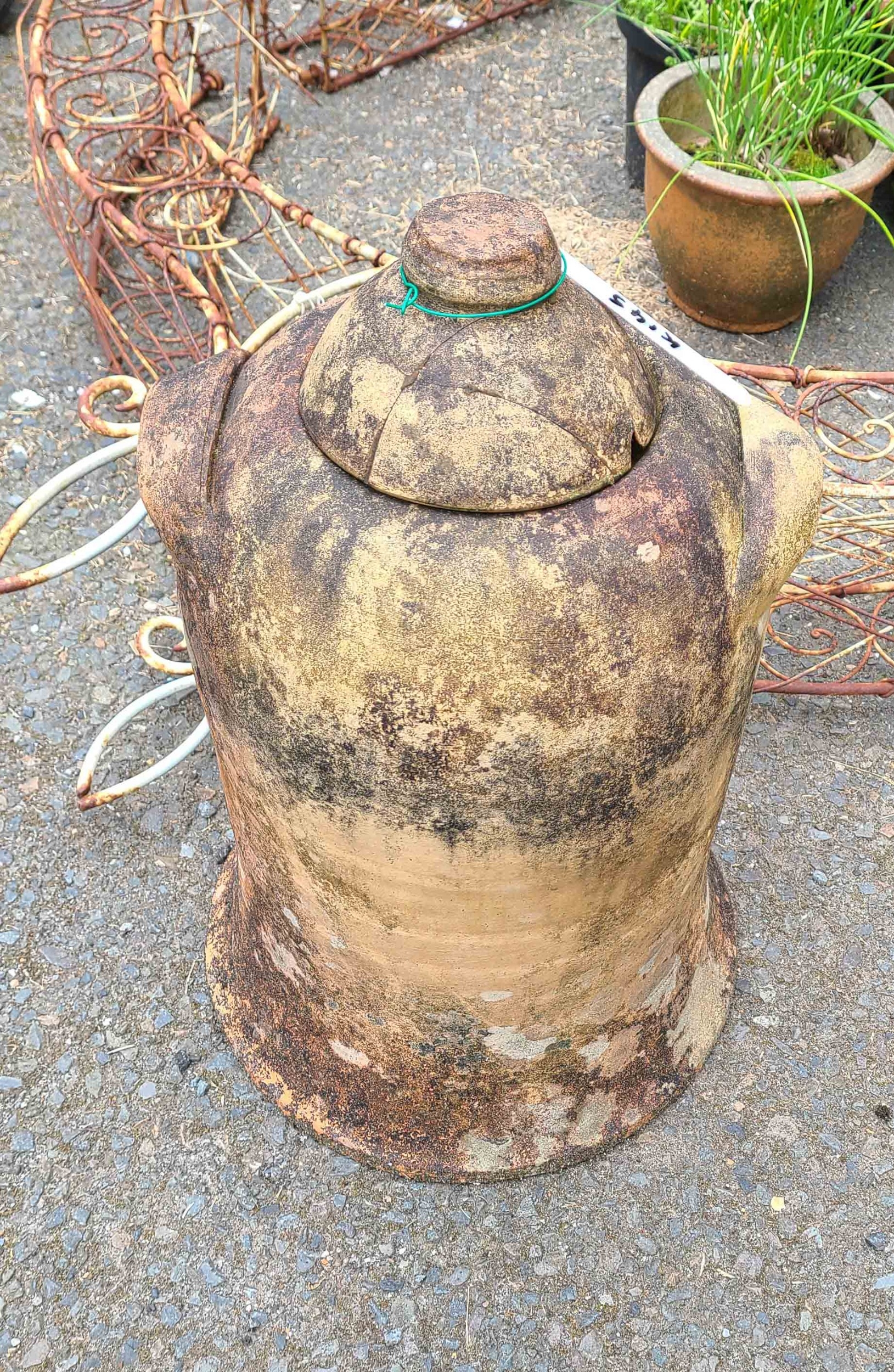 An antique terracotta rhubarb forcer with lid (a/f)