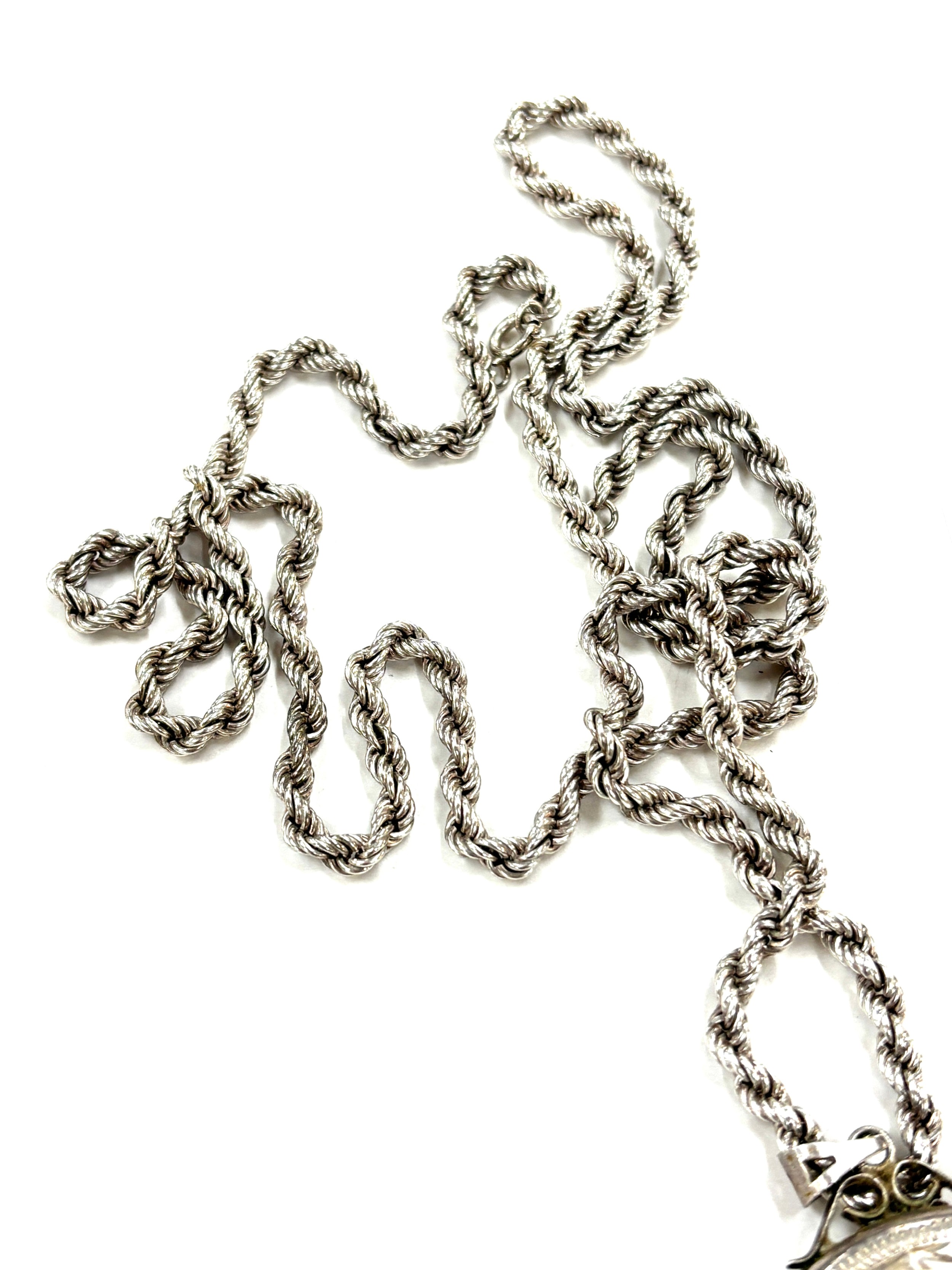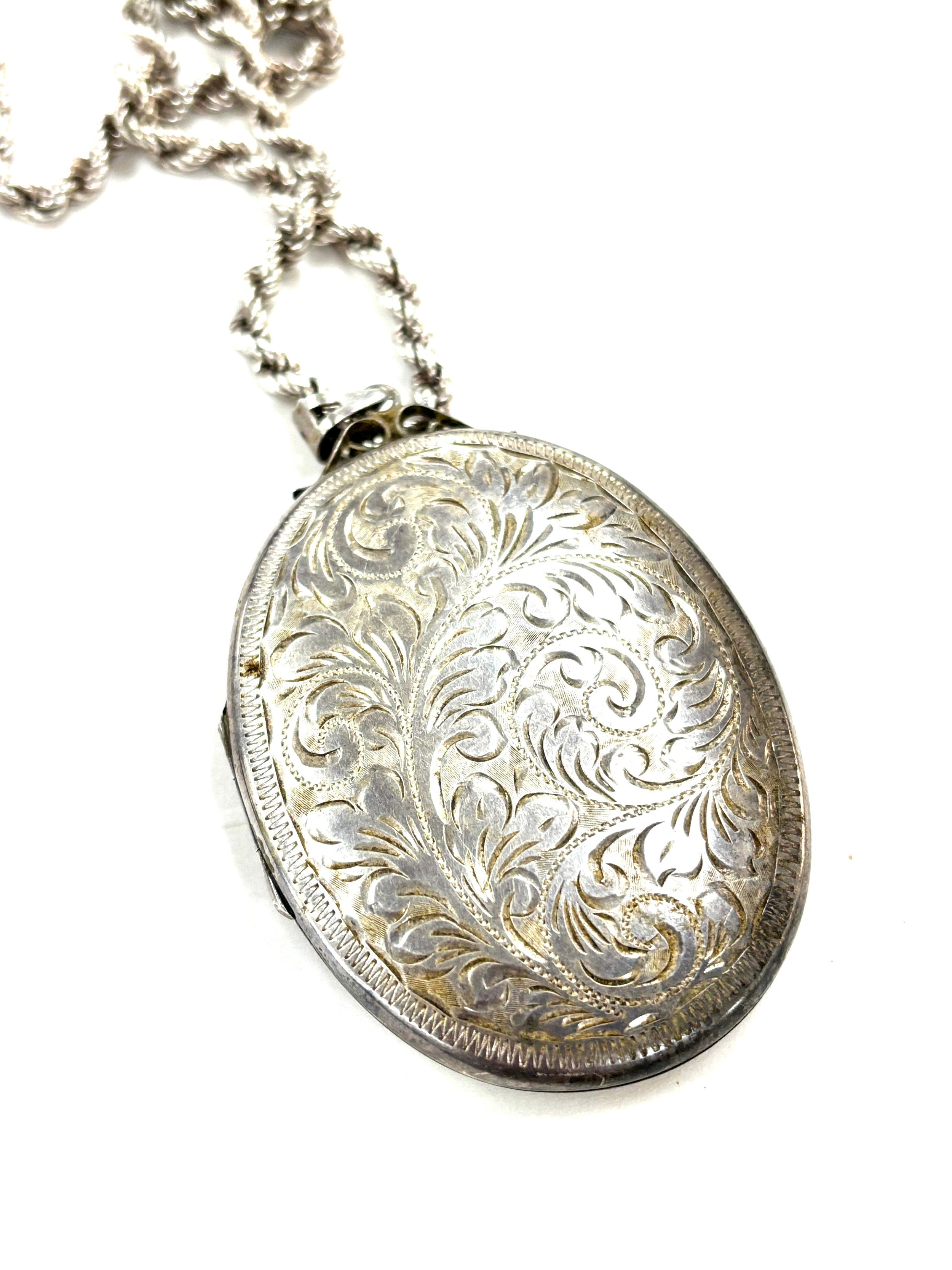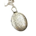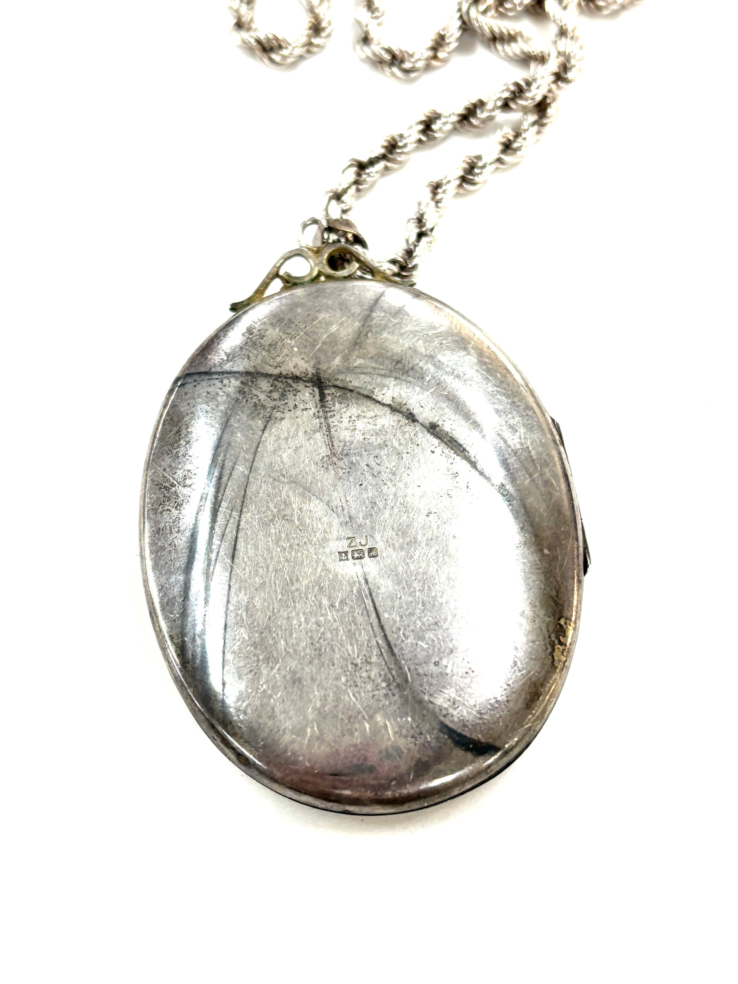 Silver 925 ladies chain and large photo locket, overall weight 72.7g, pendant measures approximately 7 x 4.5cm