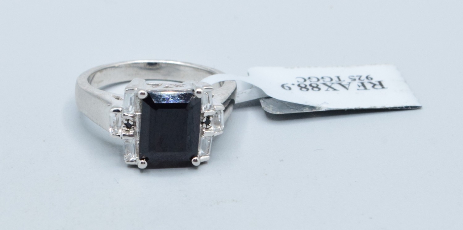 New with Tag 925 TGGC silver ladies black Onyx square shape dress ring size R