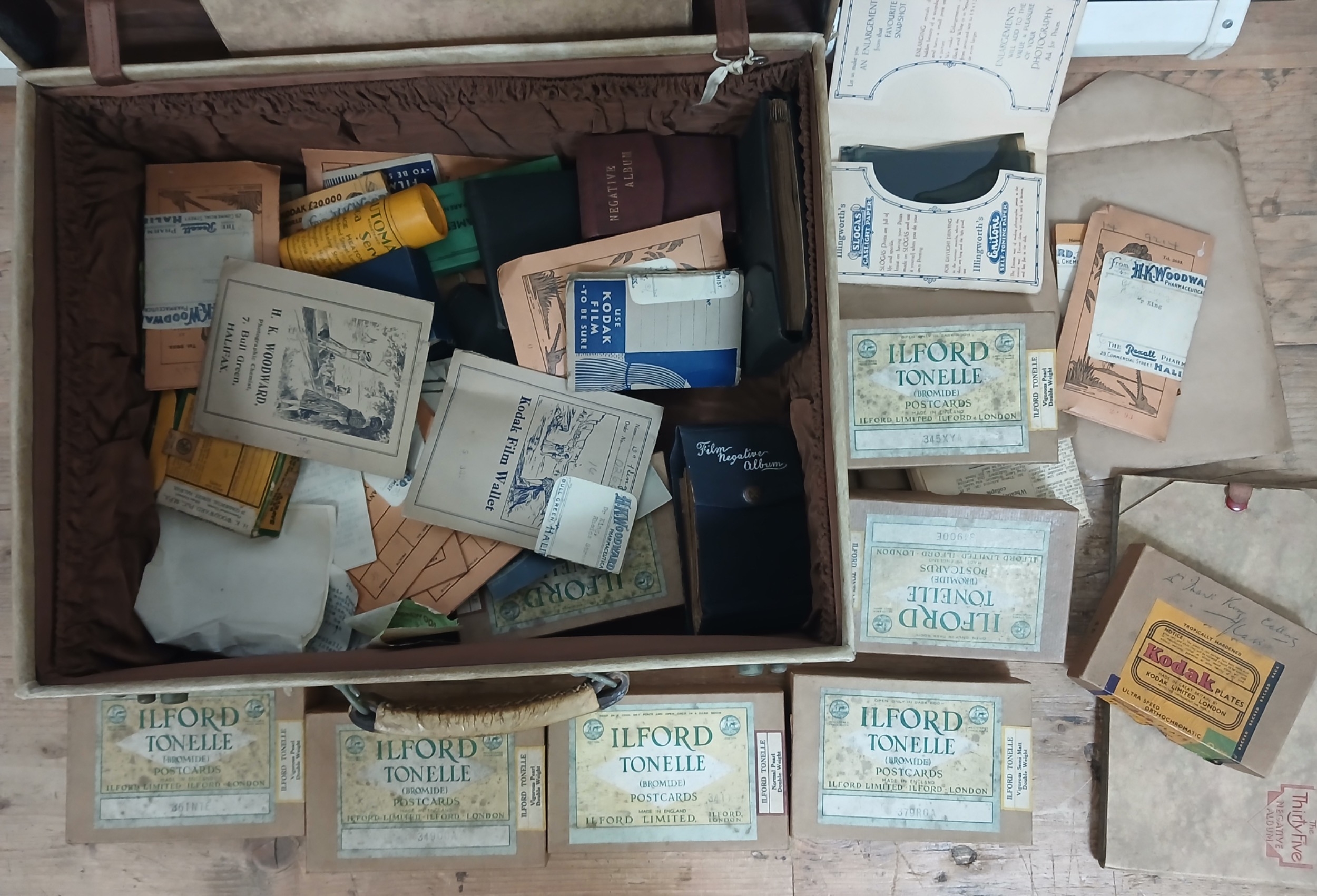 Frank King, a velum suit case containing a quantity photographic negatives and photograph post cards depicting Frank and Annie King's holidays, circa 1930s to 1950s.