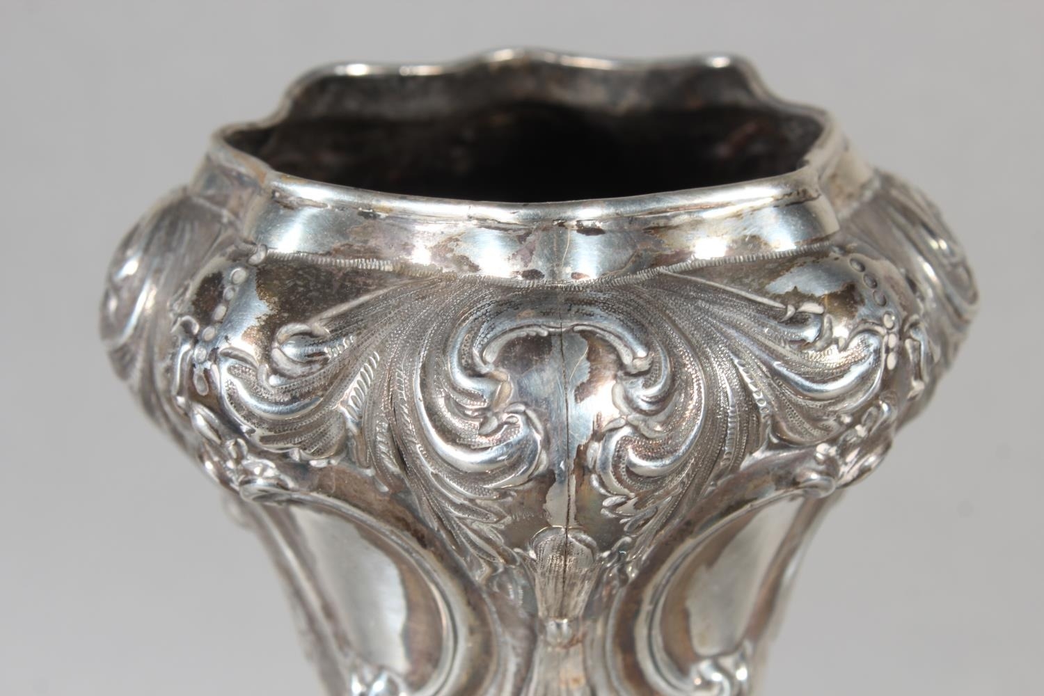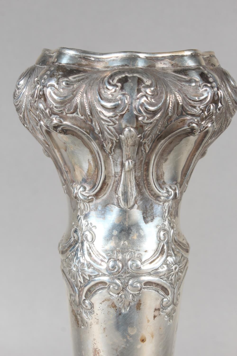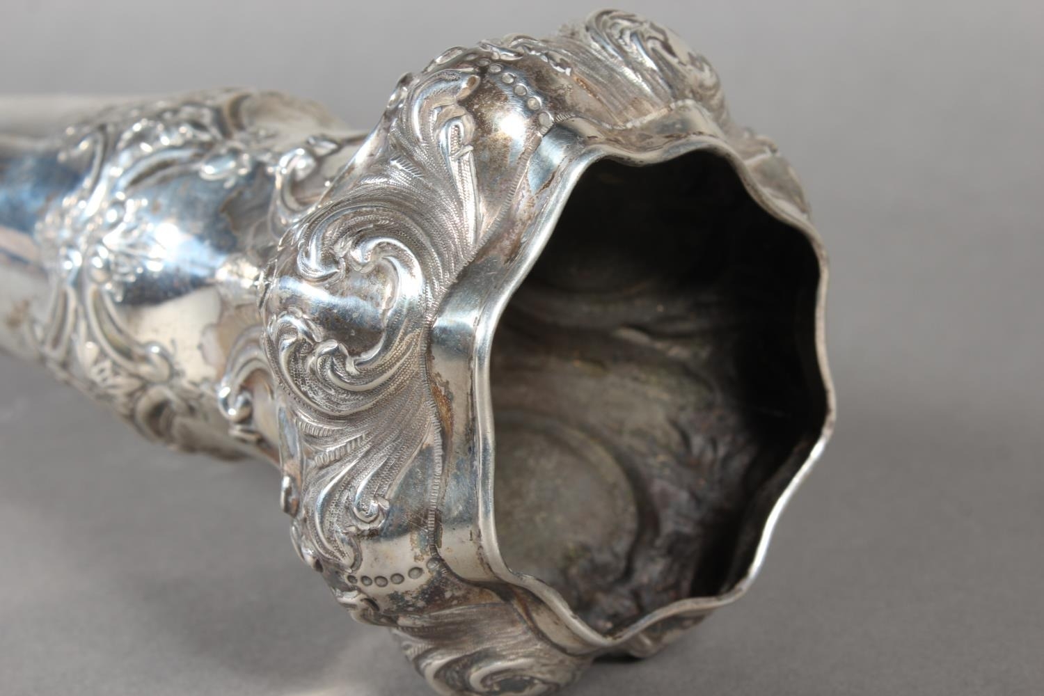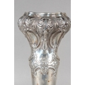 Victorian silver vase with heavy repoussé decoration, with filled base, Walker & Hall, Sheffield, 1901, 35cm tall.
