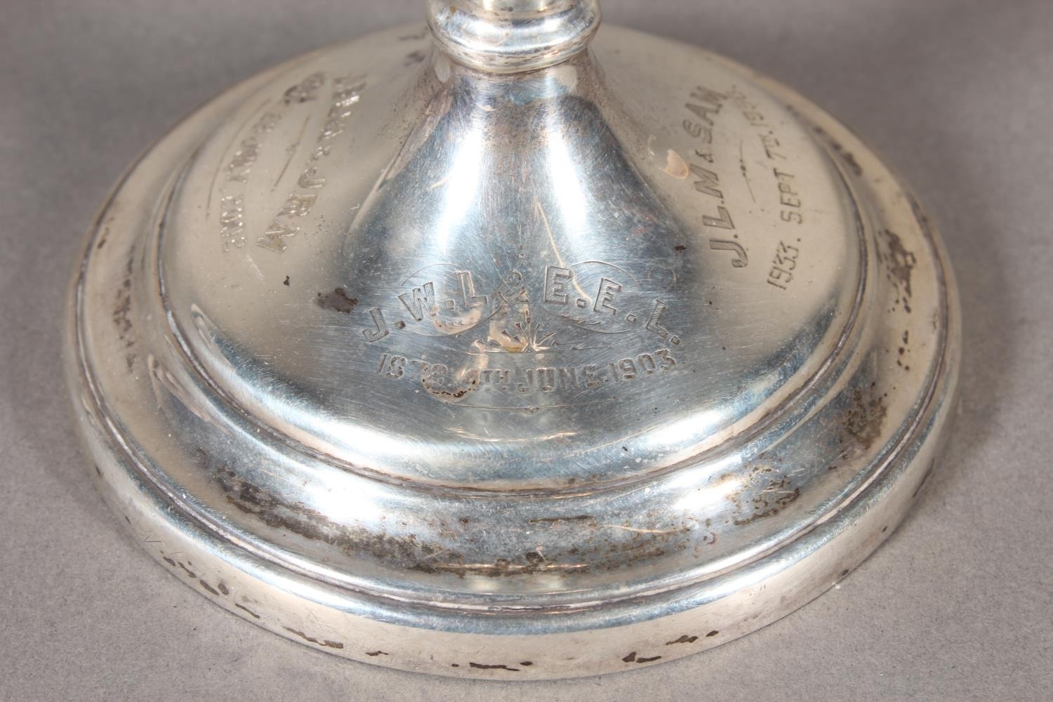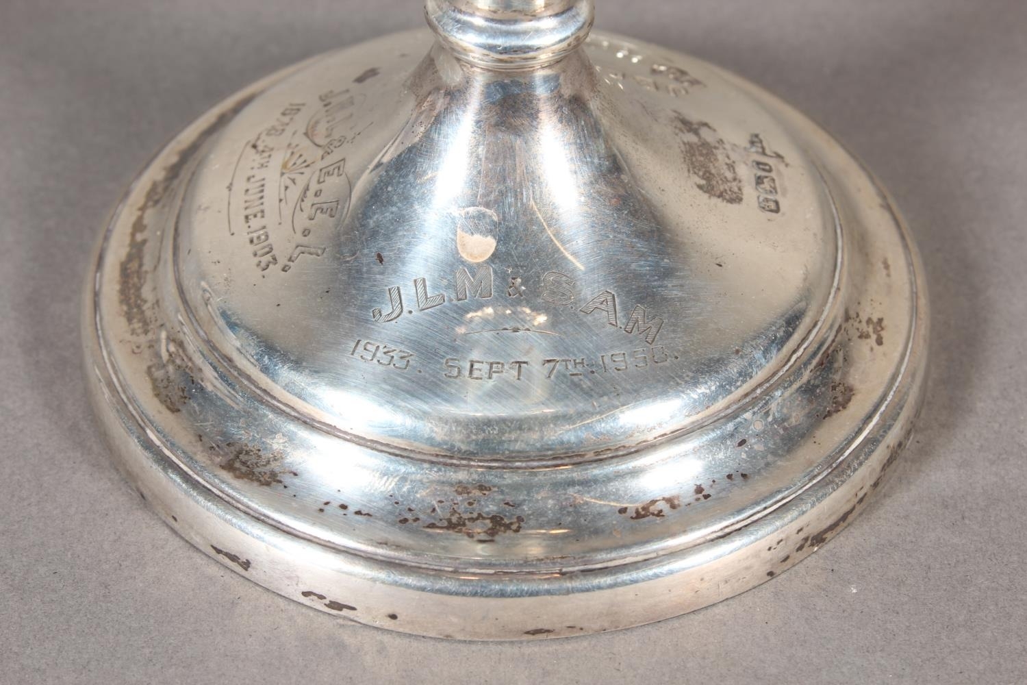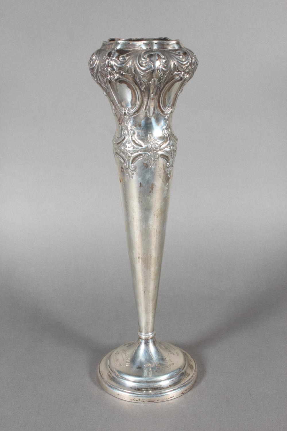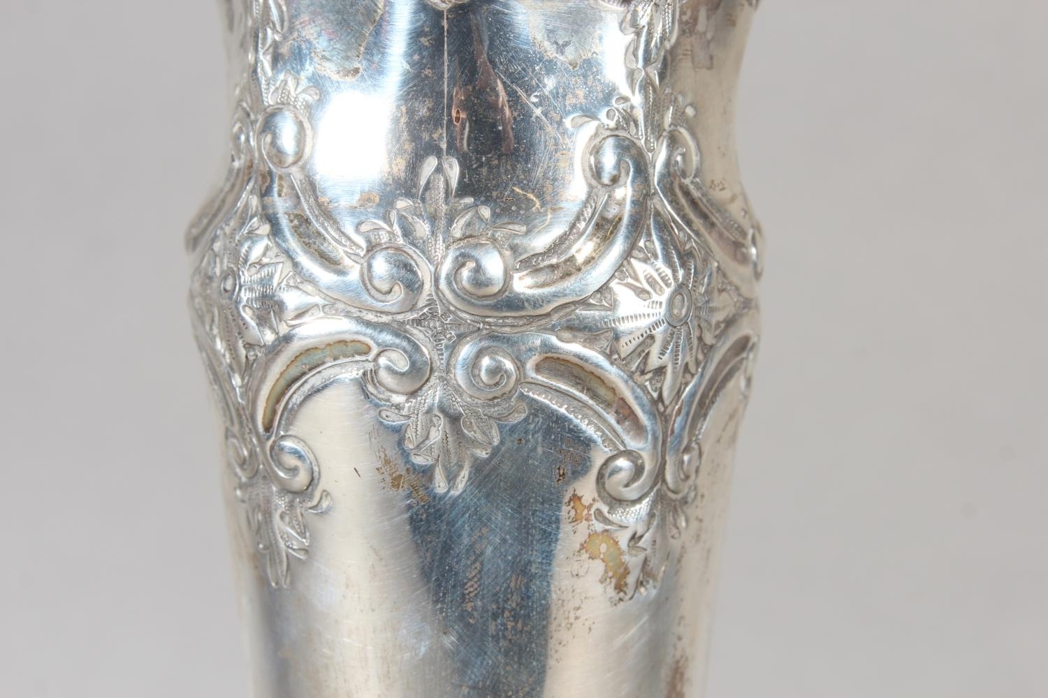 Victorian silver vase with heavy repoussé decoration, with filled base, Walker & Hall, Sheffield, 1901, 35cm tall.
