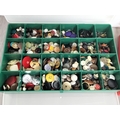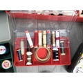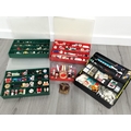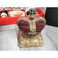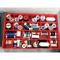 Cantilever Hobby Box with Assorted Sewing Items to include Needles, Scissors, etc plus 4 x Sectional Boxes, 3 with Threads and 1 Full of Buttons plus a Coronation Crown Pin Cushion.
