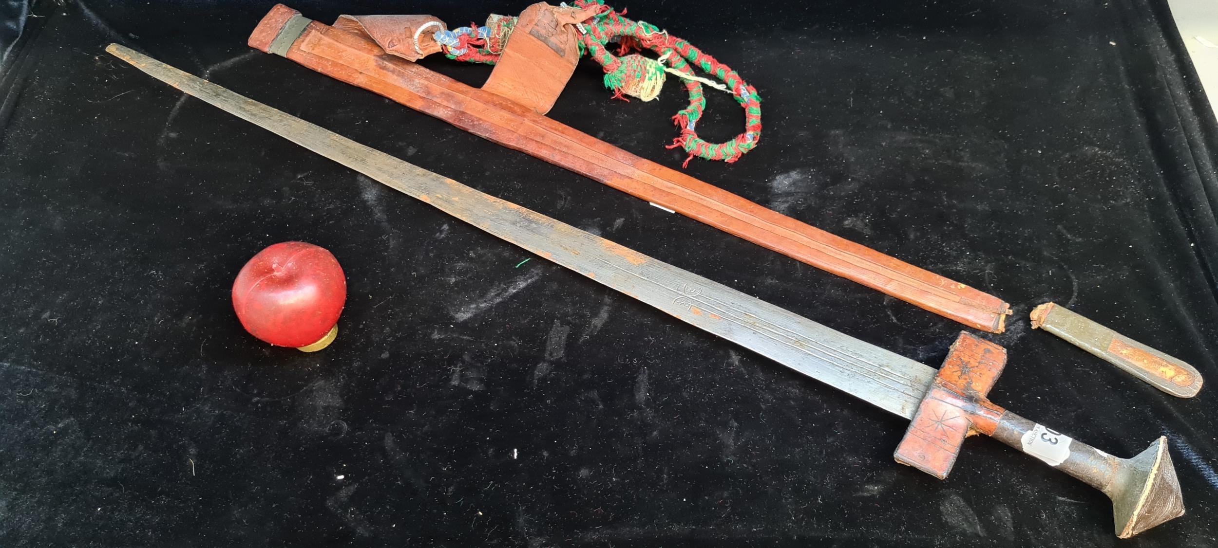 Star Lot : A mid 20th century African turareg sword and scabbard. Selling online for €250+. (damage to scabbard)