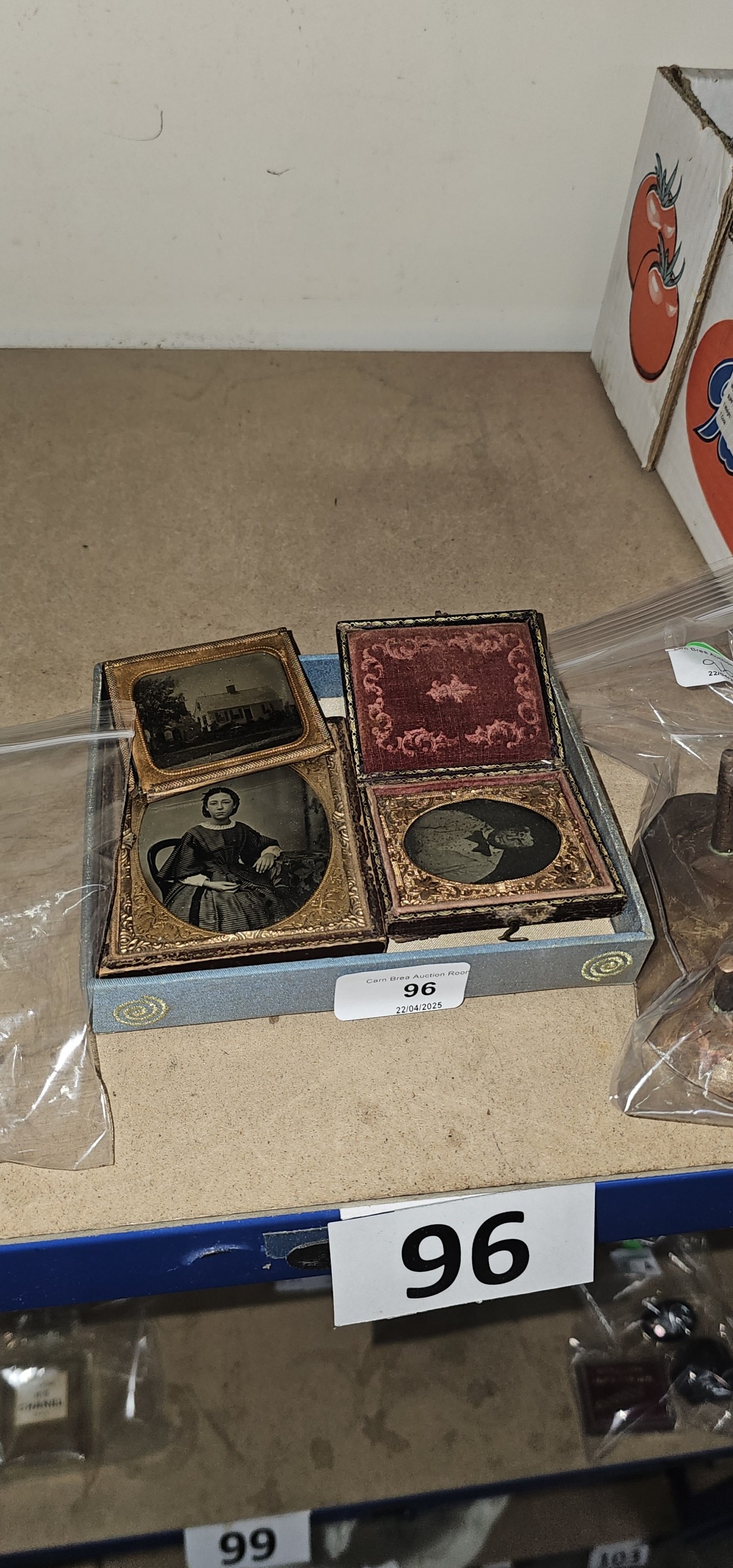 3 Antique Early Photos Daguerreotype, one in a leather travelling case