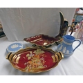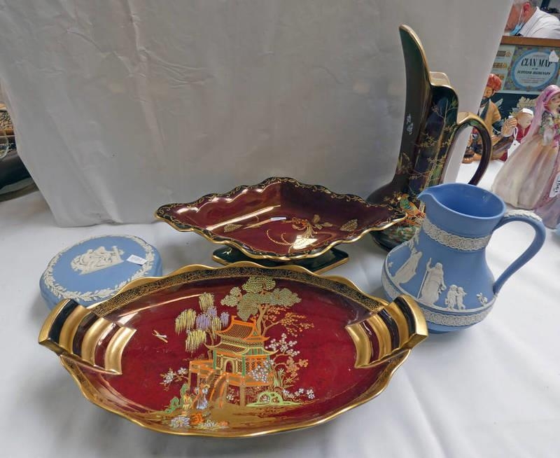 CARLTON WARE 'ROUGE ROYALE' PEDESTAL BOWL TOGETHER WITH SIMILAR CROWN DEVON AND WEDGWOOD JUG AND LIDDED BOWL ETC
