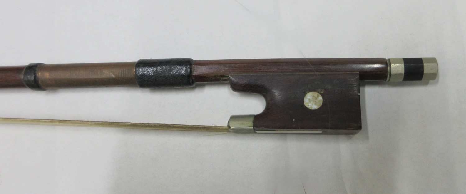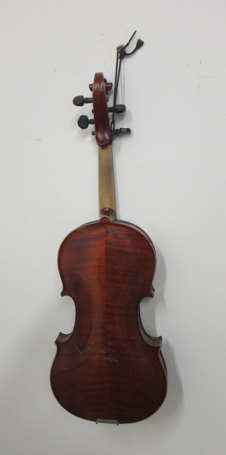 20th century violin with two piece back and faux label for 1651, L59cm and a bow L71cm (2)
