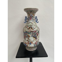 A Chinese blue and white 6 character signature small vase and Chinese lacquered letter holder.