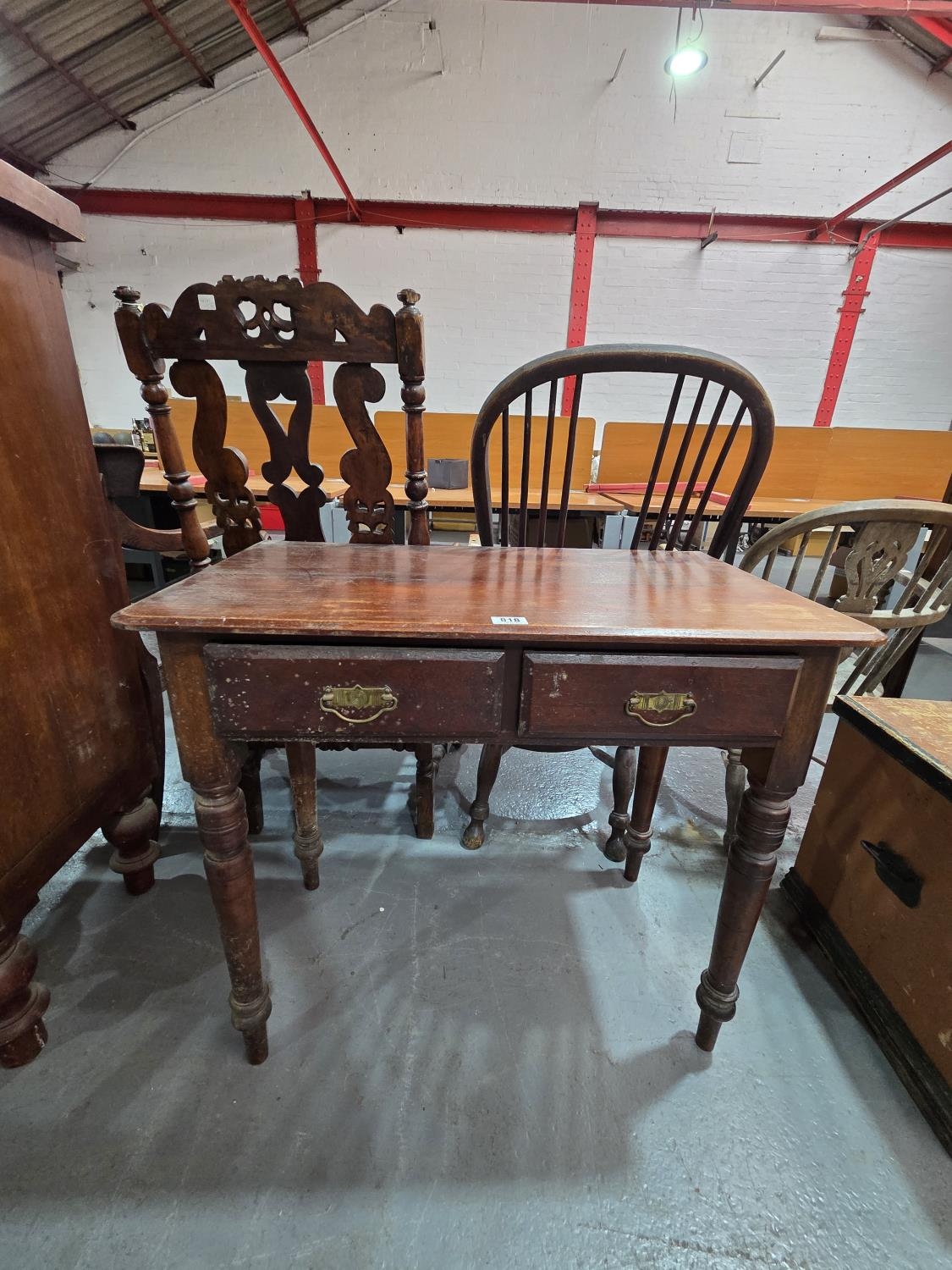 An oak two drawer desk