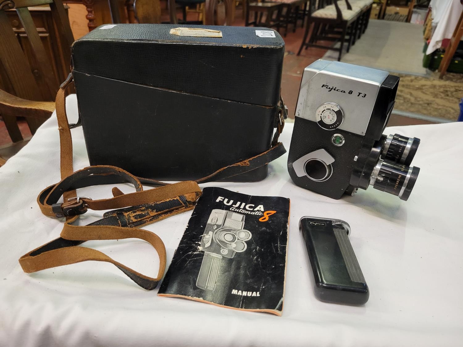 1960's Fujica Automatic 8 T3 Double 8mm Camera in Original Box with Booklet & Accessory.