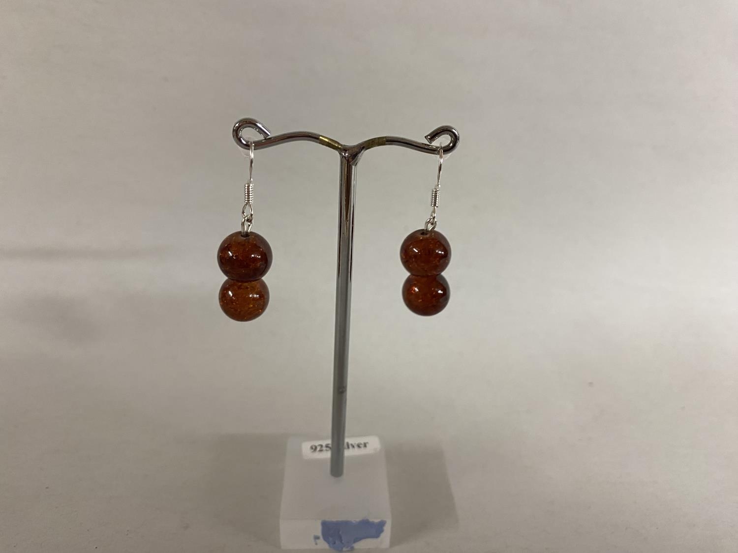 925 Silver Pressed Amber Earrings