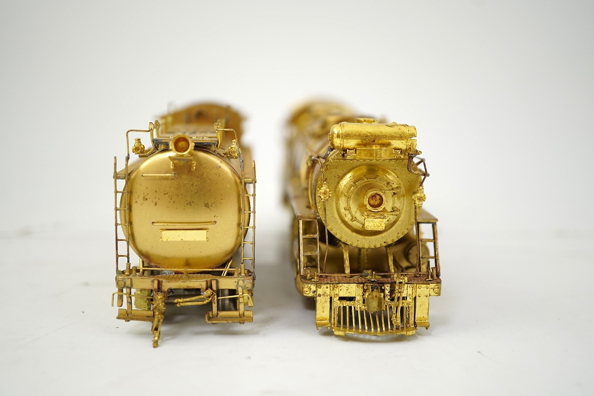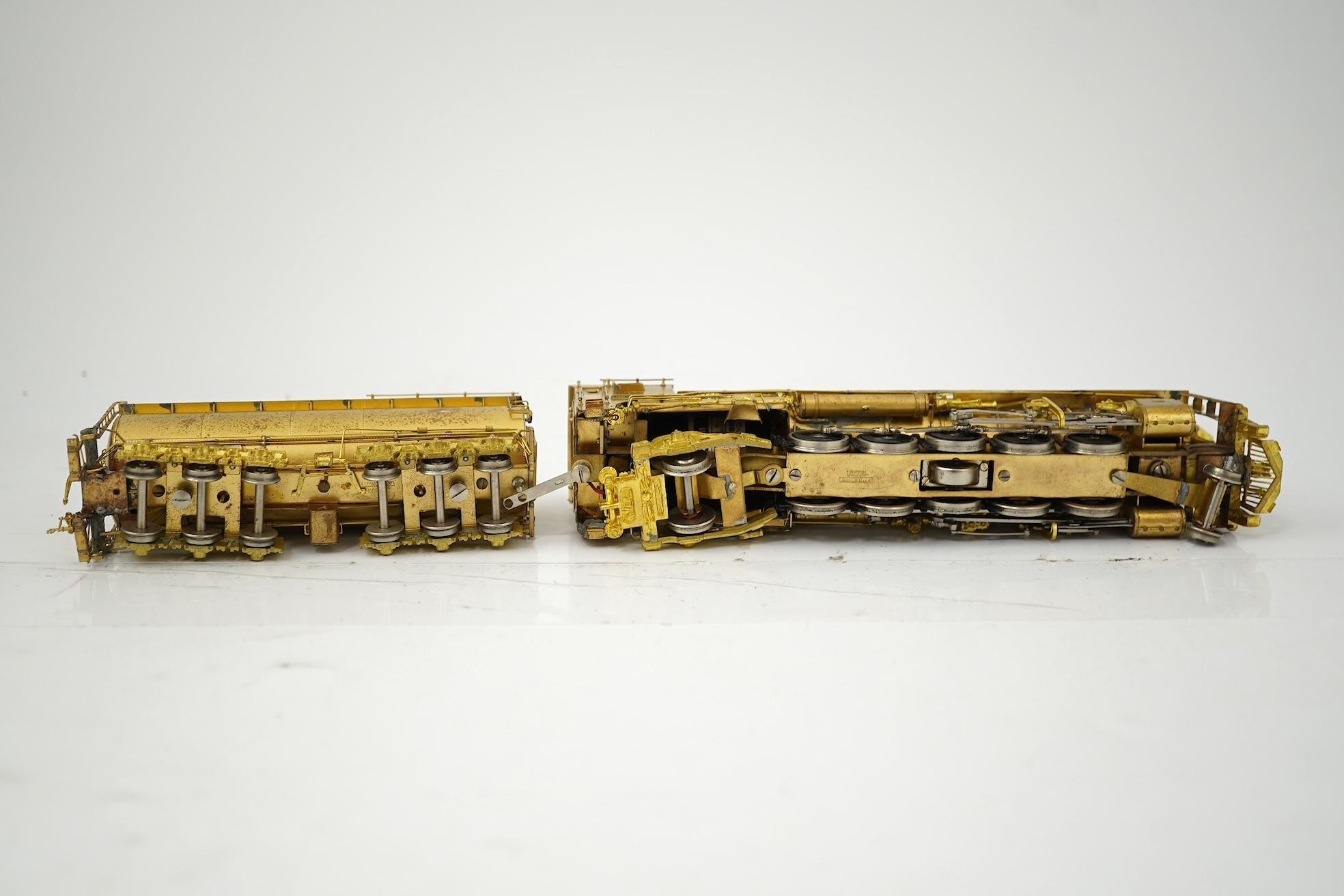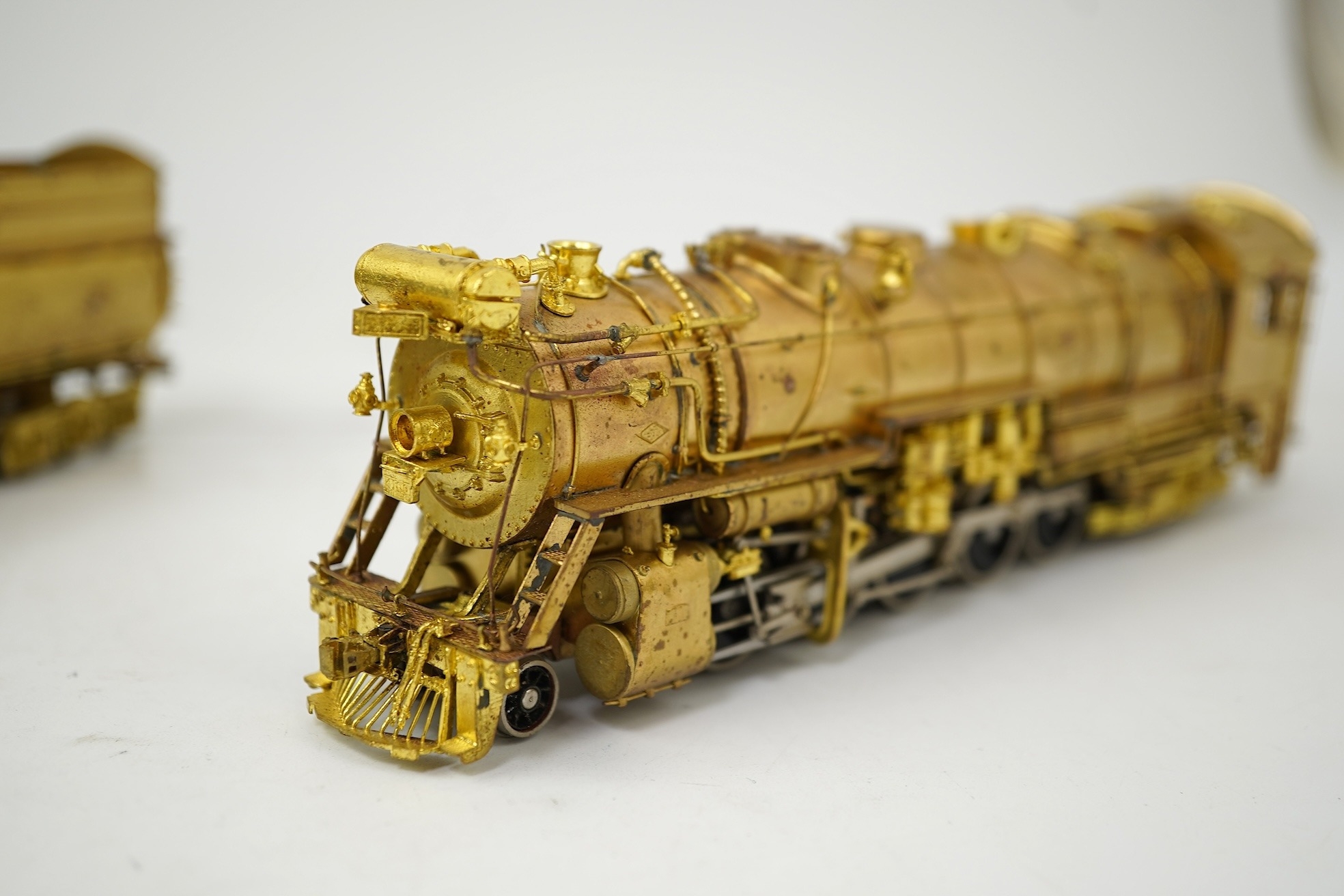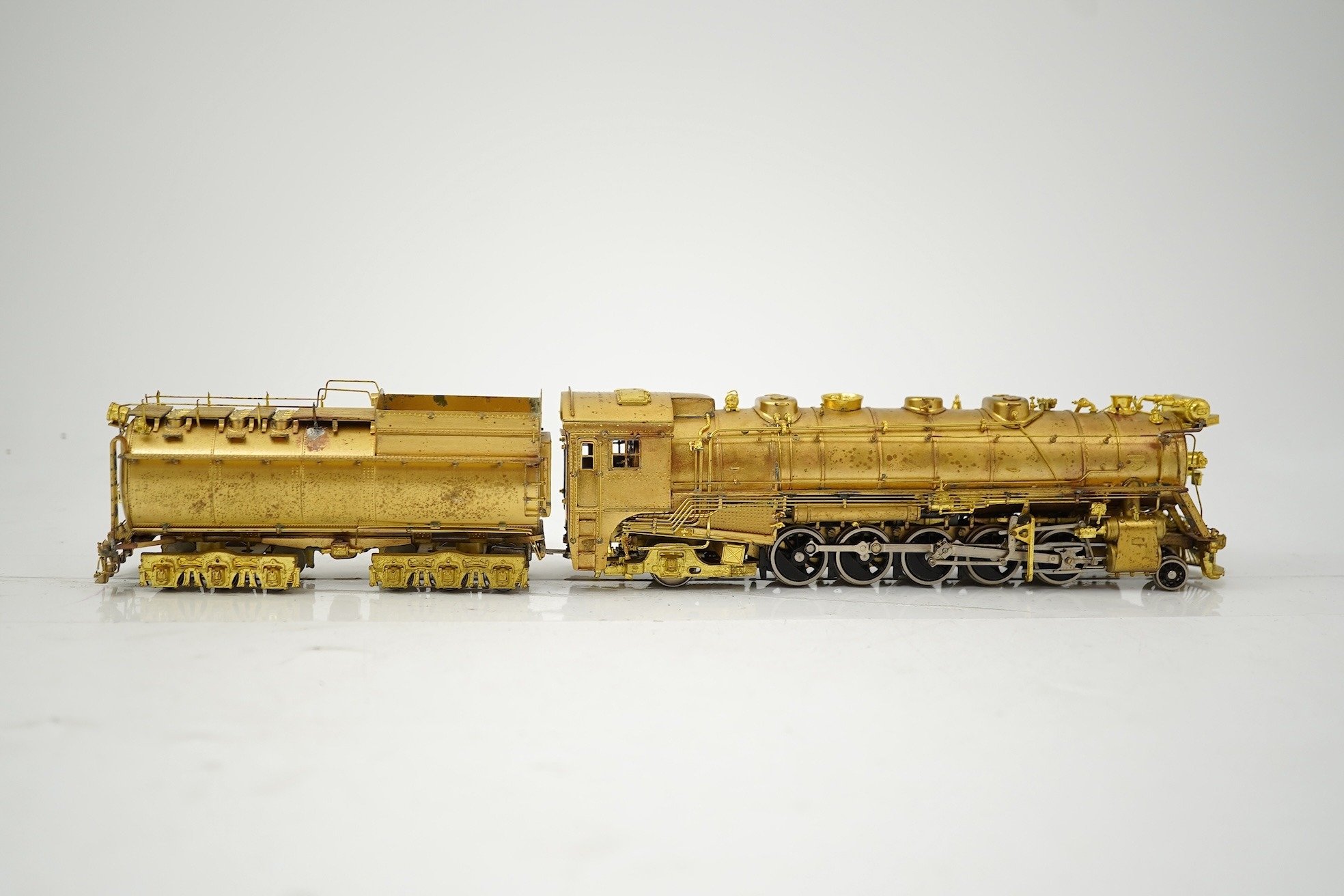 A boxed HO gauge VH Scale Models unpainted brass model of Canadian National Railways T-2a, 4100, 2-10-2 locomotive with bogie tender, powered for two rail operation.
