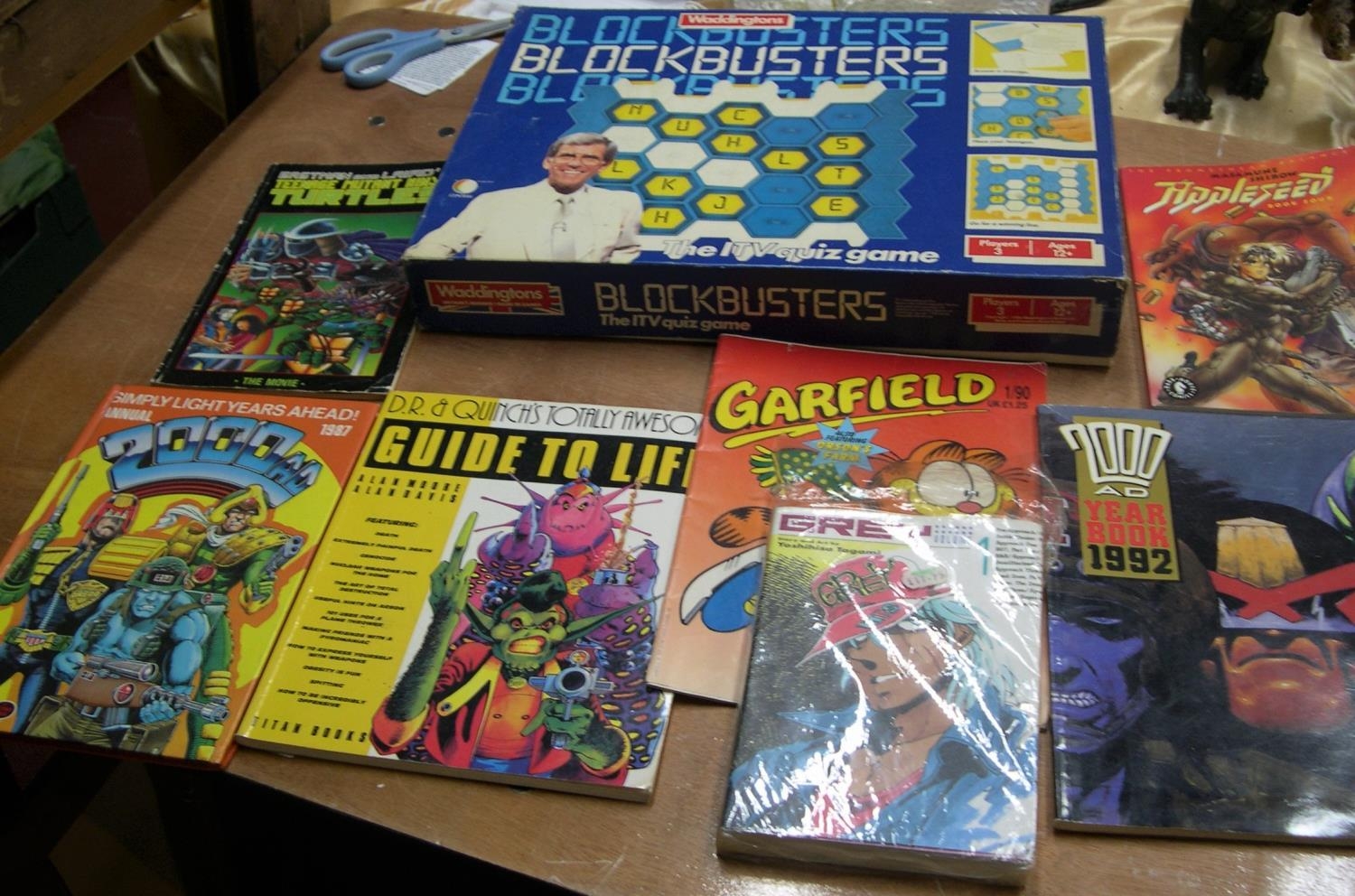 Blockbusters boardgame by Waddingtons and 7 comic books including Garfield etc