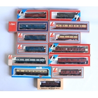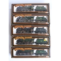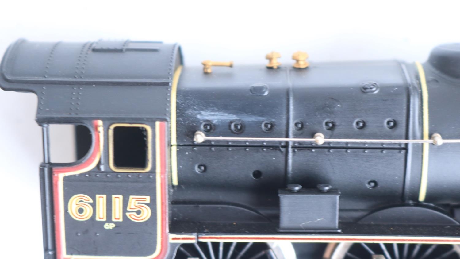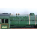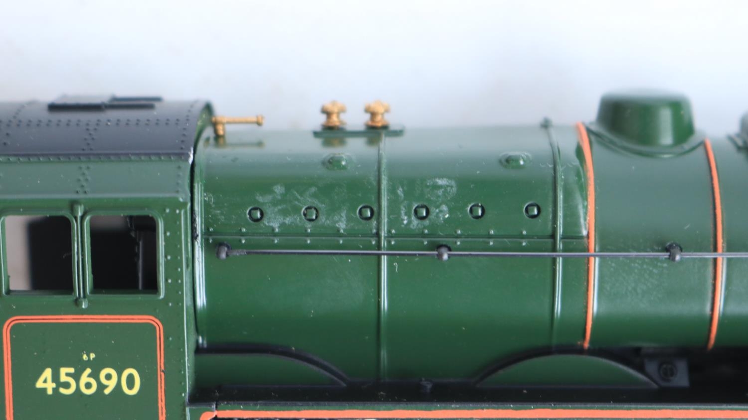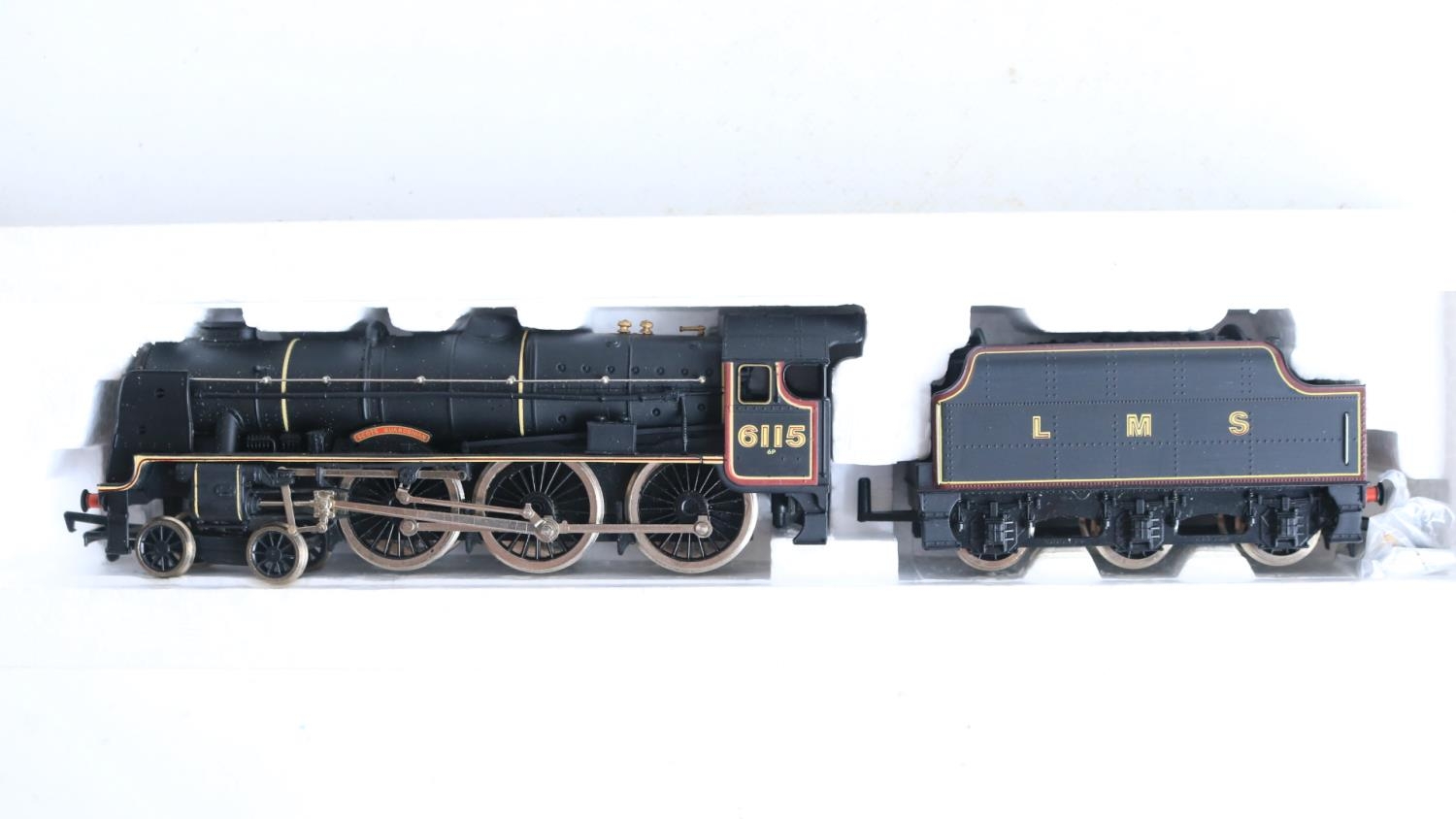 Five boxed OO gauge electric steam locomotive models from Mainline to include Jubilee Class 45690 'Leander' (some marks to right rear side boiler area, see photos, likely from extended storage in polystyrene tray, possibly removable) and 4x 4-6-0 7P Rebuilt Scots to include 46115 'Scots Guardsman' (appears to have home applied weathering to running gear), 45532 'Illustrious' (damage to box clear viewing panel), 46100 'Royal Scot' (in matt finish) and LMS black 6115 'Scots Guardsman' (similar issue to Leander, see above), all models completely removed from packaging and inspected and all in at least good overall condition with issues noted above, all with instructions, boxes generally good