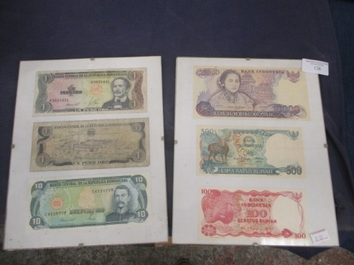 SELECTION OF BANK NOTES REPUBLICA DOMINICANA AND BANK OF INDONESIA IN 2 CLIP FRAMES