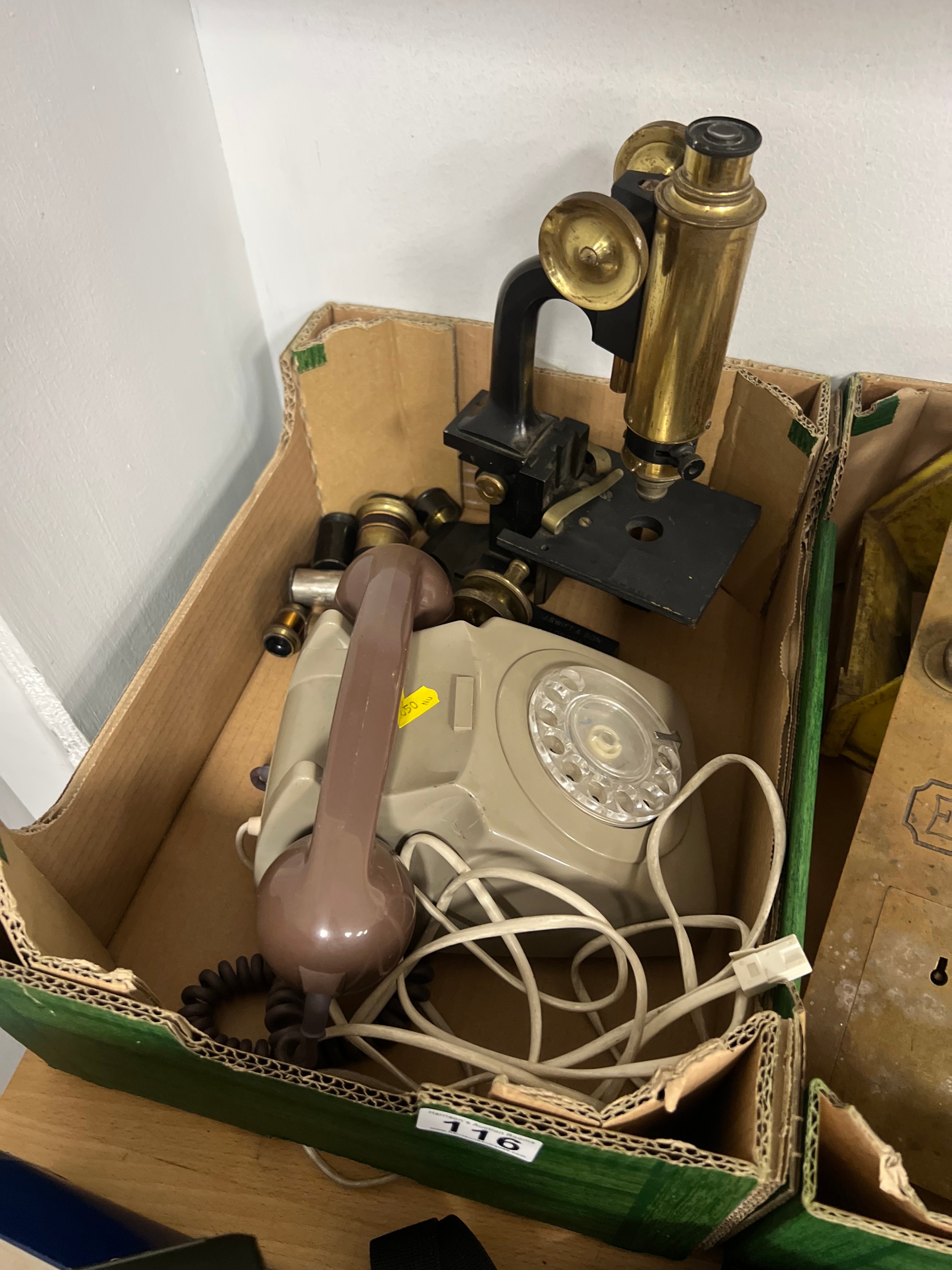 Vintage phone + microscope