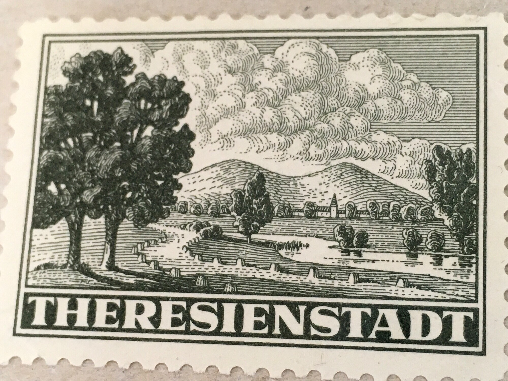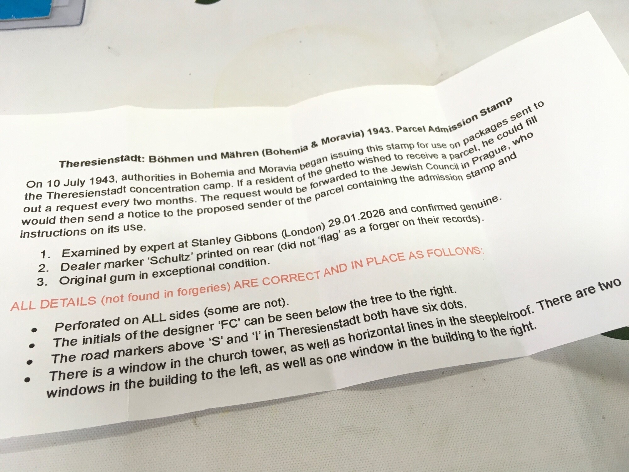 A Theresienstadt Parcel admission stamp Dealer SCHULTZ marked on rear