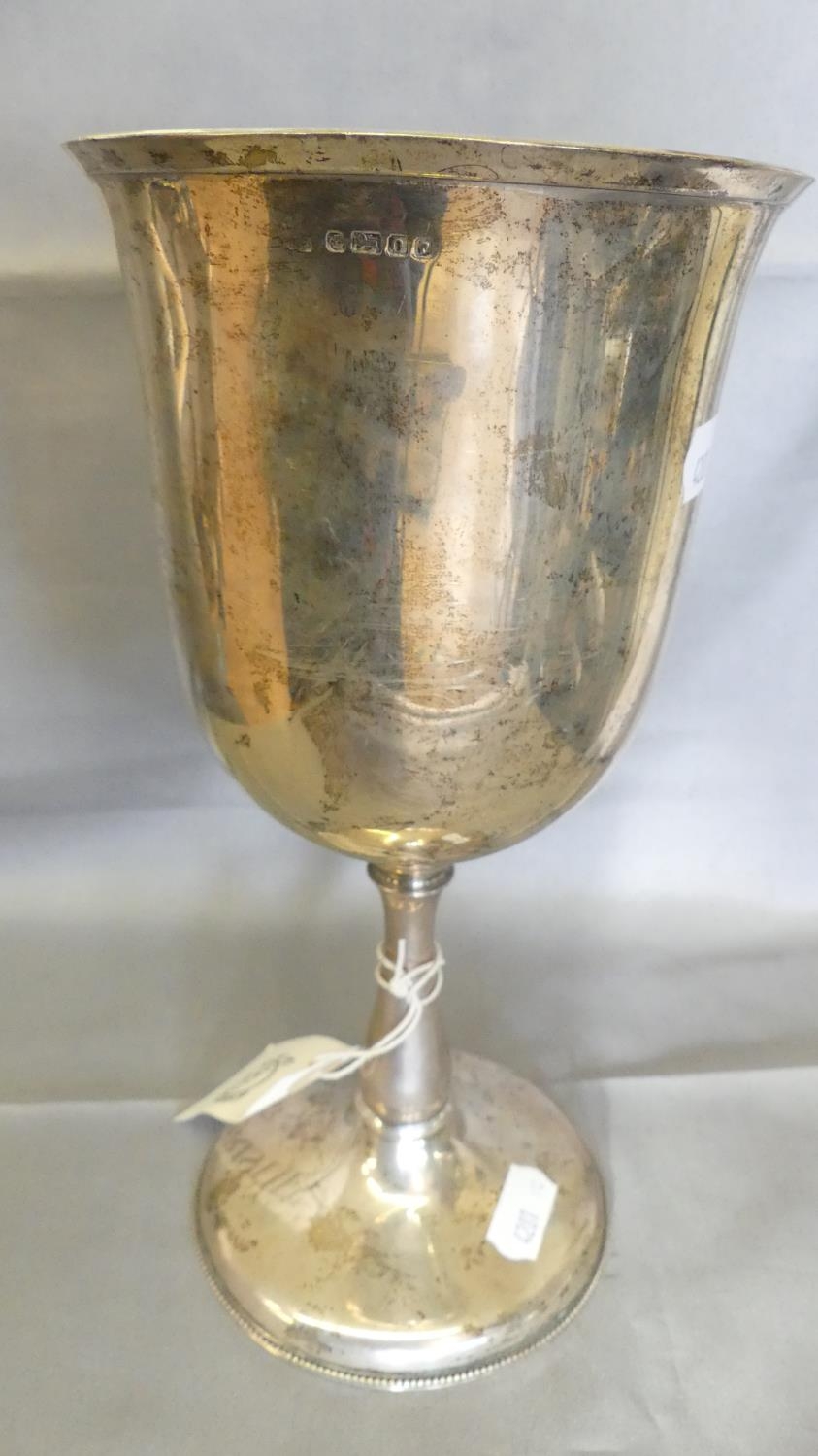 Large Victorian Silver Goblet, 23.5cm tall, ex Christies Auctioneer Label, weighing 12.1oz Troy.
