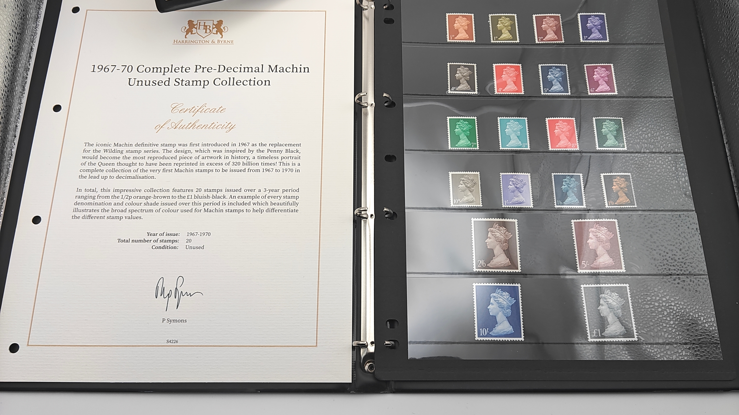 Set of 2 Harrington & Bryne unused stamp collections with COA. 1967-70 & 1953