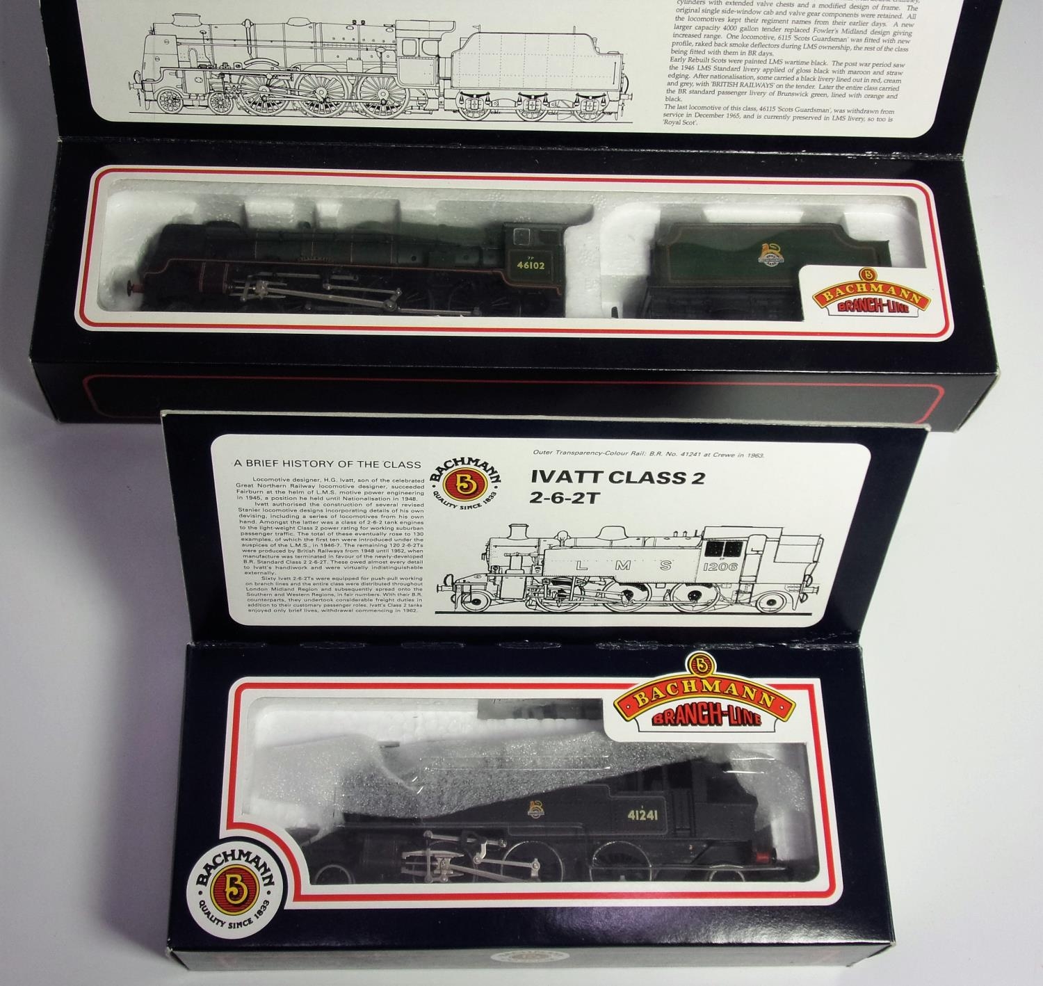 BACHMANN MODEL 31-451 IVETT 2-6-2 TANK LOCOMOTIVE 41241 IN BR LINED BLACK LIVERY TOGETHER WITH BACHMANN 31-225 REBUILT SCOTT 46102 BLACK WATCH IN BR GREEN BOXED CONDITION