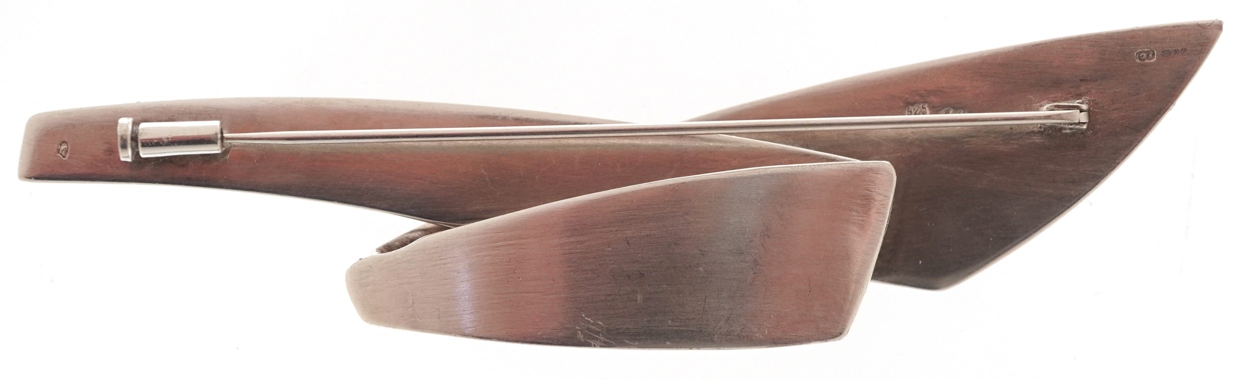 A Modernist silver brooch, 8.5cm in length, 18.0g.