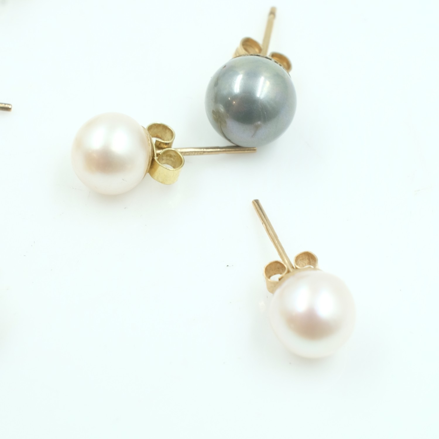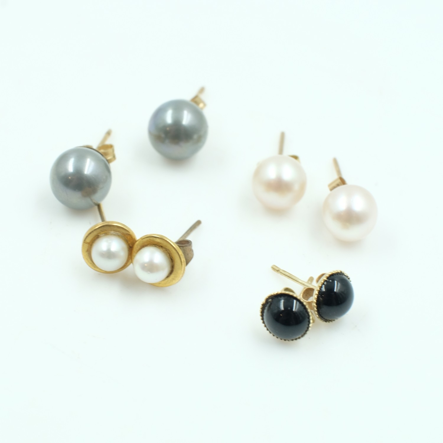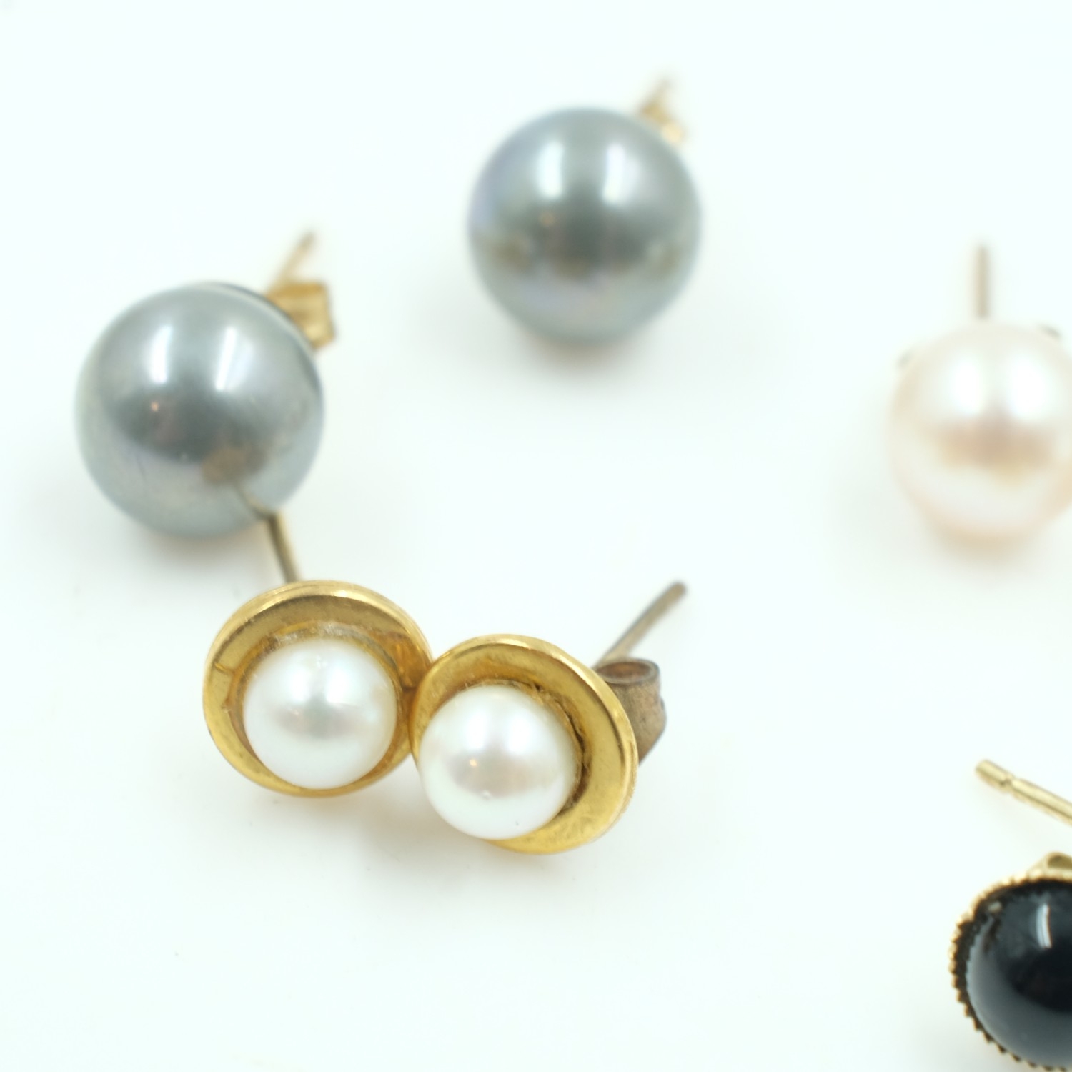 Four pairs of 9ct gold pearl and stone set stud earrings, combined 5.2g. UK P&P Group 0 (£7+VAT for the first lot and £1+VAT for subsequent lots)