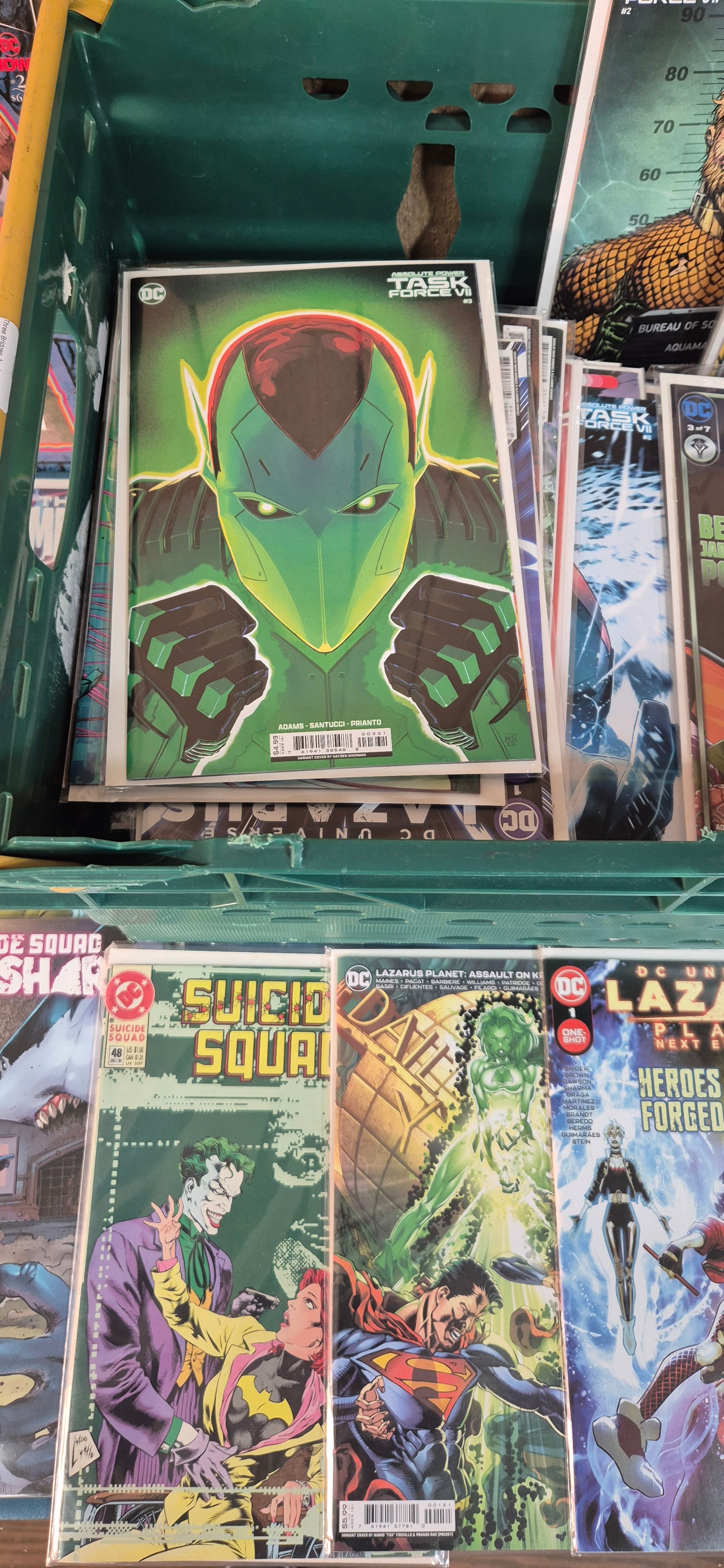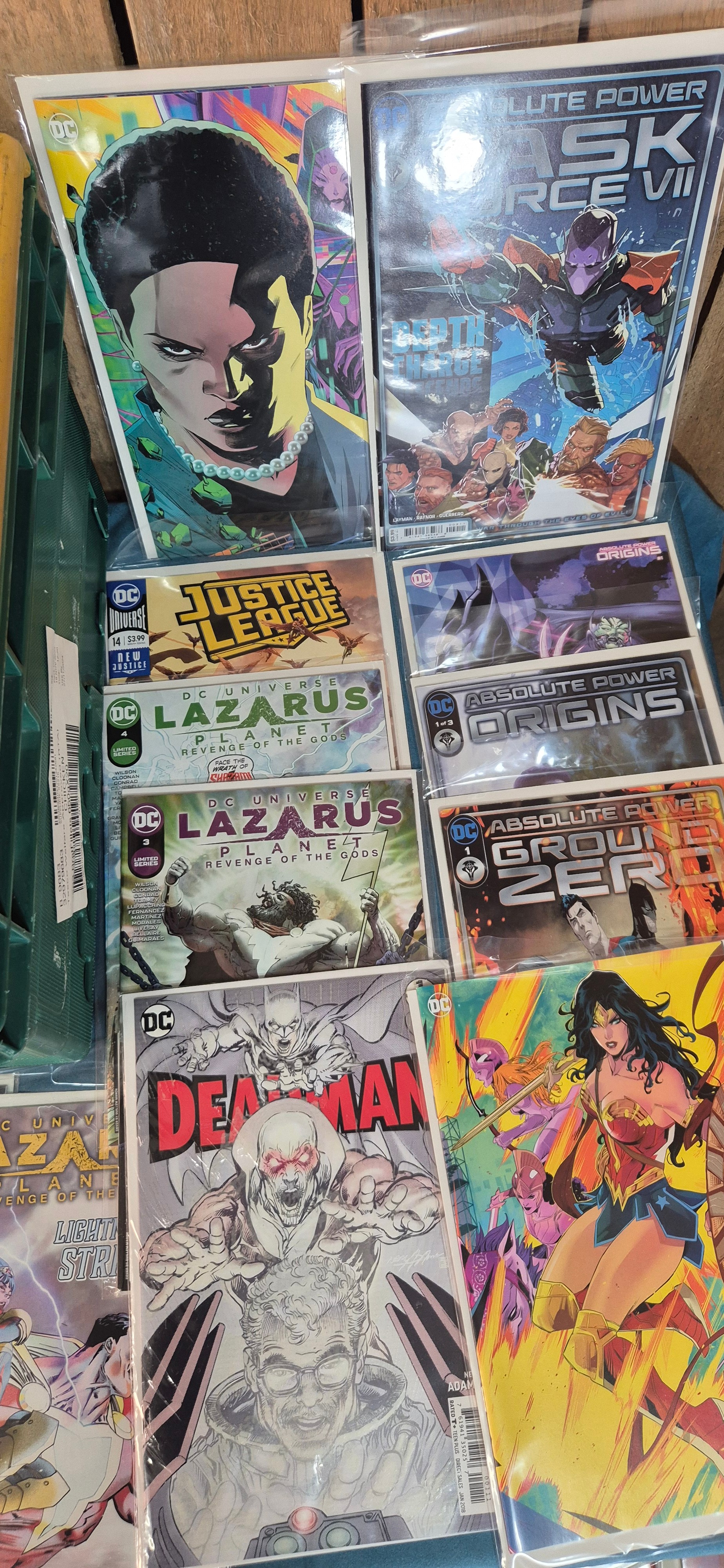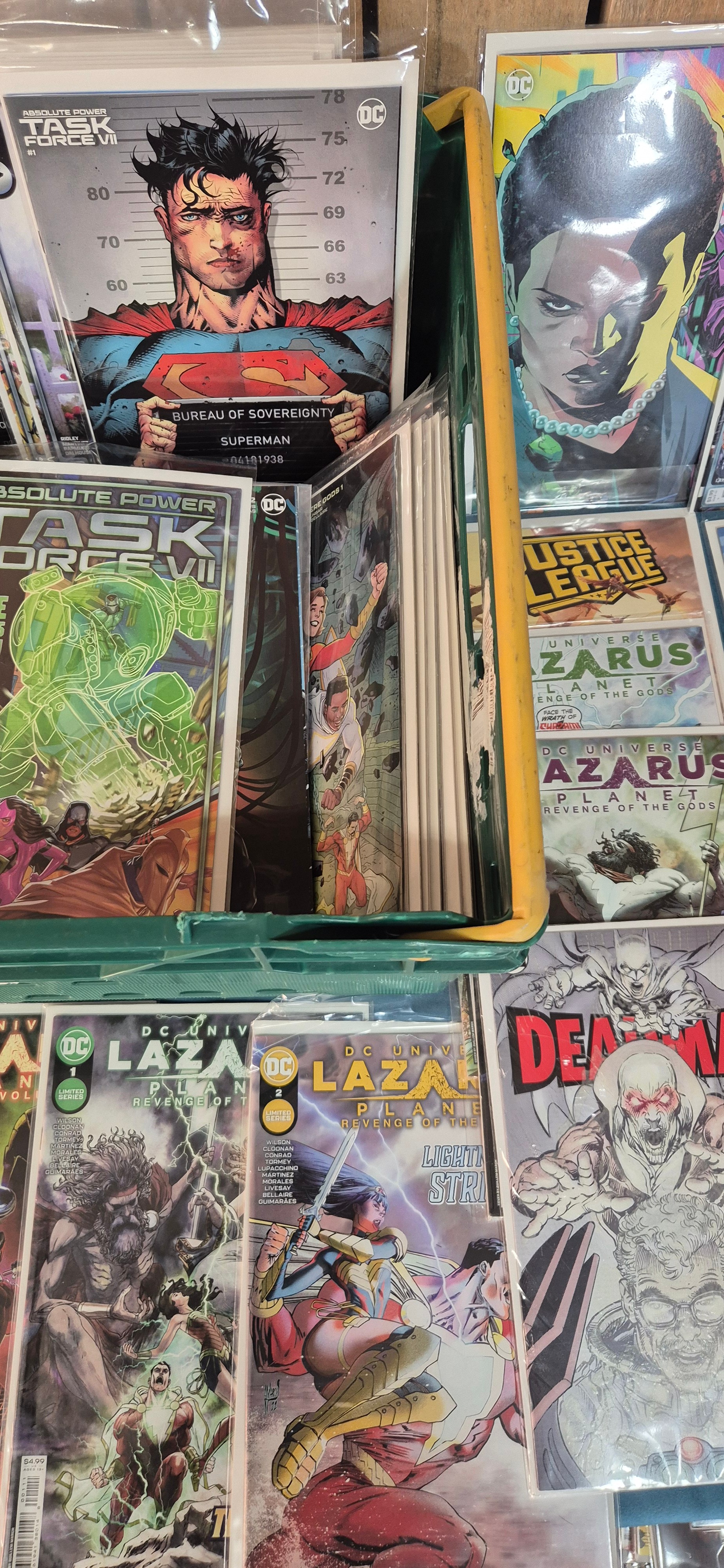Crate of Mixed Comics; Superman, Absolute Power, Deadman, Iron Fist, Justice League, Variant Editions and #1 comics along with others