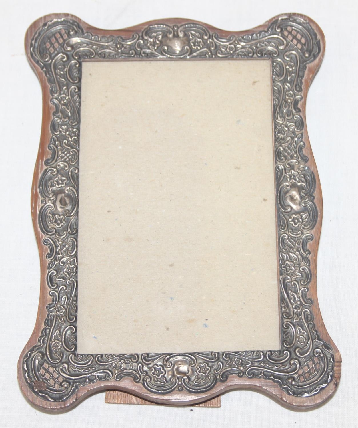 An Edwardian silver and oak picture frame, marked for Birmingham 1904 by Green & Cadbury Ltd, 19cm x 14cm