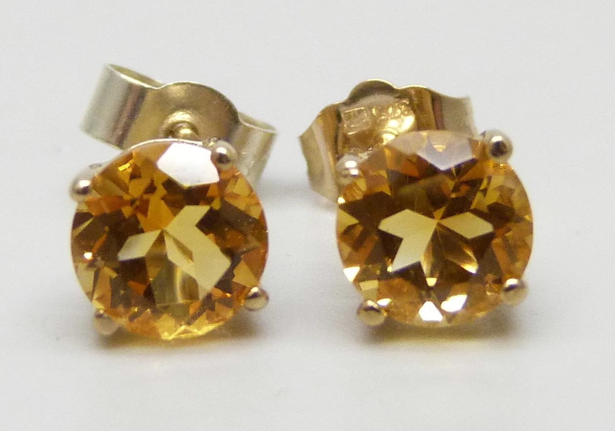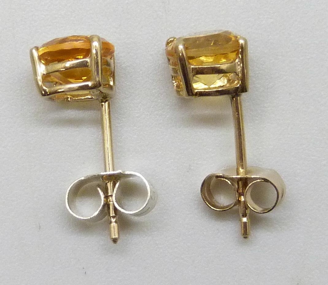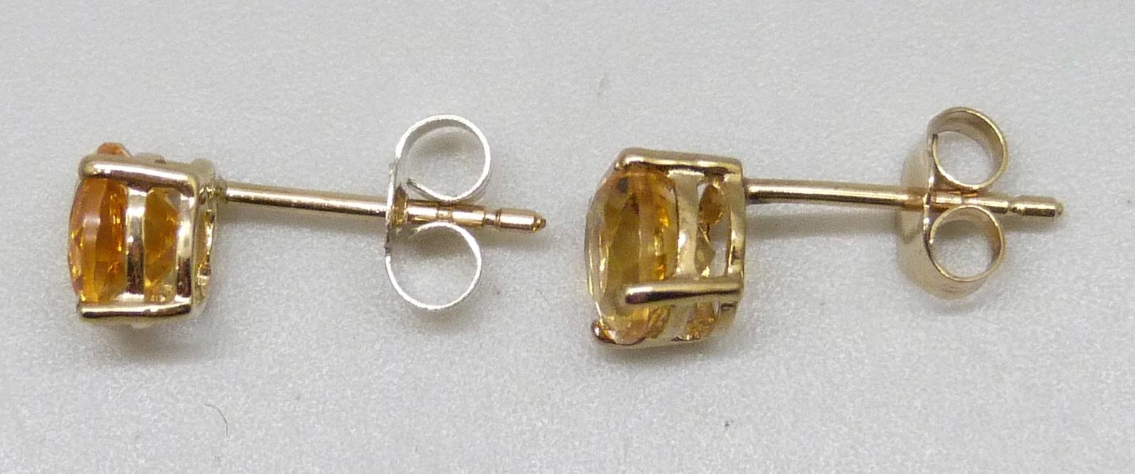 A pair of 9ct gold and citrine stud earrings, 1g, unmatched butterflies