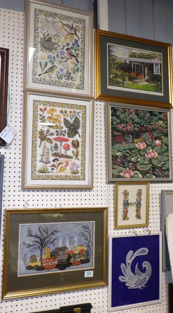 A group of seven needlework pictures (7)