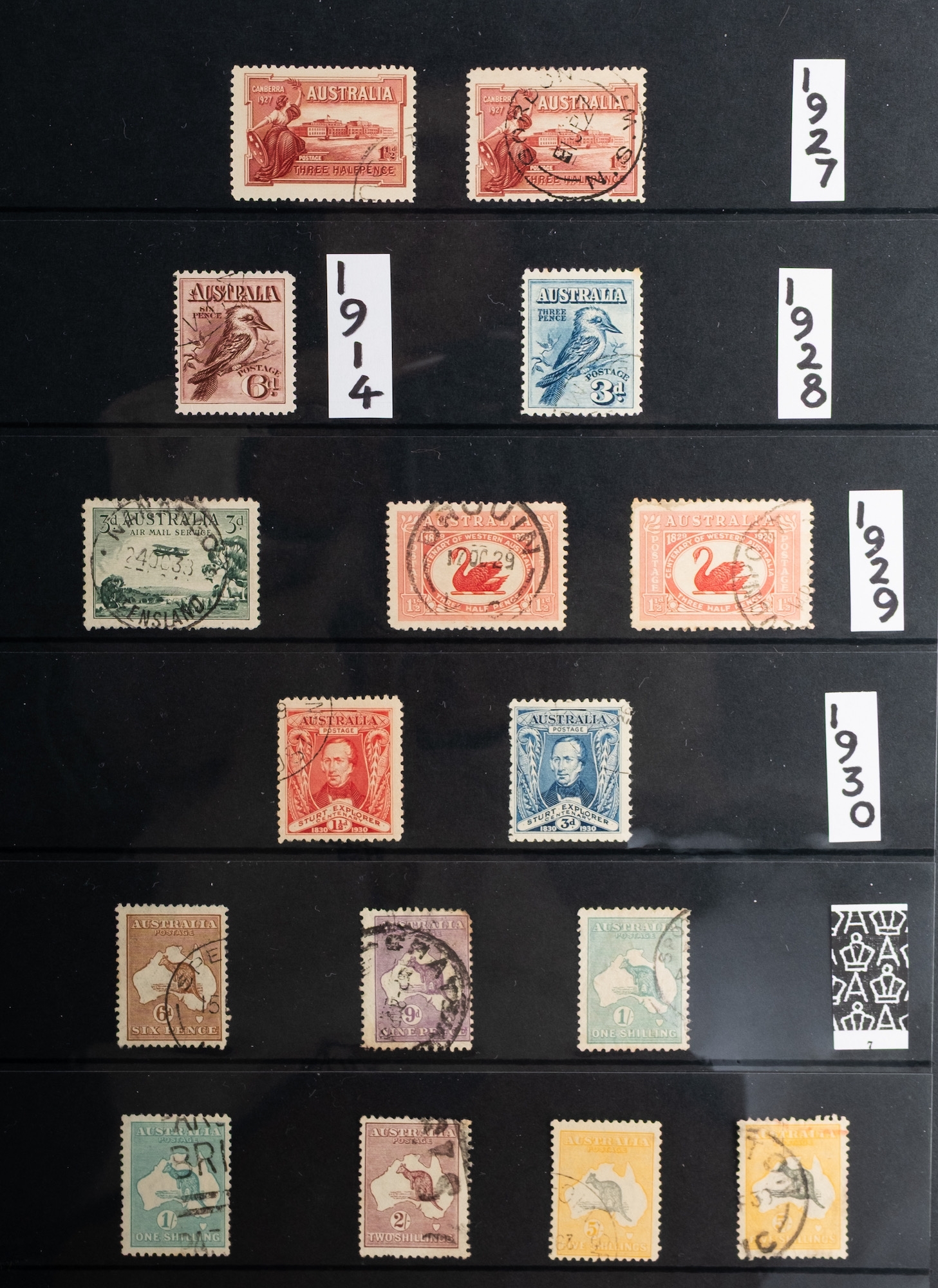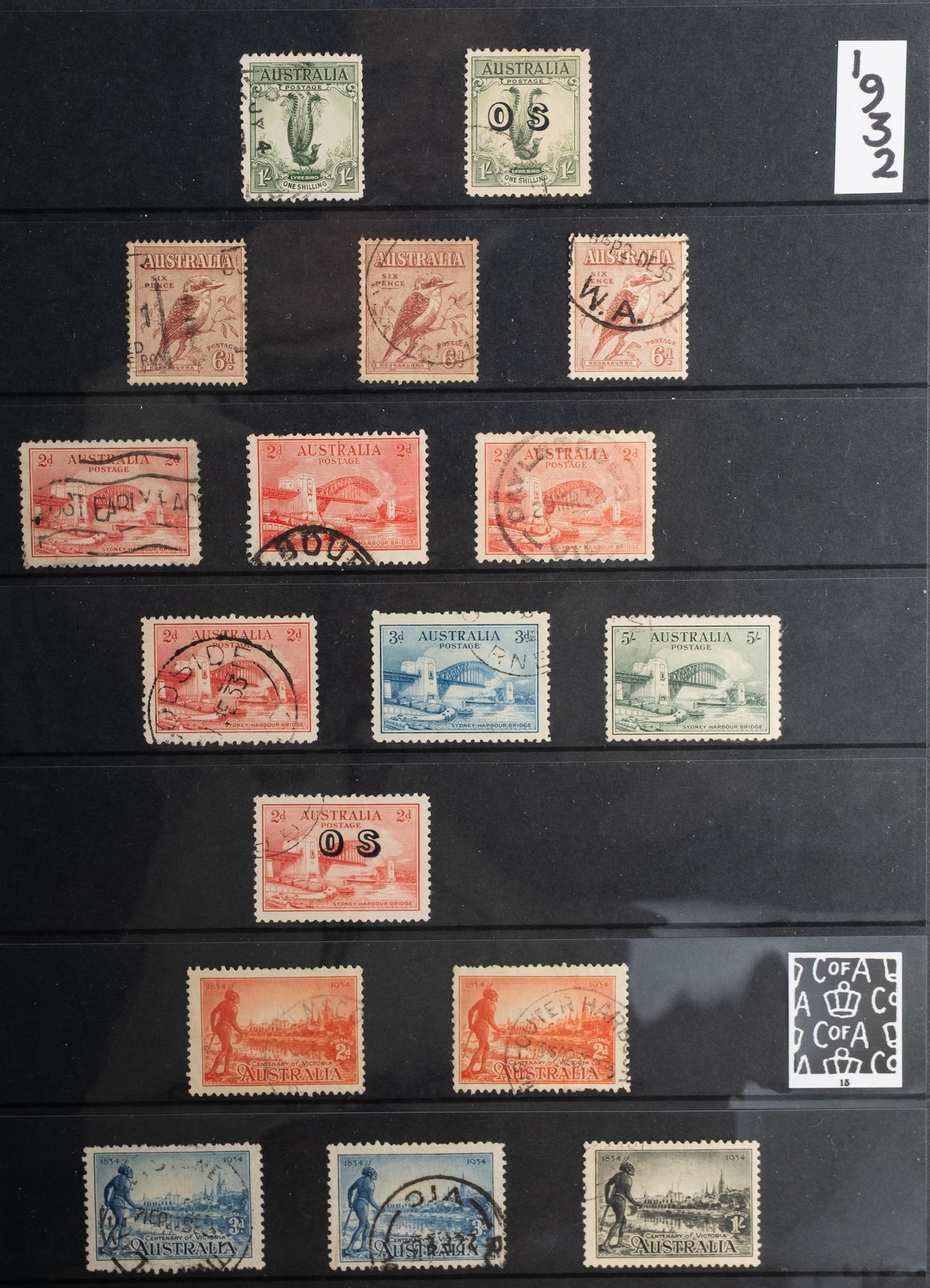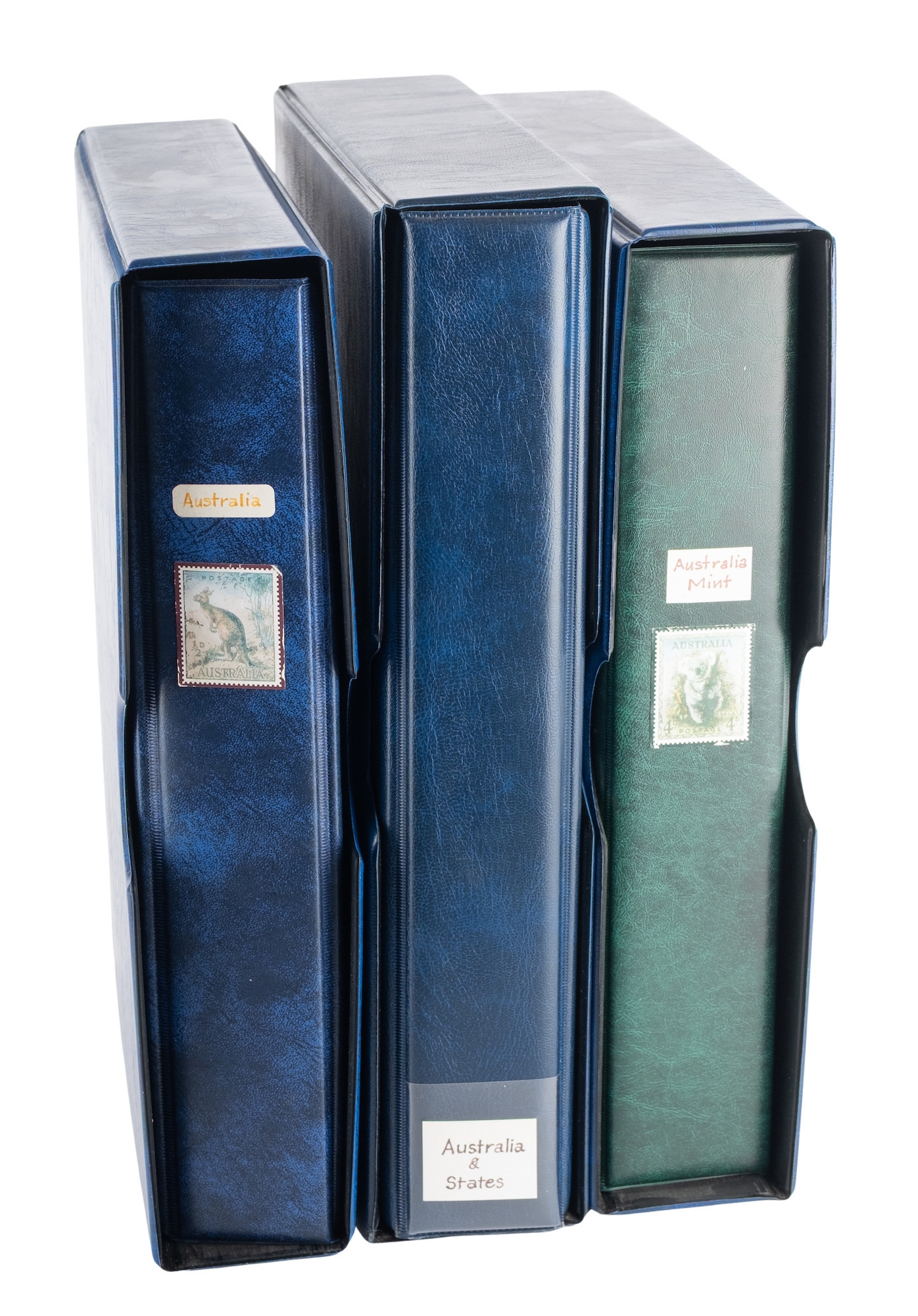 Australia. A collection of Australian stamps in three volumes, with KGV Kangaroos, later issues through to QEII 2012 mint and used, noted 1932 Sydney Harbour Bridge 5/- blue-green used.