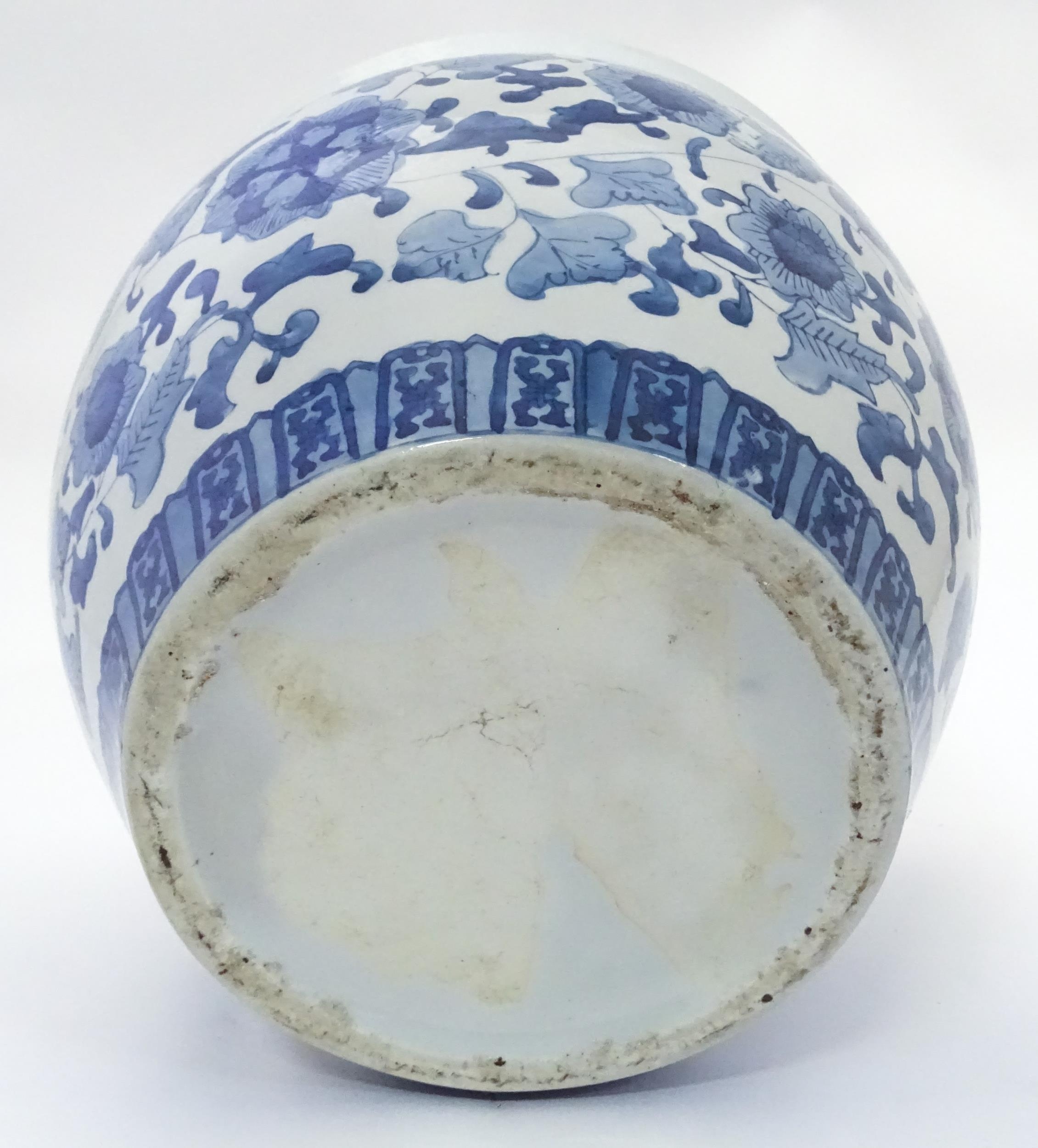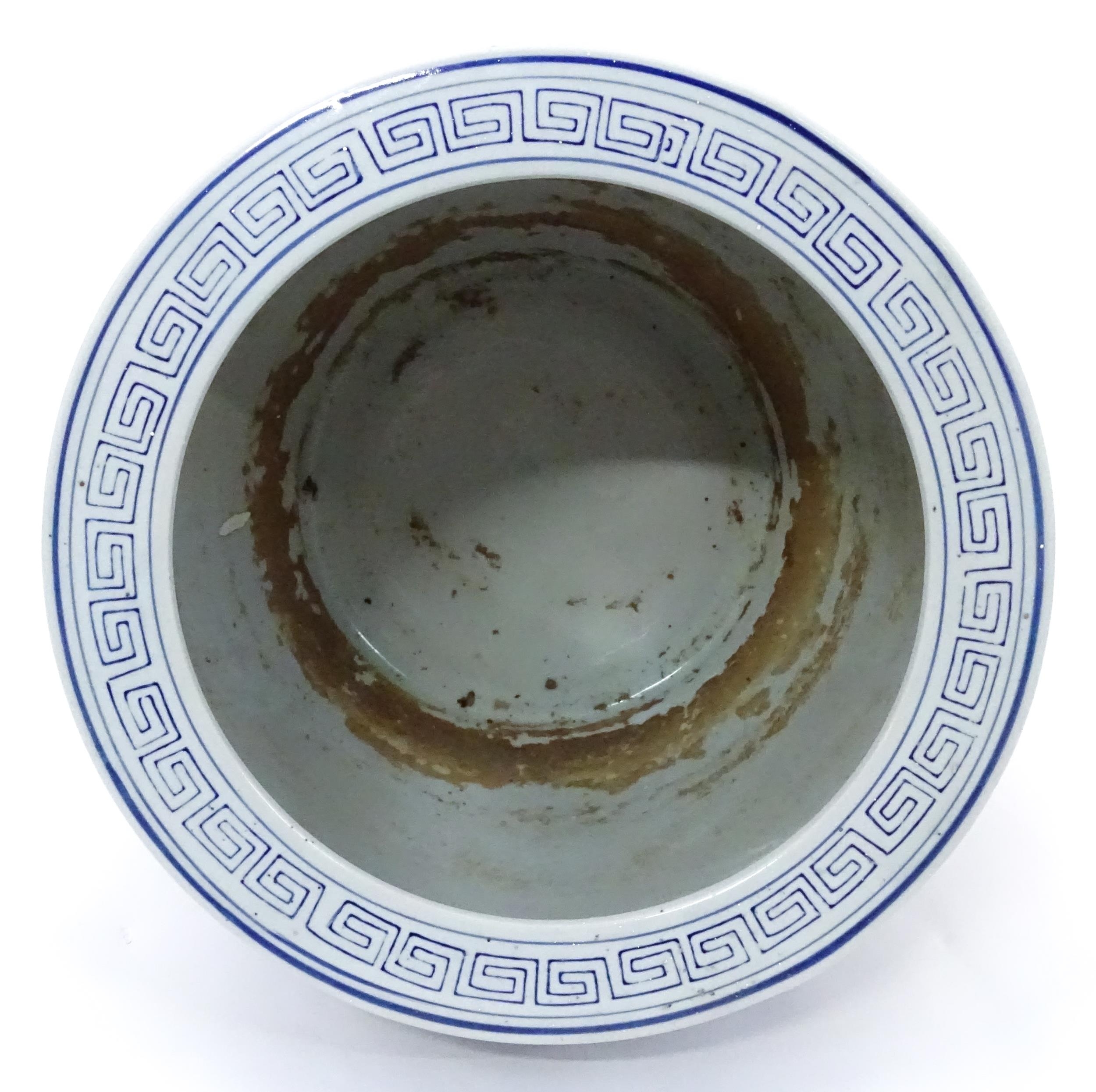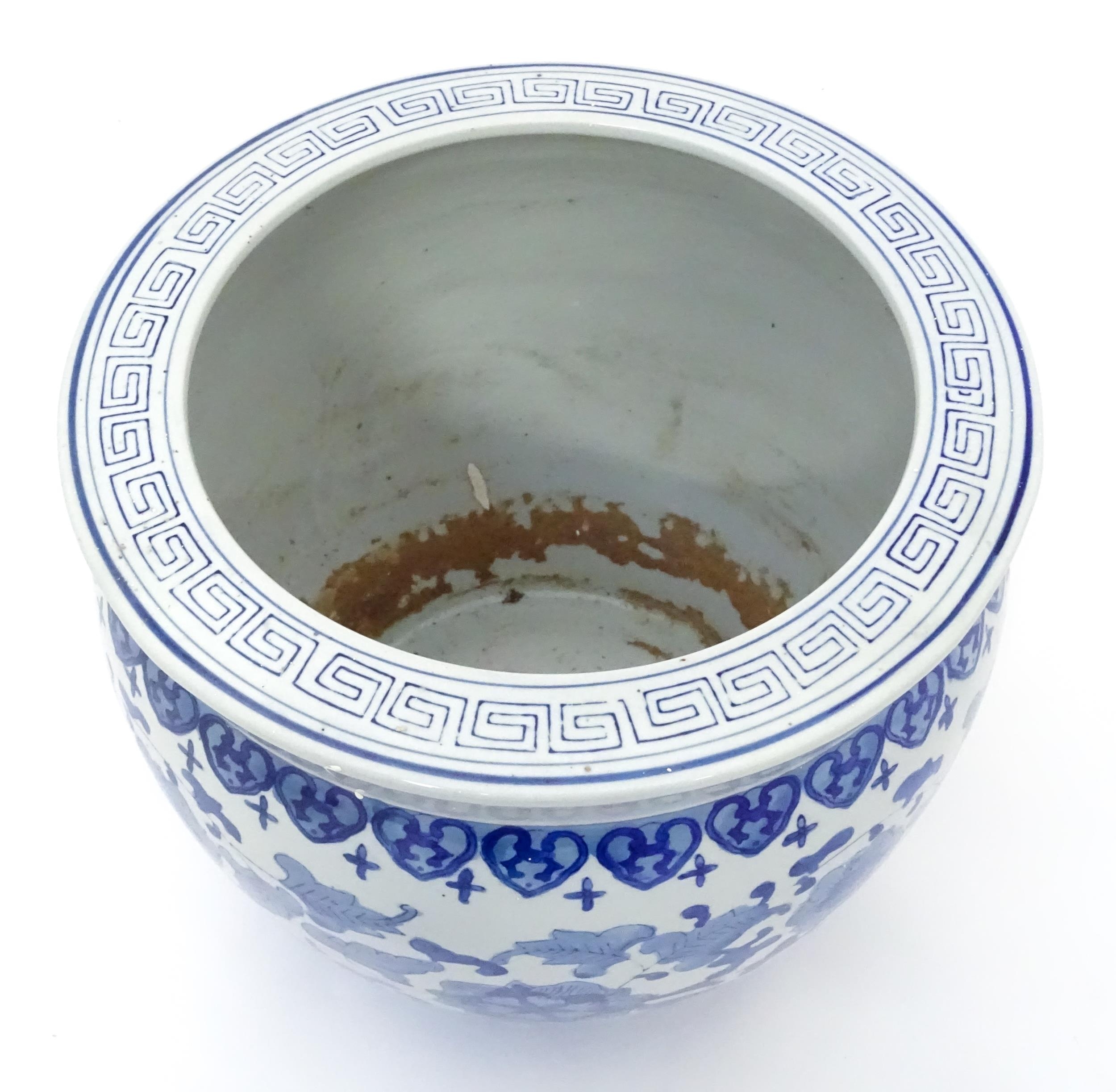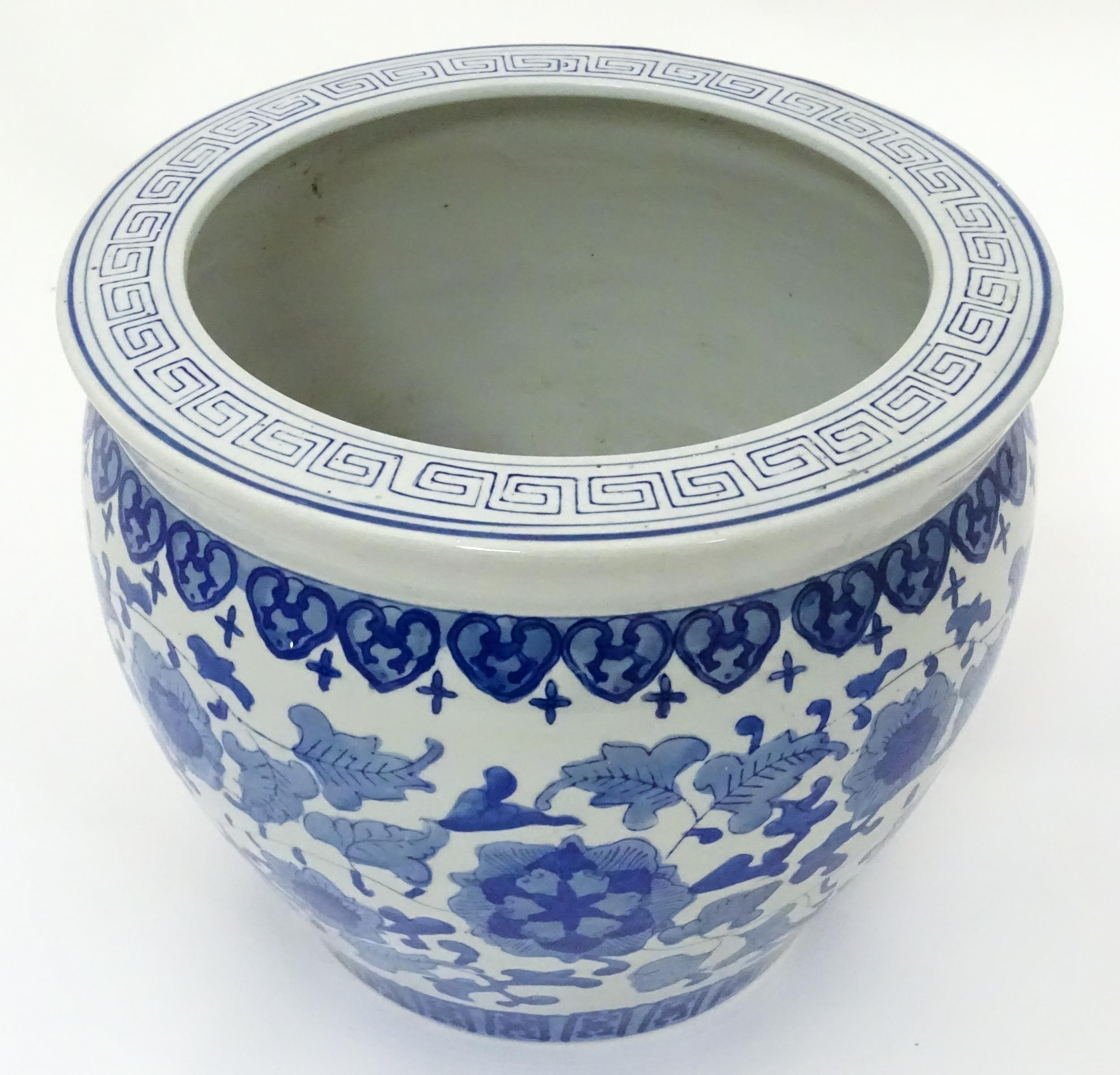 A Chinese blue and white planter decorated with flowers and foliage. Approx. 10 1/4" high