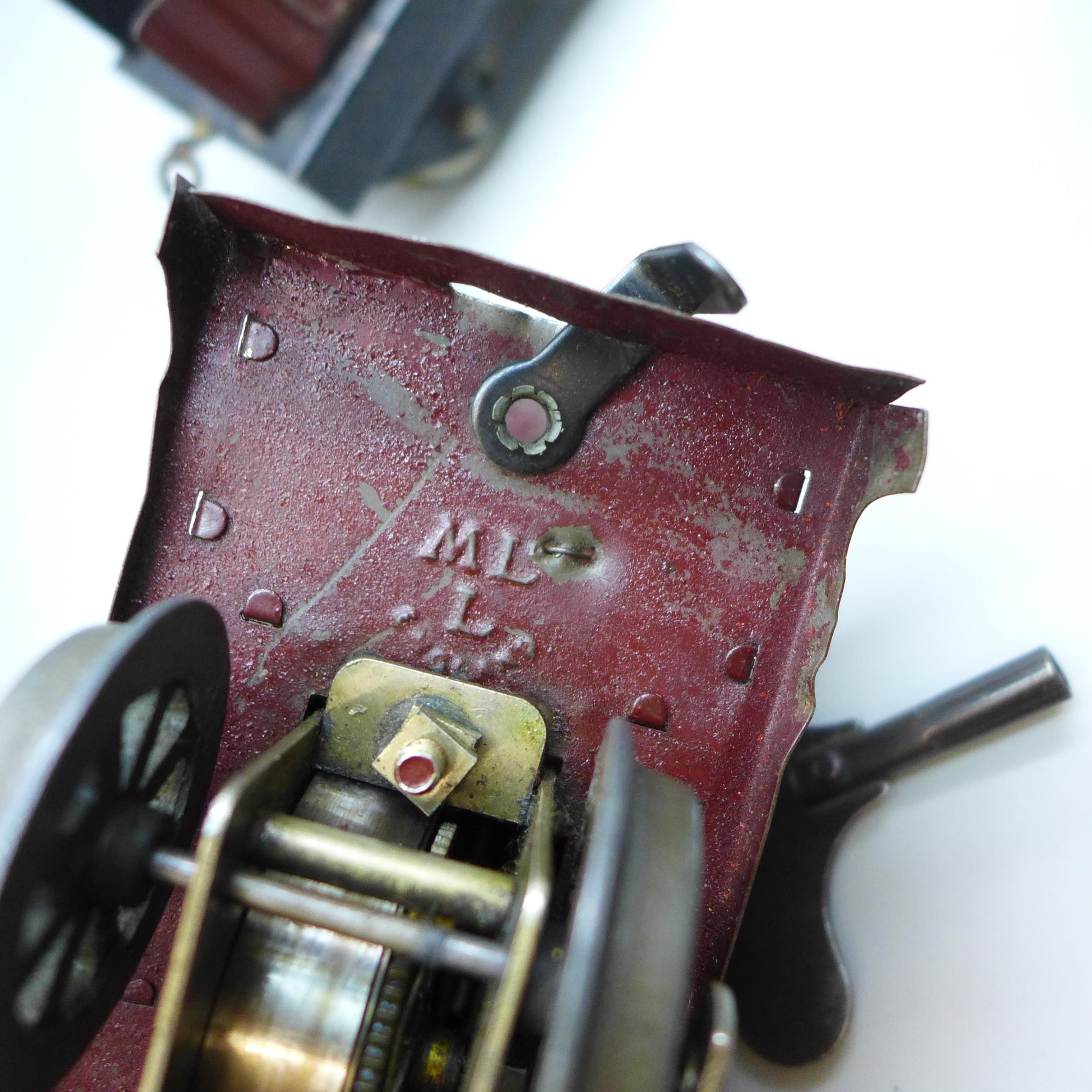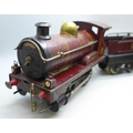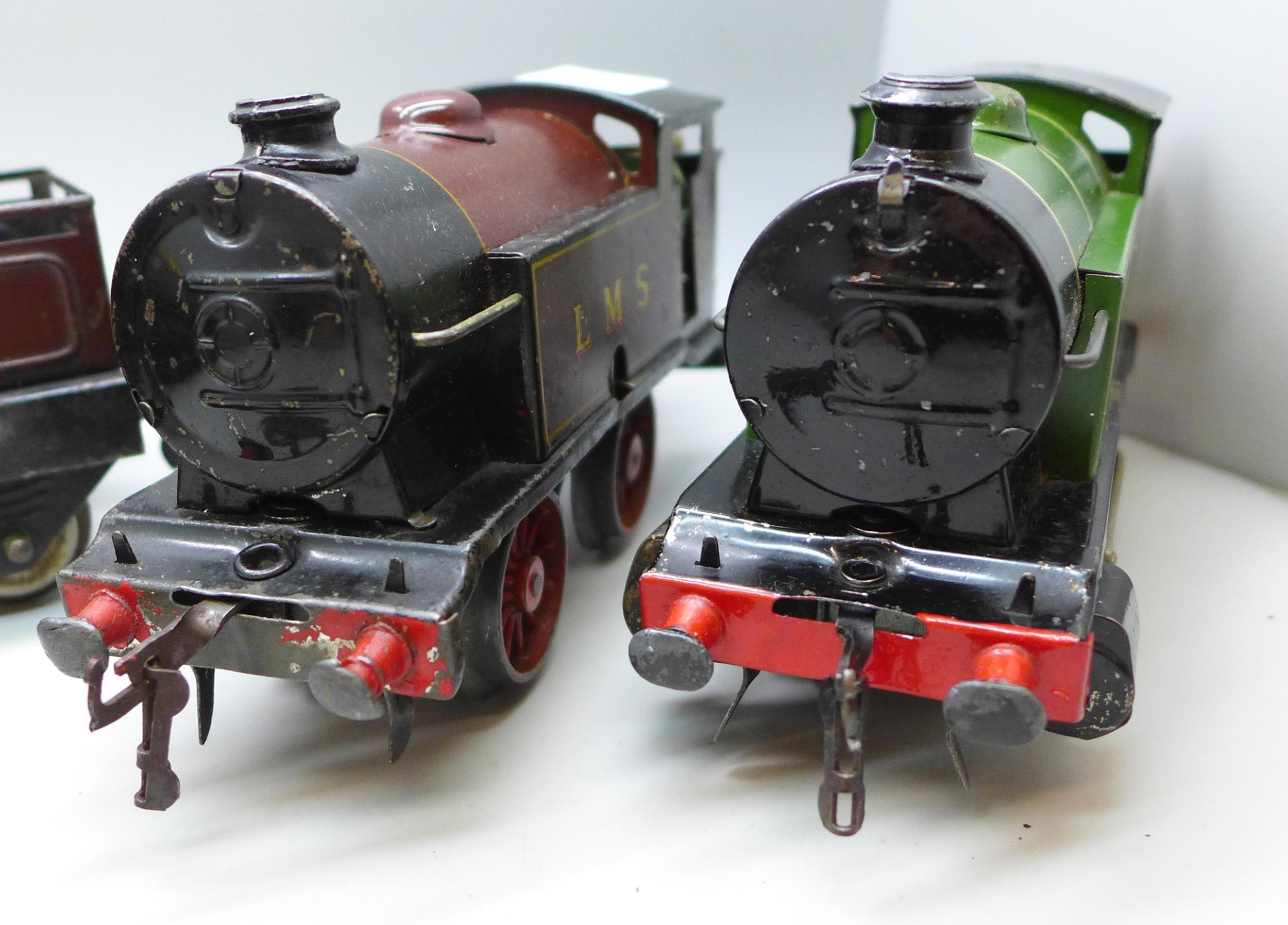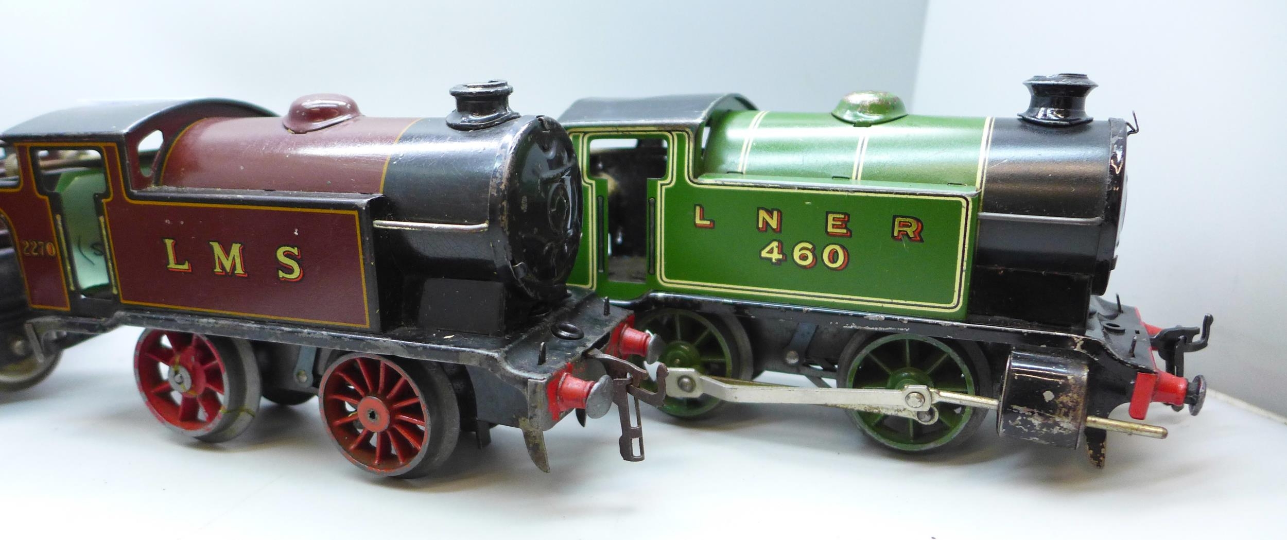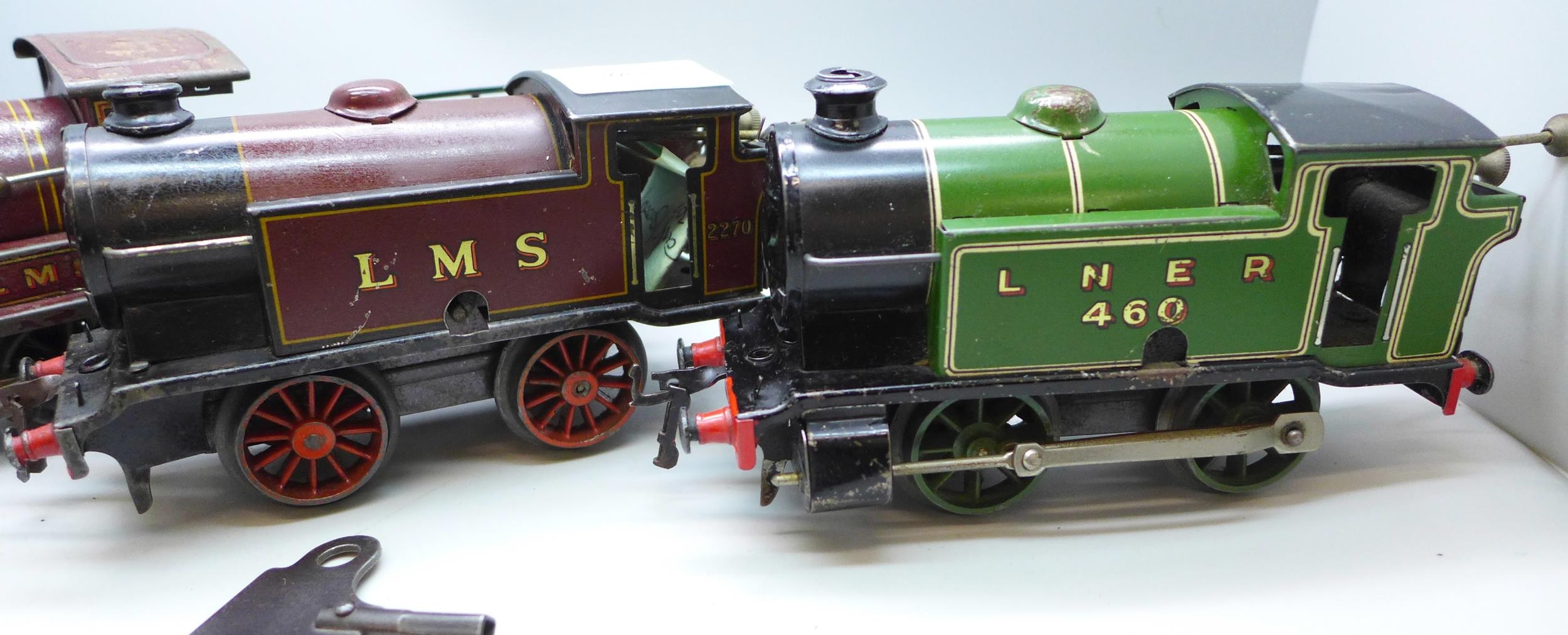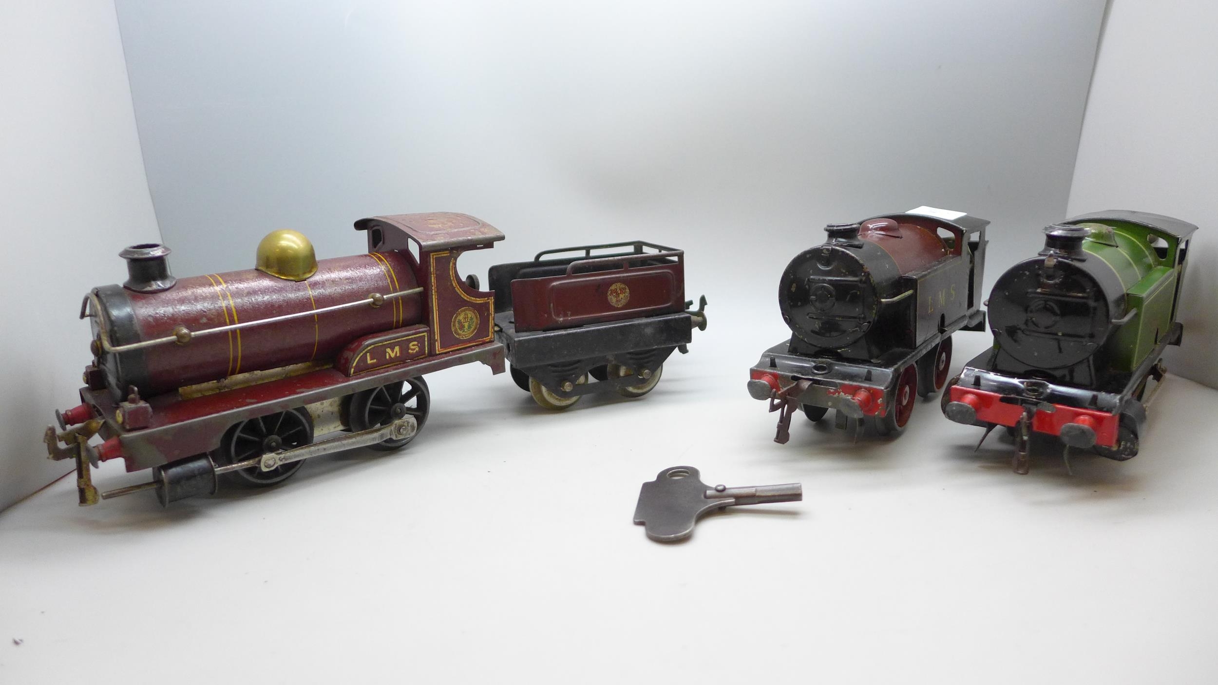Three O gauge model railway locomotives, one with tender, including type 101 in green