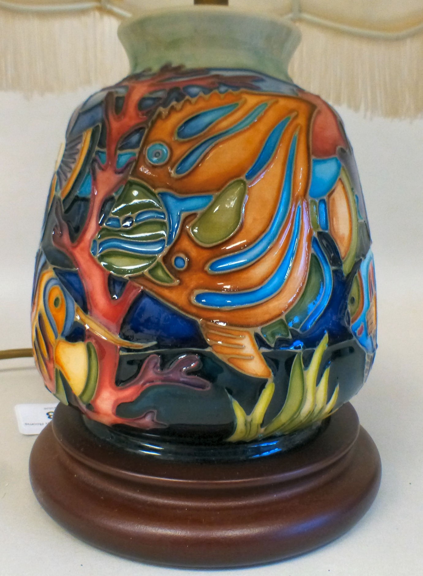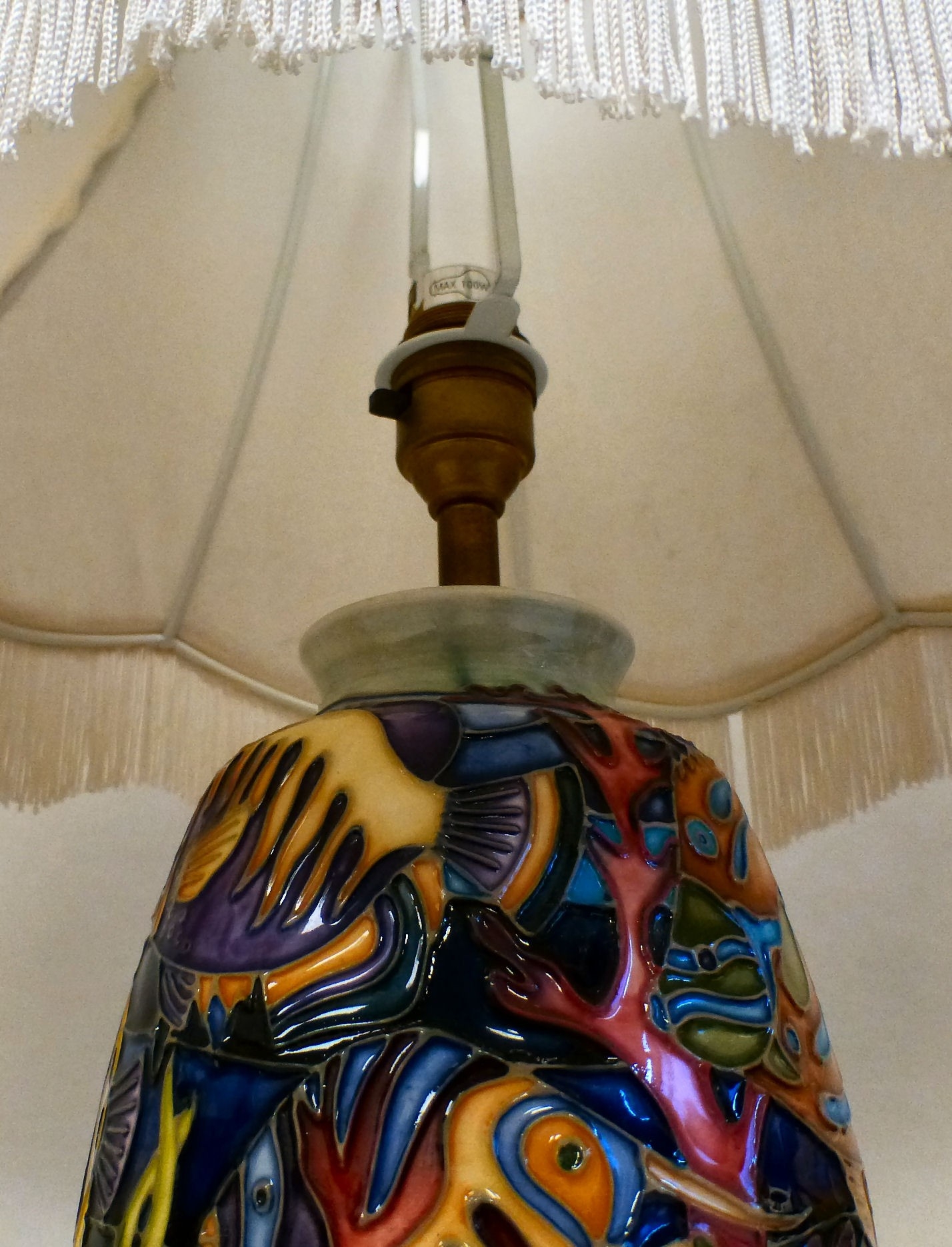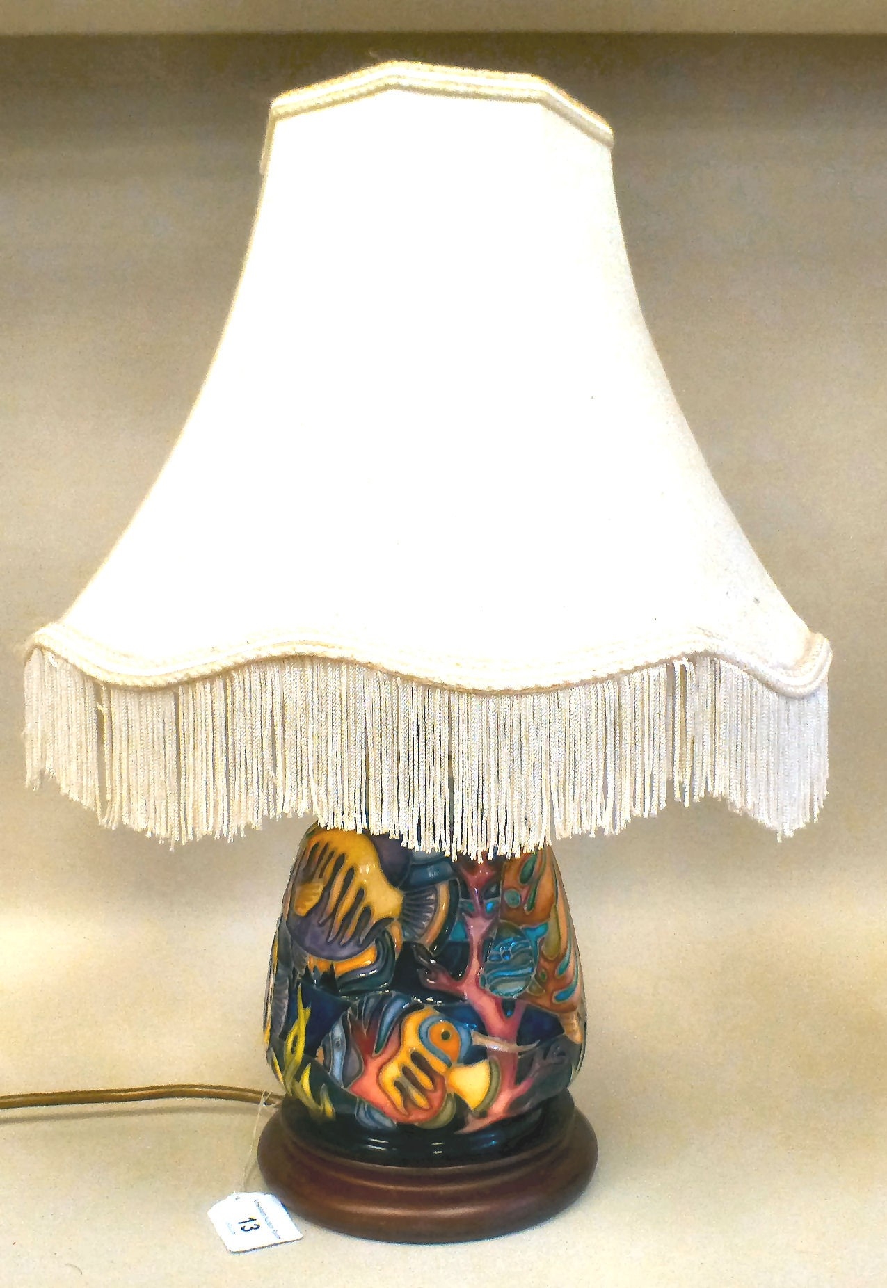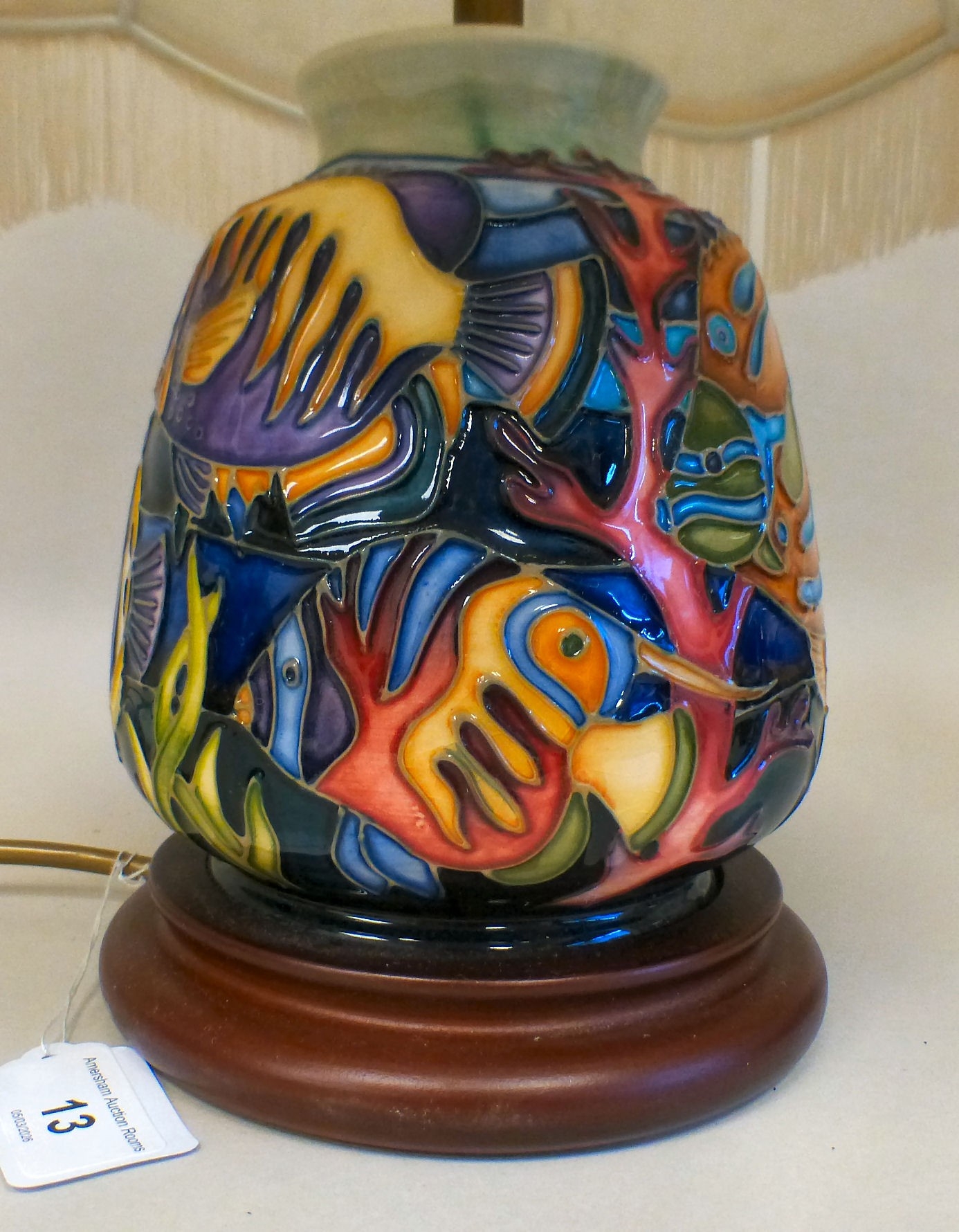A Moorcroft pottery Martinique pattern table lamp marks not visible 10"h