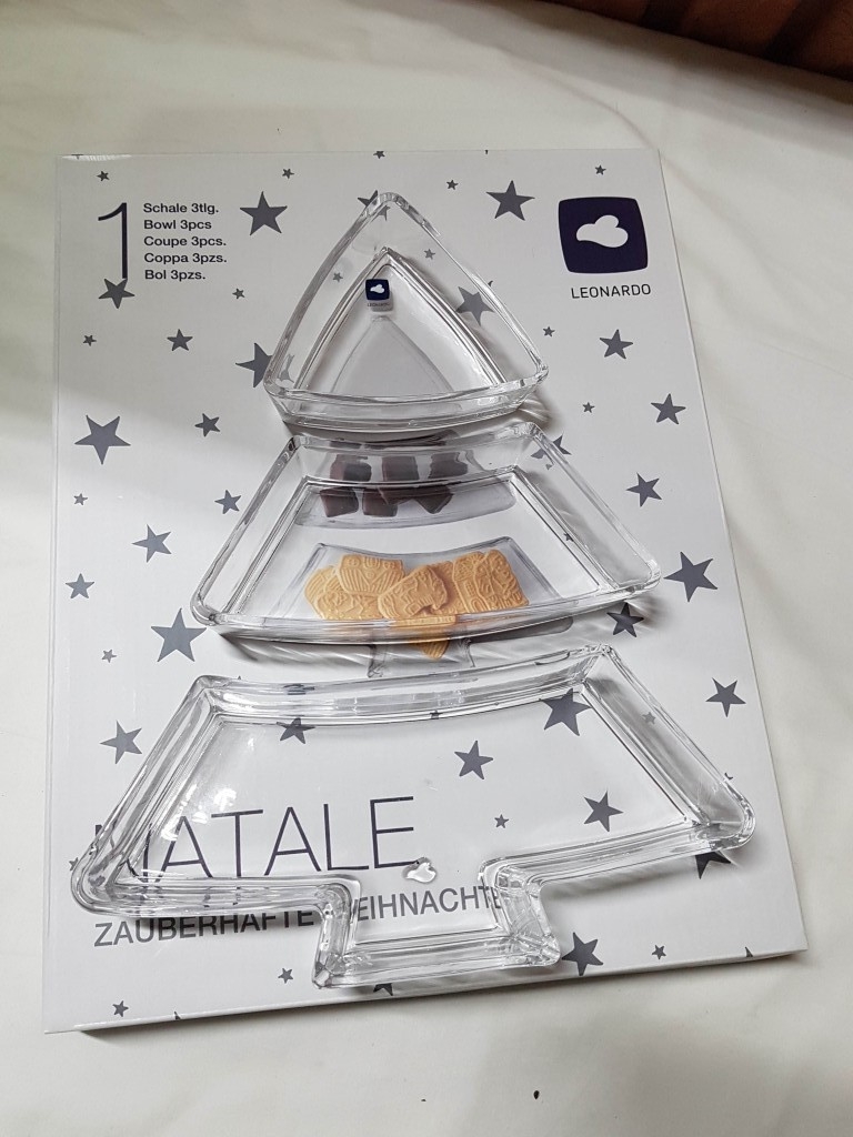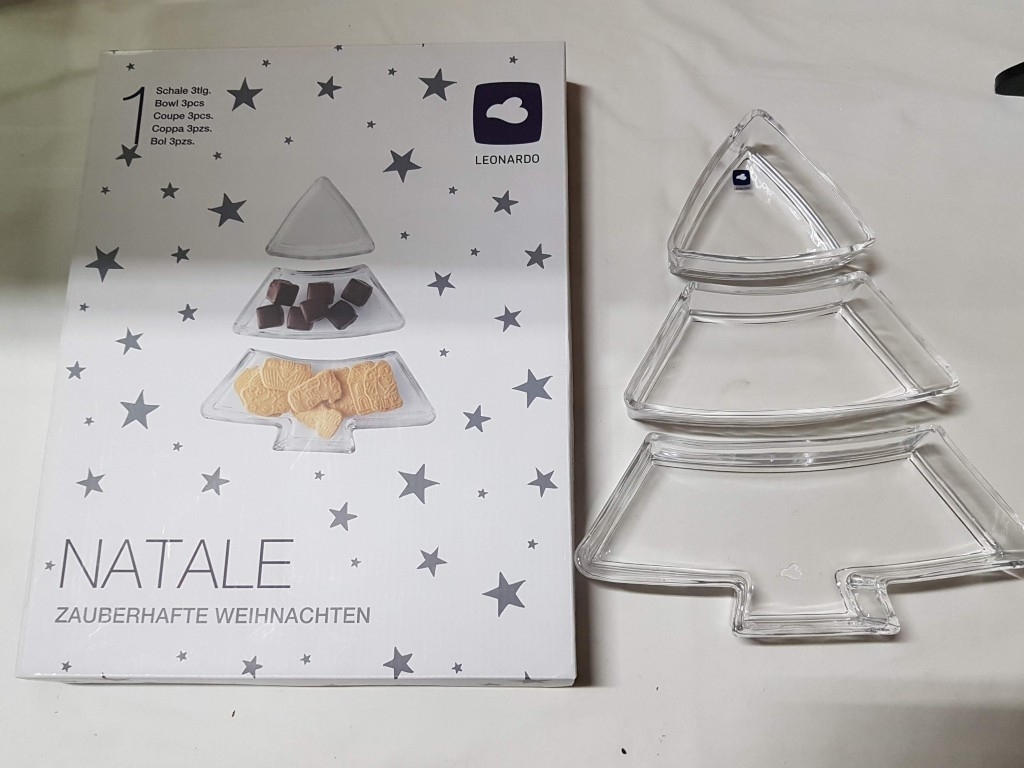 Clear Glass Christmas Tree- Shaped Serving Dish (3Pcs), Original Box (Approx. H: 27cm).