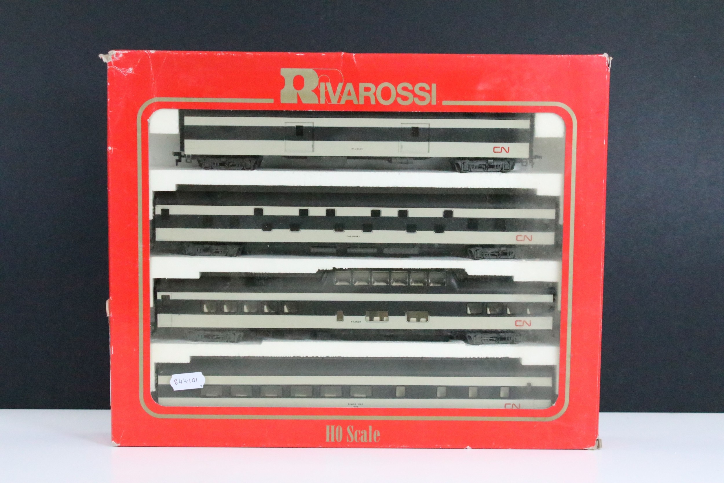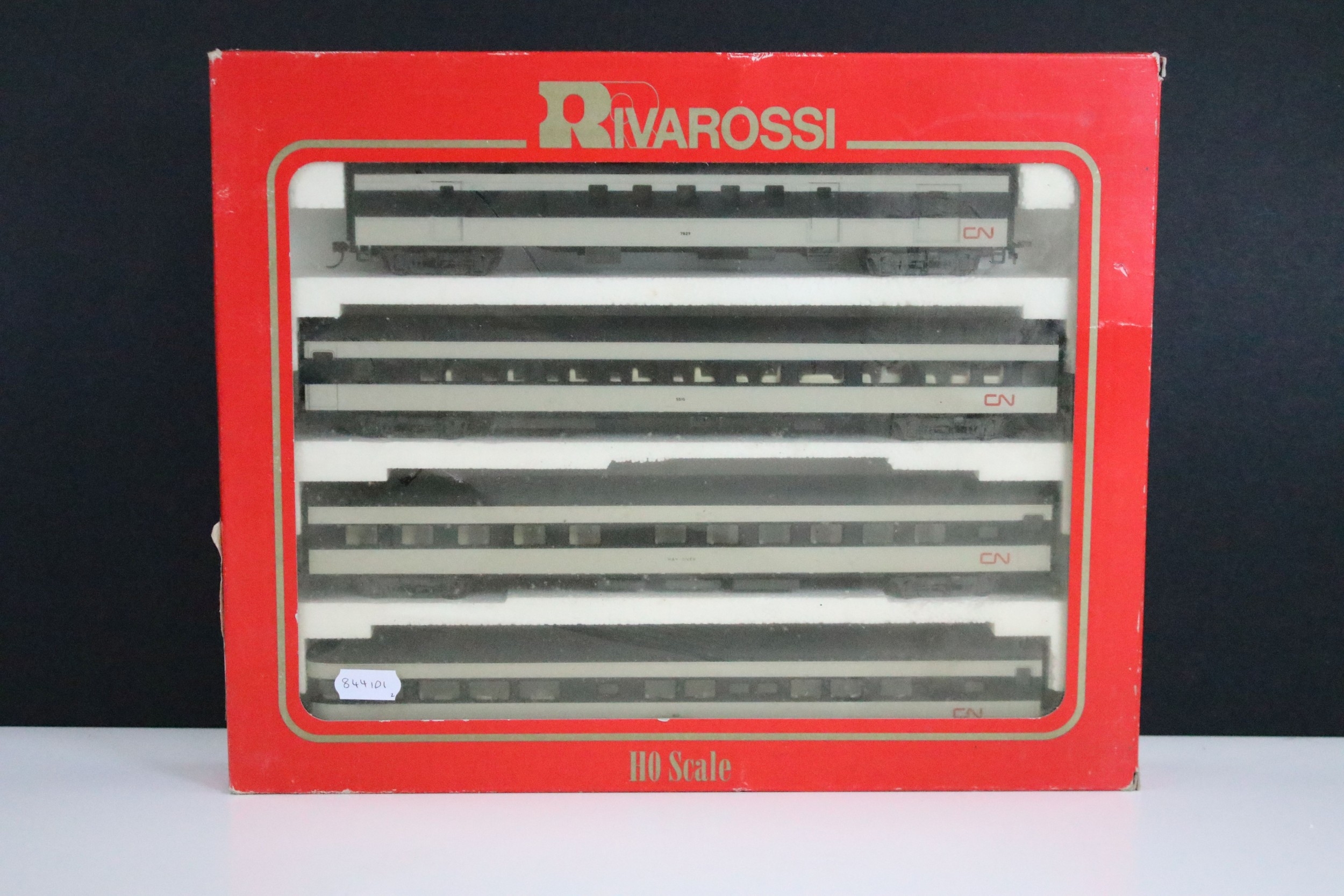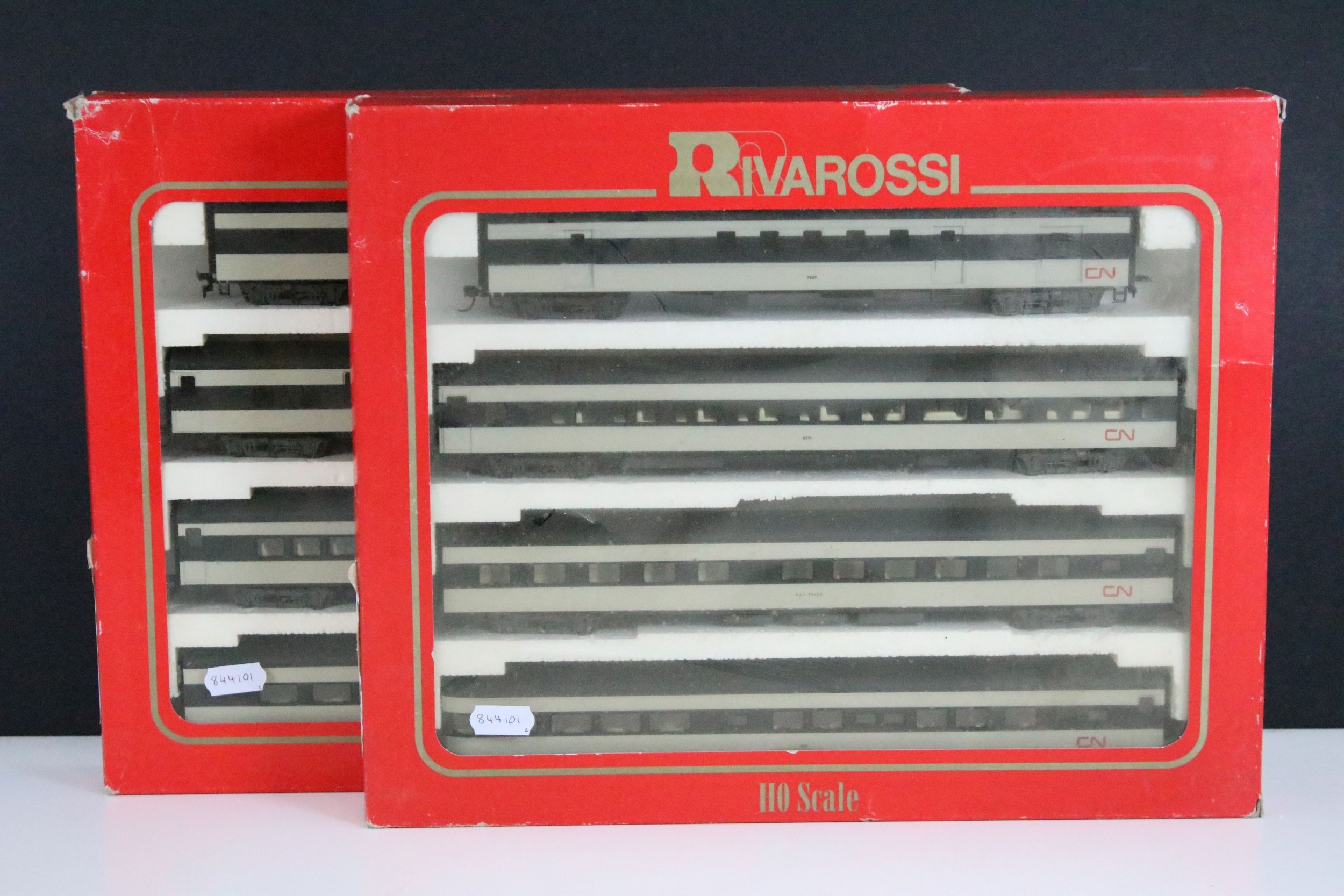 Two boxed Rivarossi HO gauge 1930's Canadian National stock sets to include 6935 B Set RPO Rommette-Duplex Sleeper Trail Car and 6934 A Set Baggage Coach Diner Vesta Dome, both complete