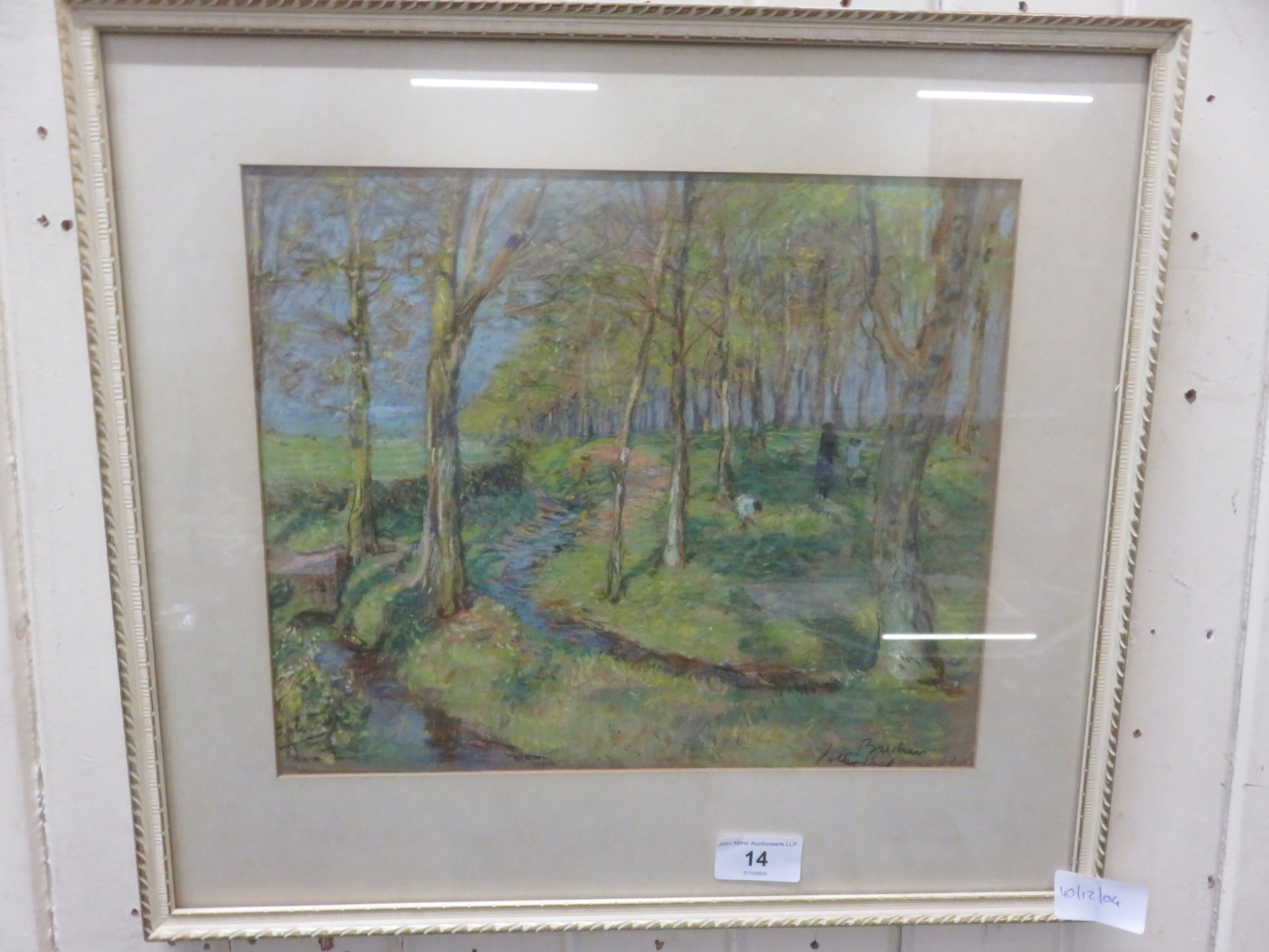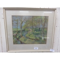Framed Pastel of Children Playing in the Woods - signed