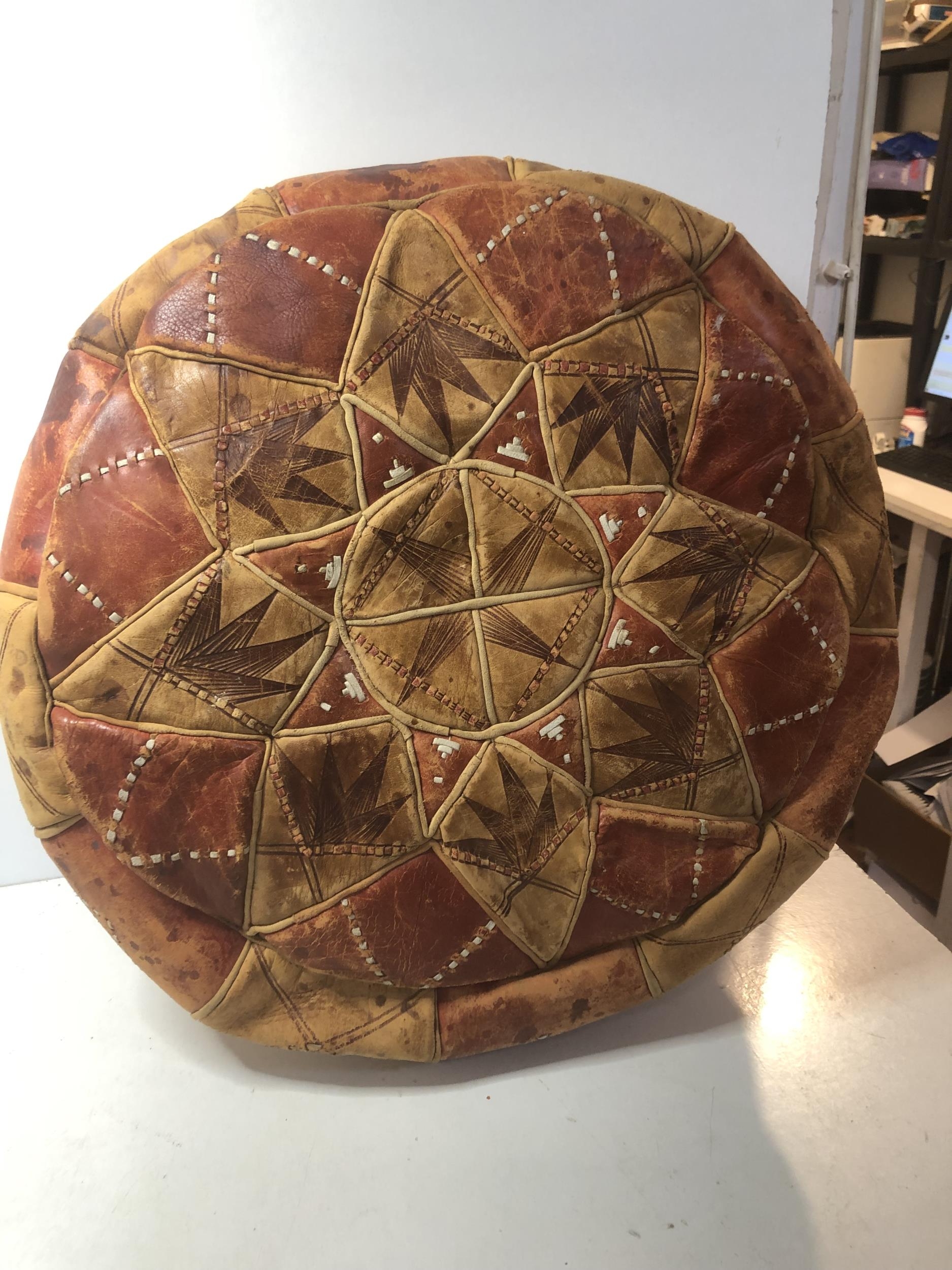 Vintage leather pouf